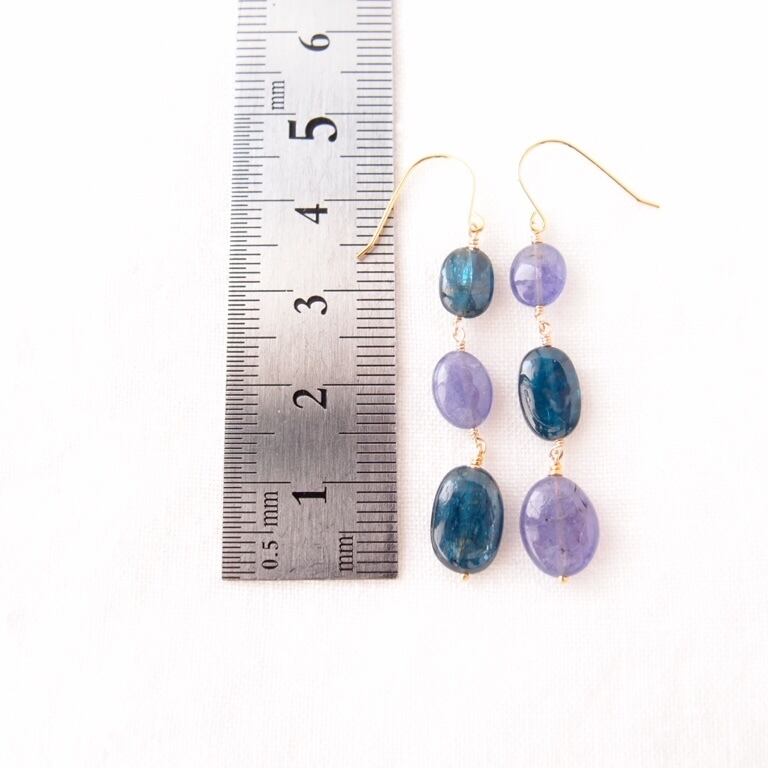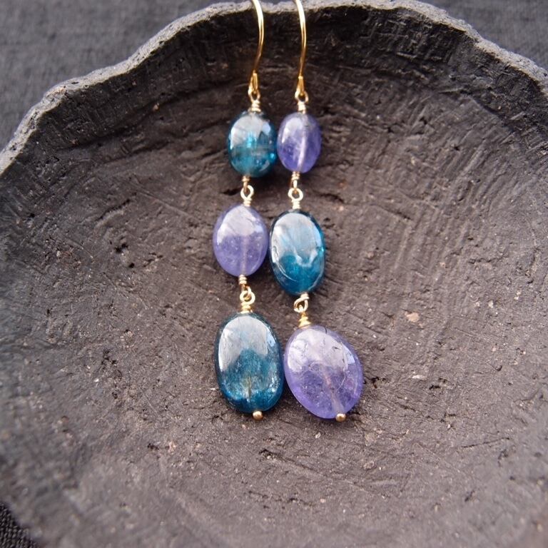 上質カイヤナイトとタンザナイトの非対称ピアス。