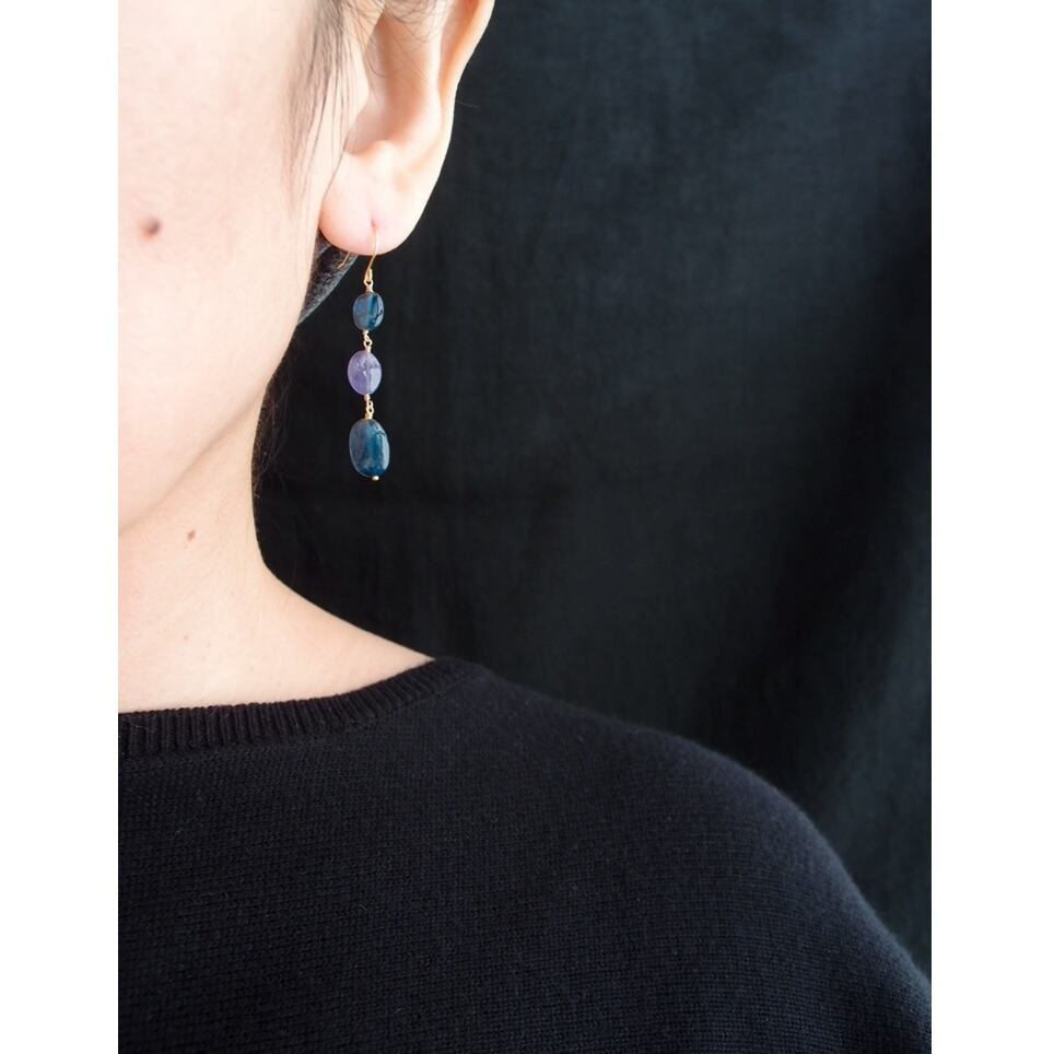 【K14gf】Kyanite × Tanzanite Asymmetry Earrings/カイヤナイト×タンザナイト 非対称ピアス(Oval)