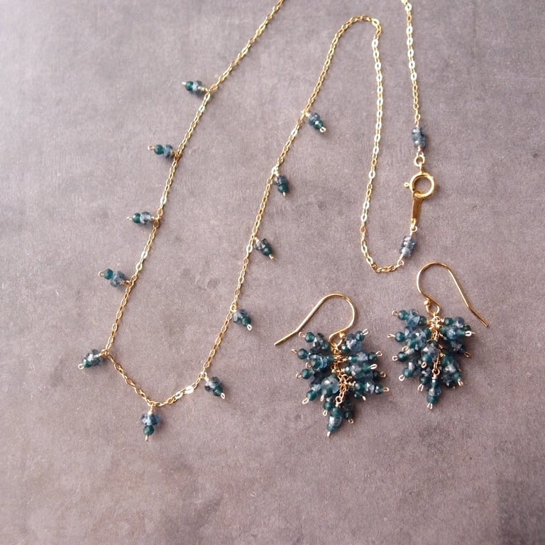 【K14gf】Kyanite × Blue Green Jade Earrings/フリンジピアス