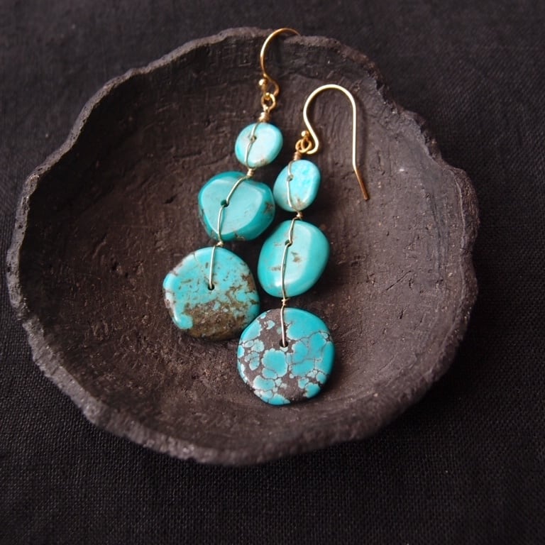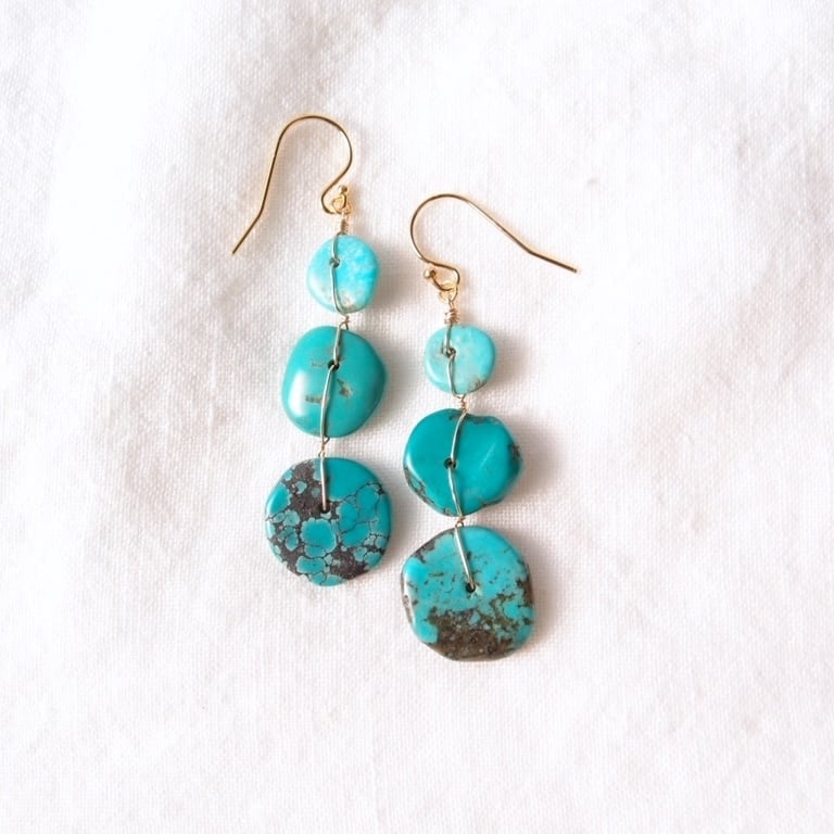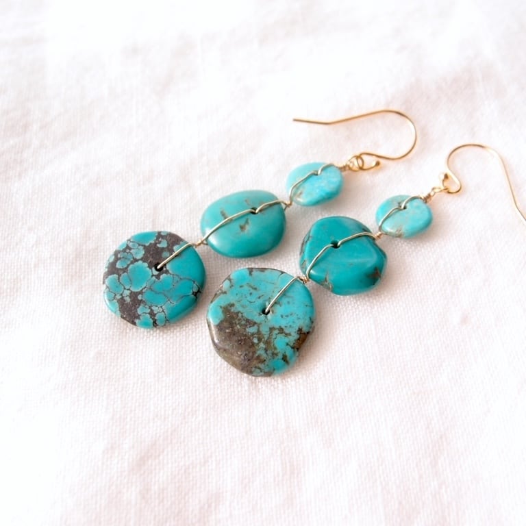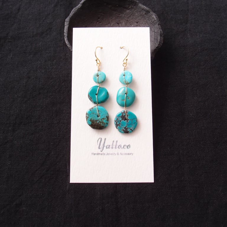【K14gf】Turquoise × Wire Earrings/ターコイズ×ワイヤー フックピアス
