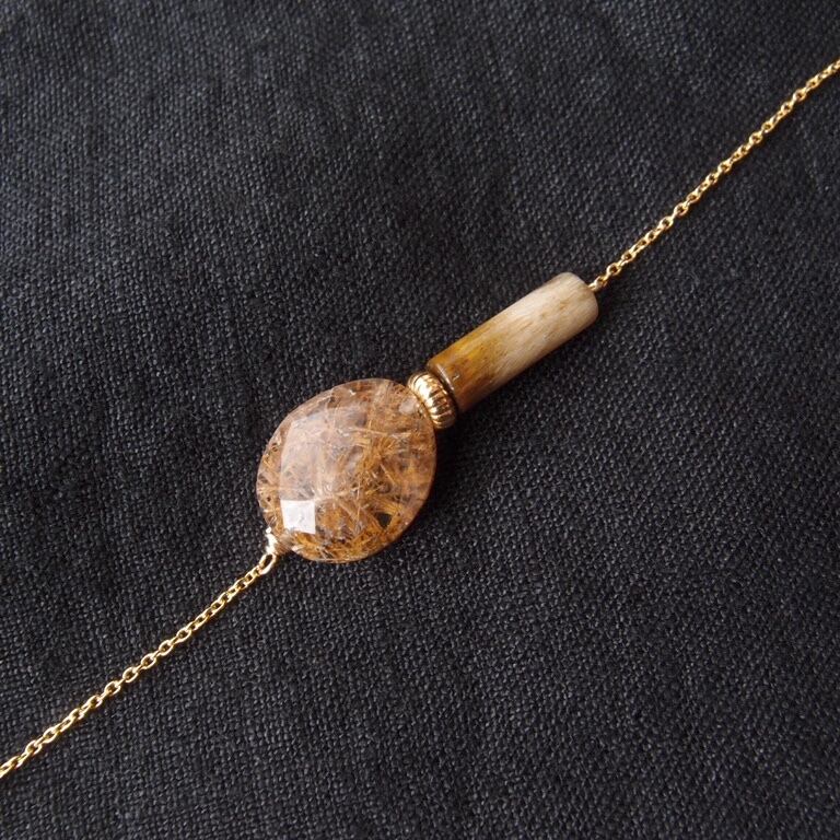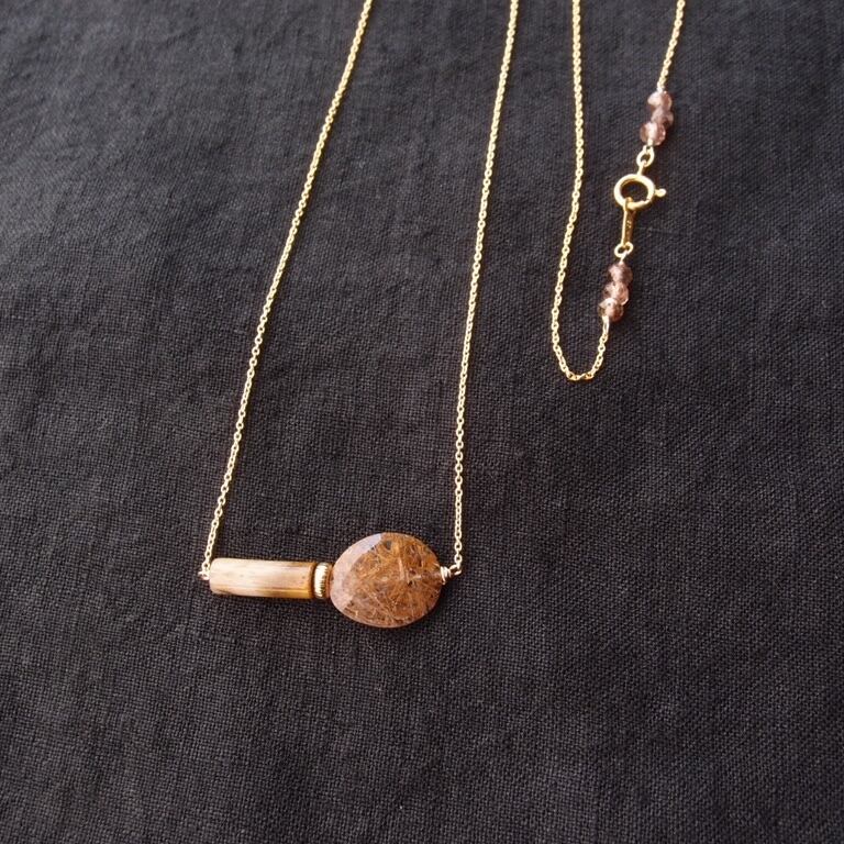 【K14gf】Copper Rutilated Quartz Necklace/コッパールチル×タイガーアイ ネックレス