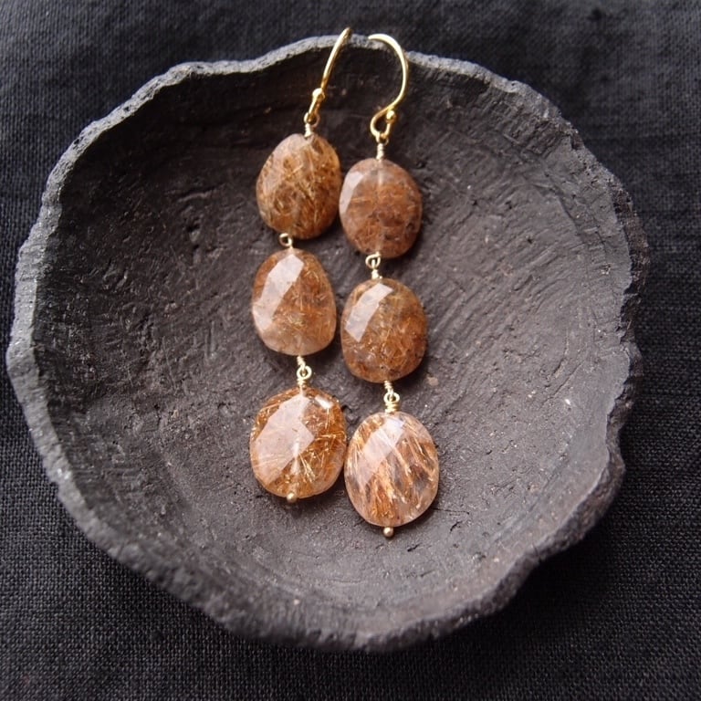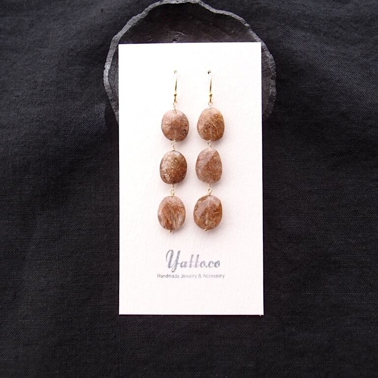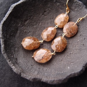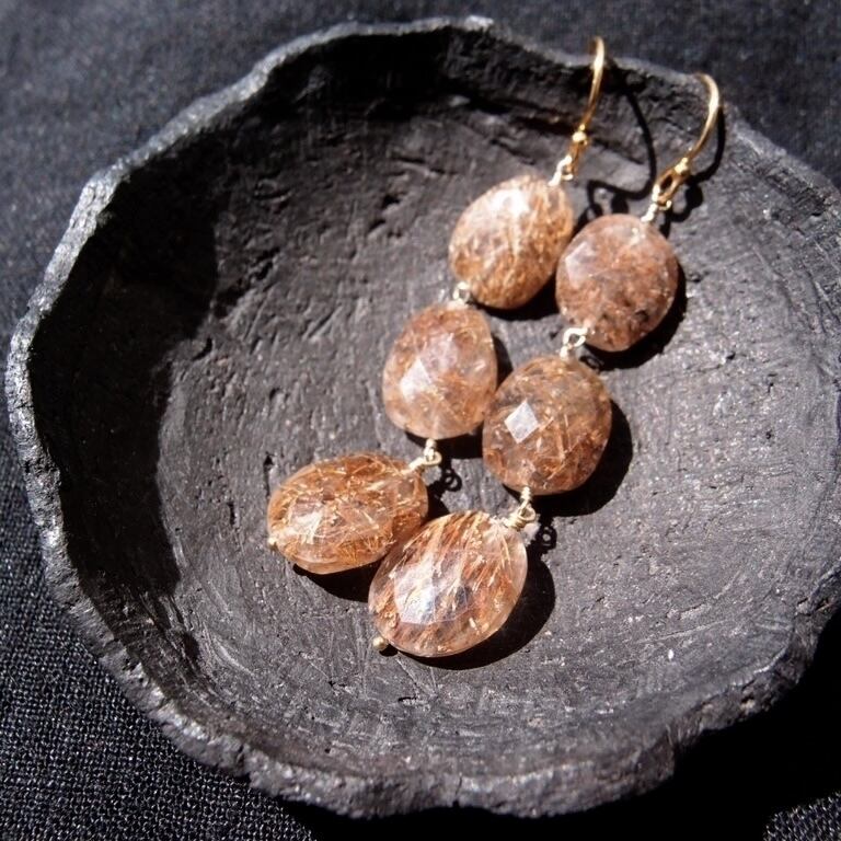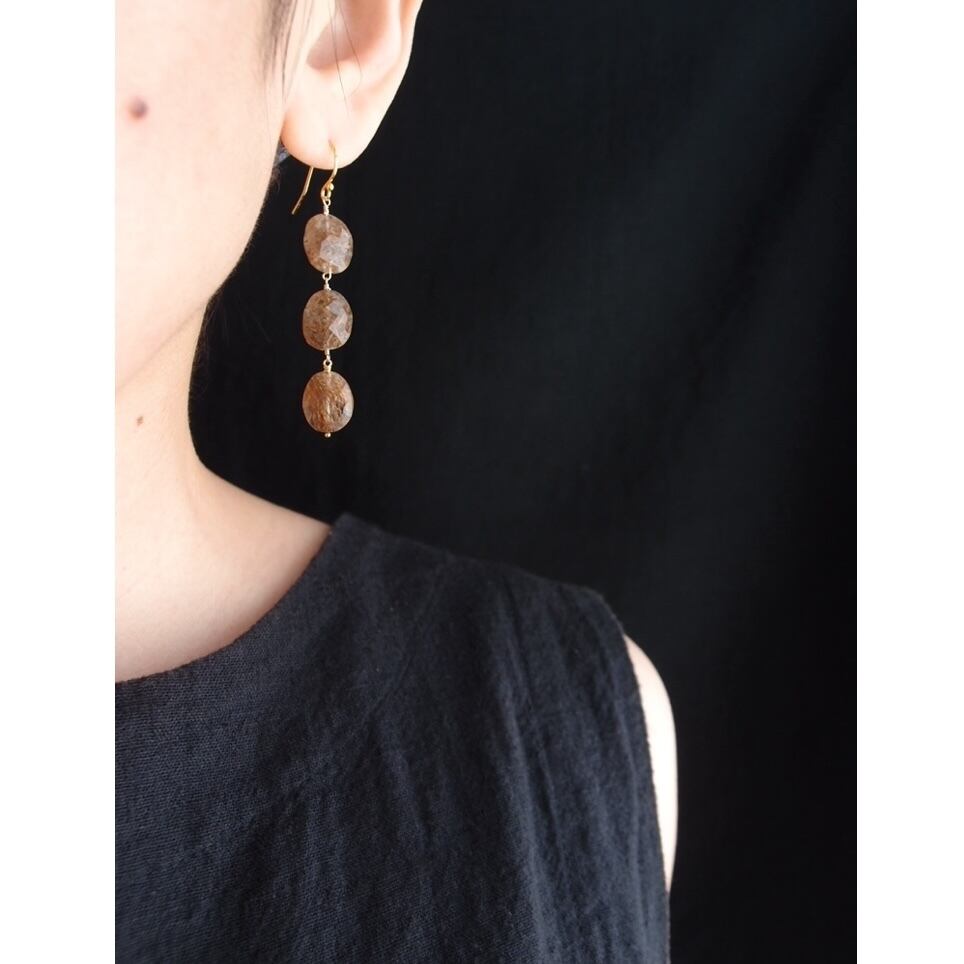 【K14gf】Copper Rutilated Quartz Earrings/コッパールチル ロングピアス