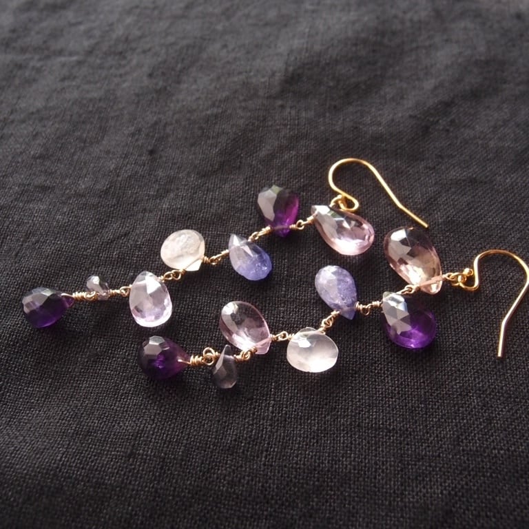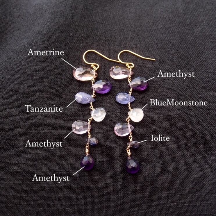 7種類の美しい天然石が、モビールのようにエレガントに揺れるフックピアス。