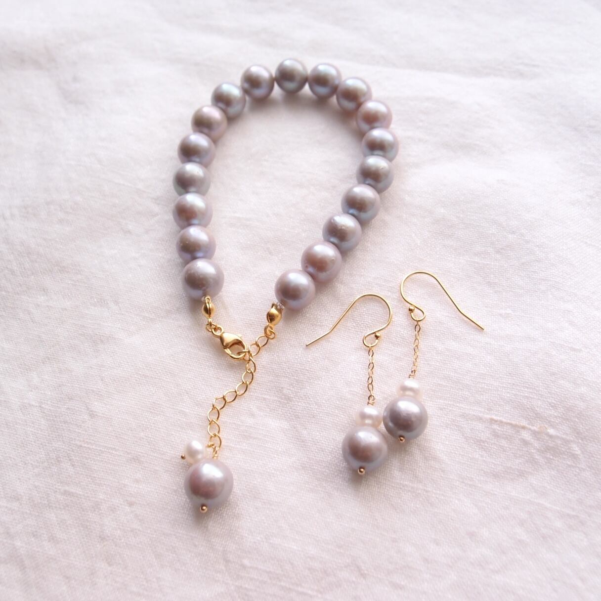 【K14gf】Gray × White Pearl Earrings/バイカラー パールピアス(ライトグレー×ホワイト)