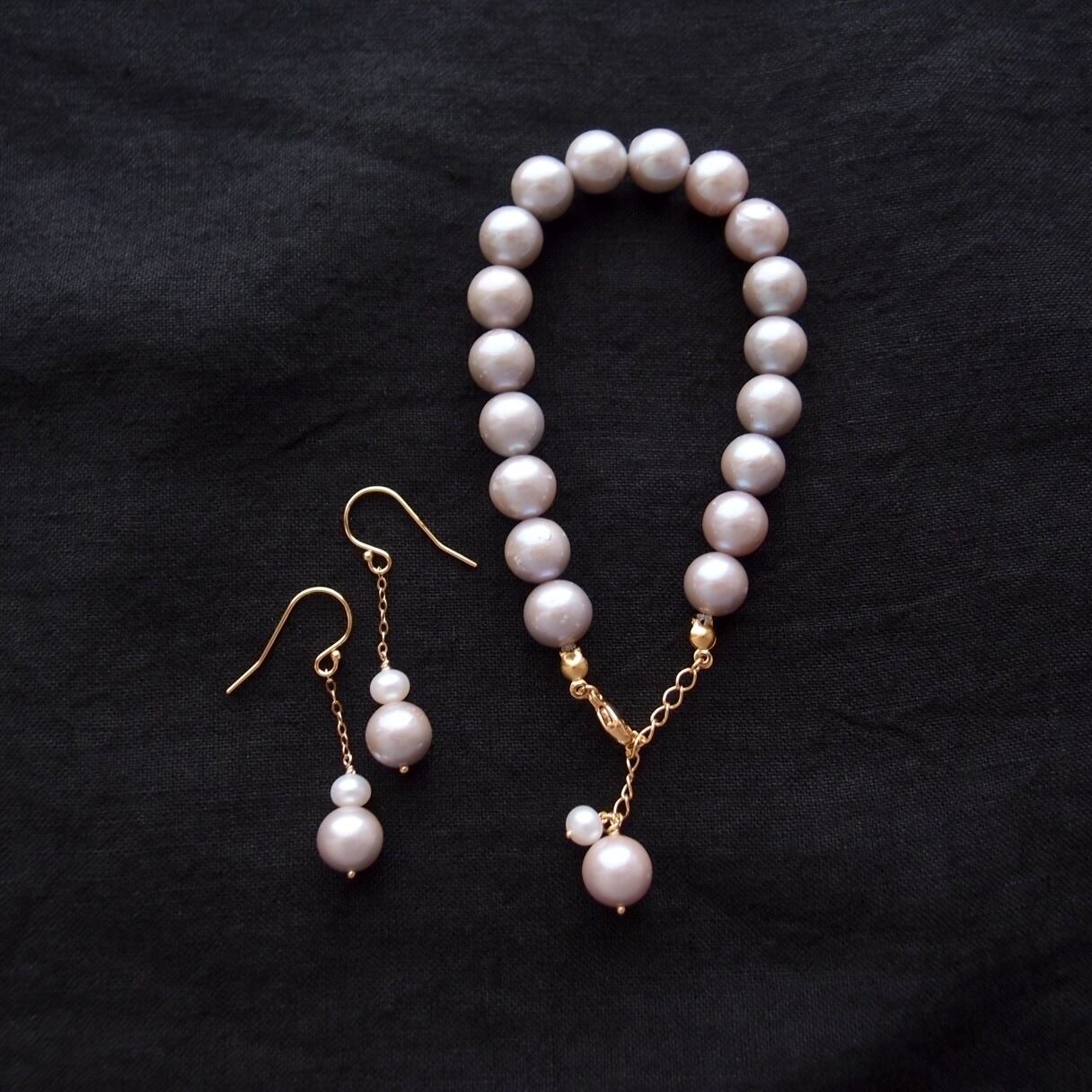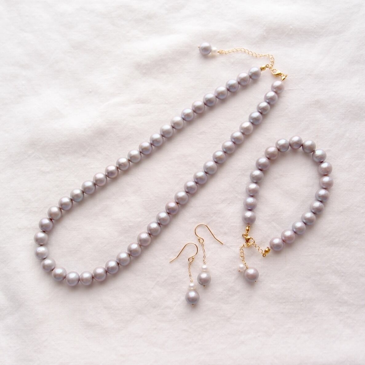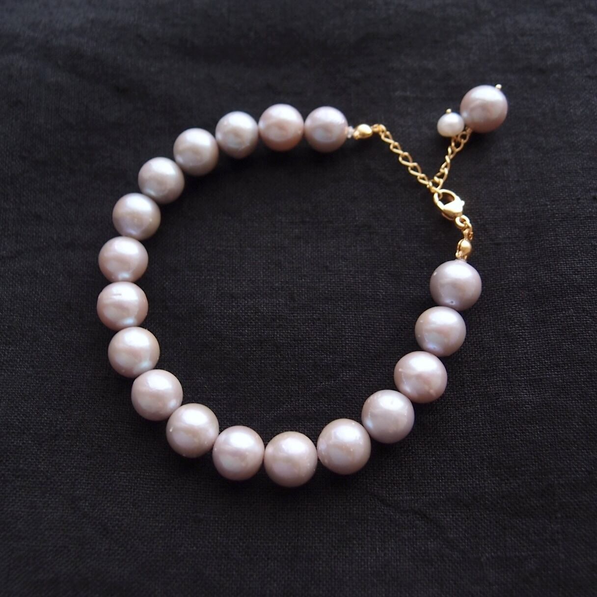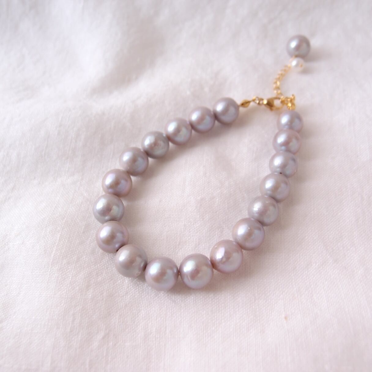 ふんわり上品なグレーカラーのラウンドパールをシンプルに並べたブレスレット。