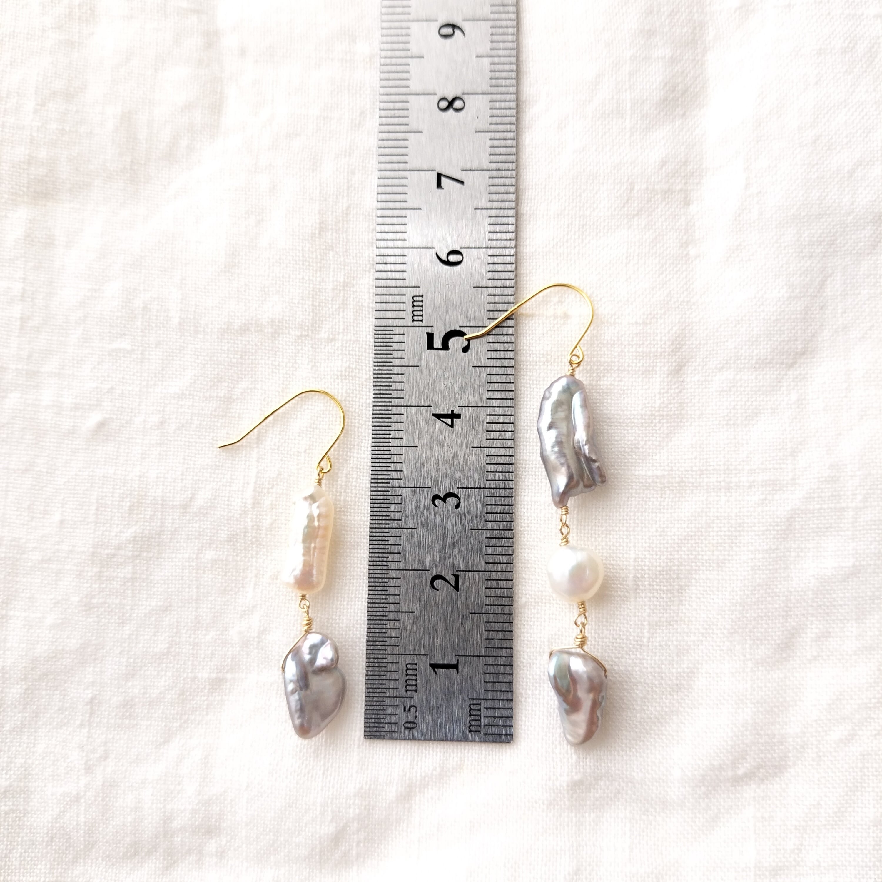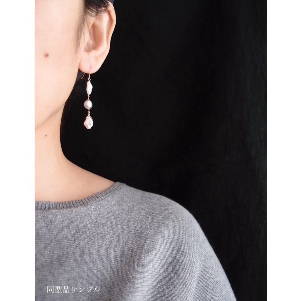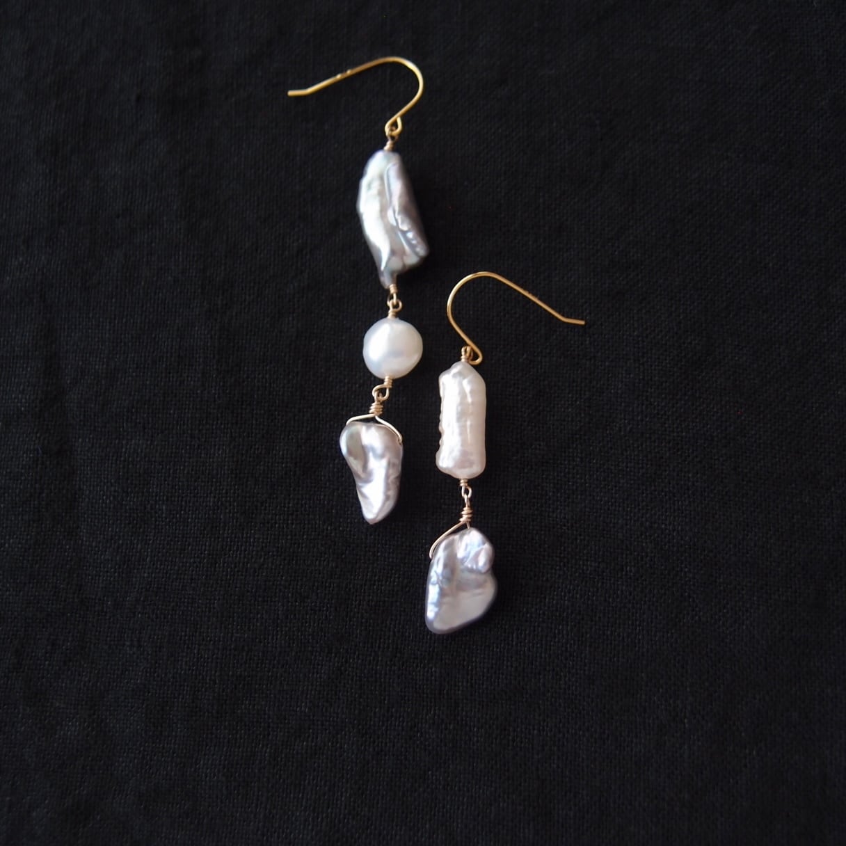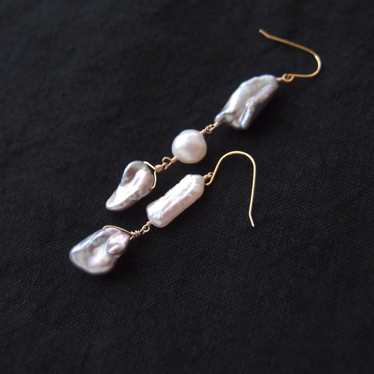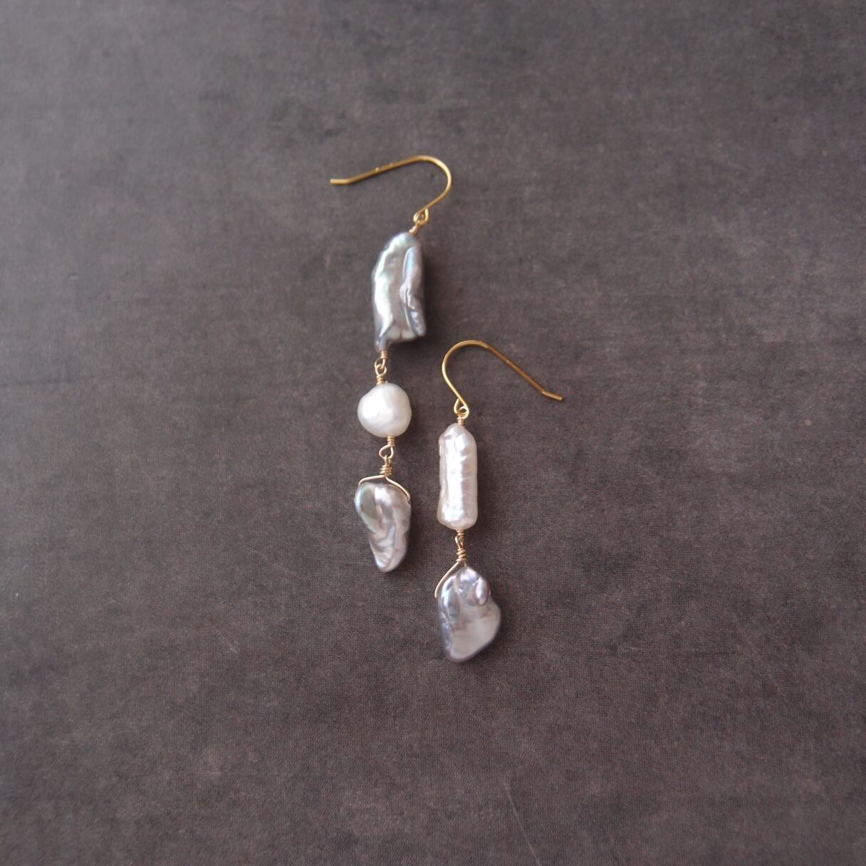 再入荷【K14gf】 Baby Baroque Pearl Asymmetry Earrings/ベビーバロックパール アシンメトリーピアス(Gray)