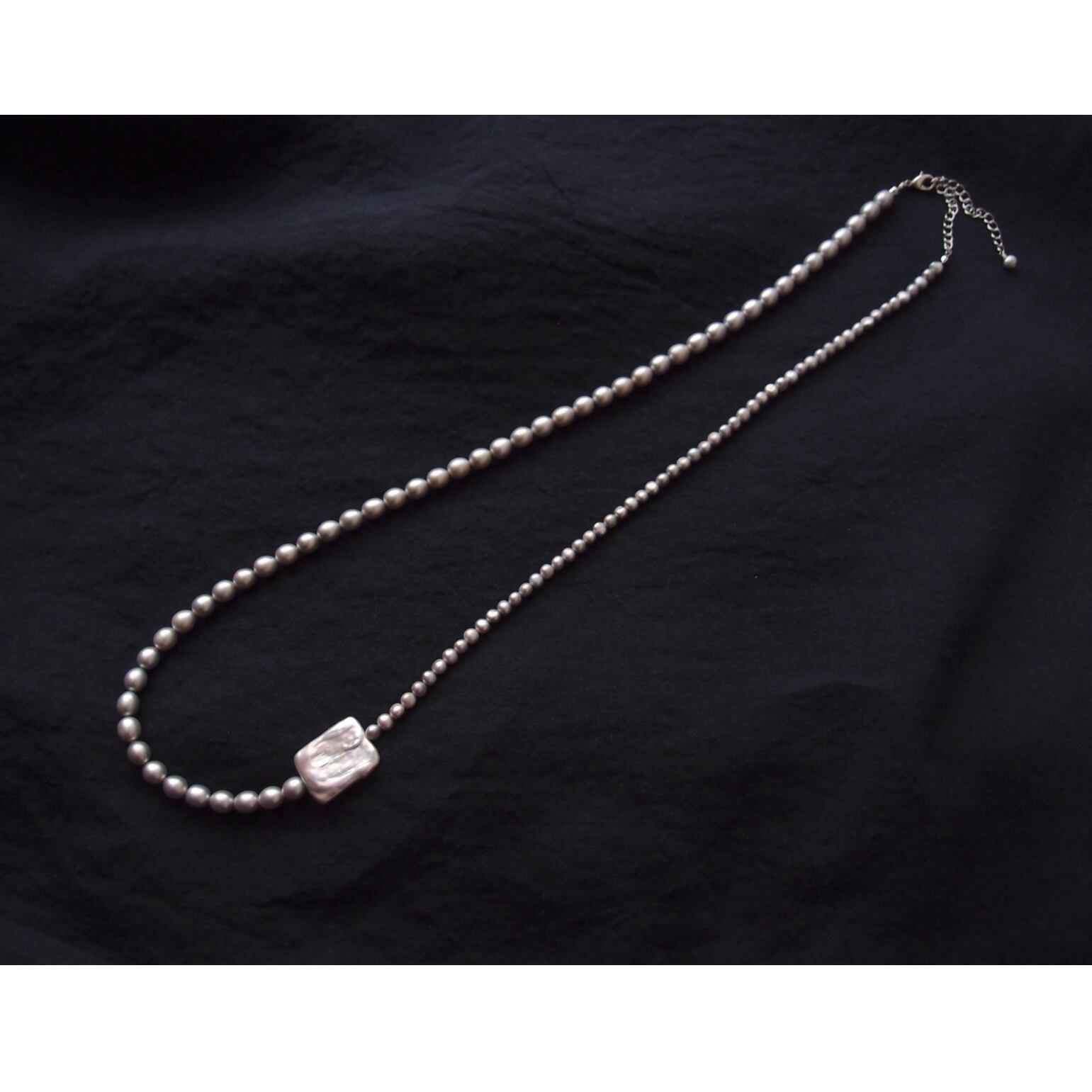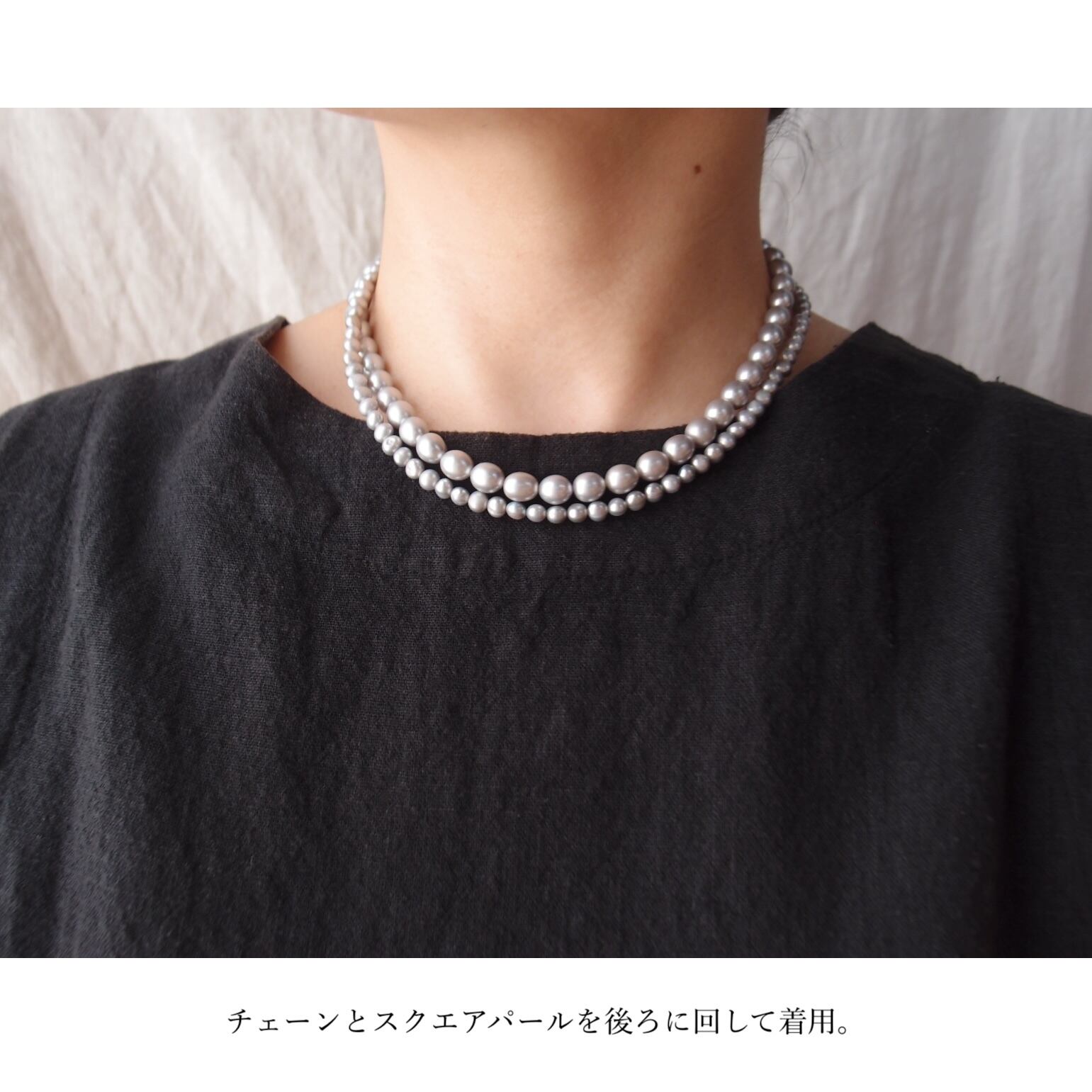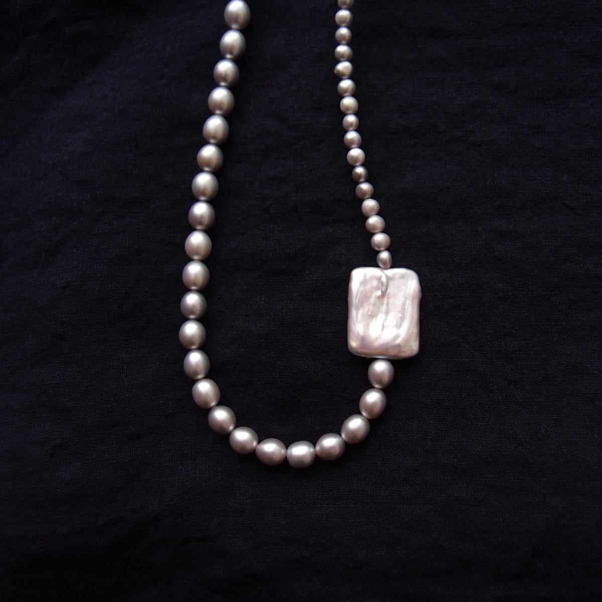 Square Pearl Asymmetry Necklace /スクエアパール アシンメトリーネックレス(Gray)
