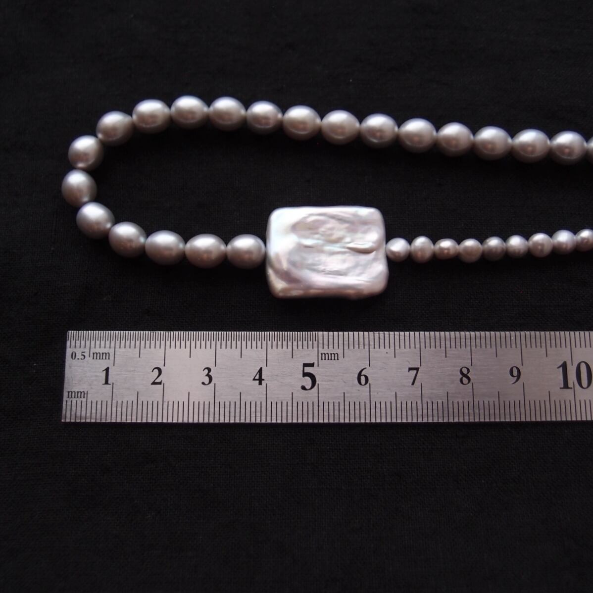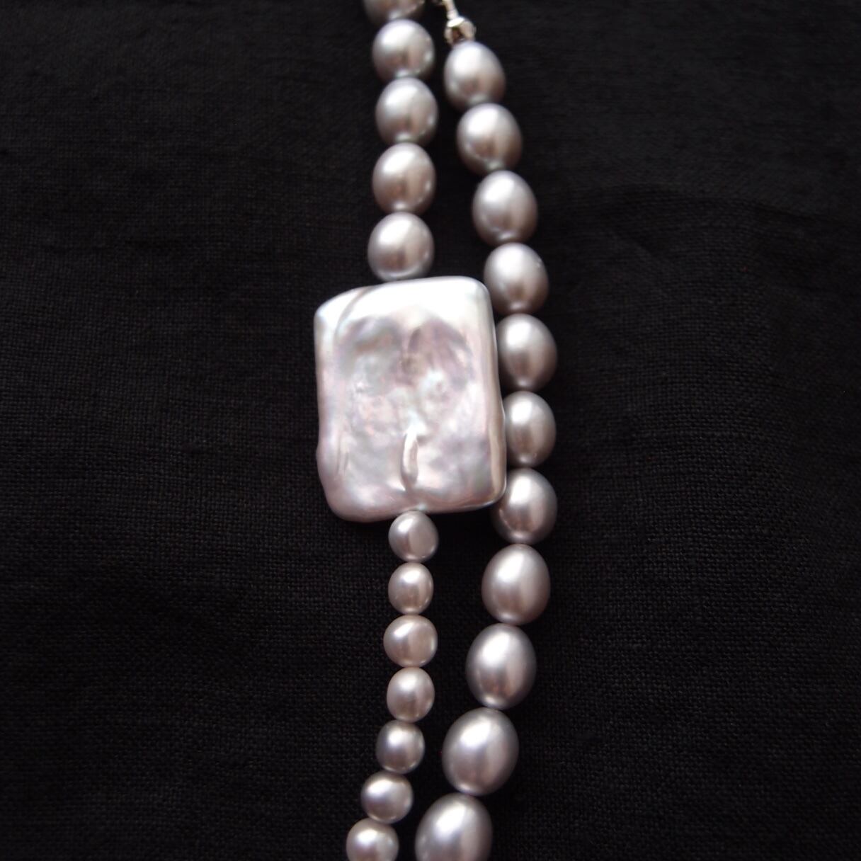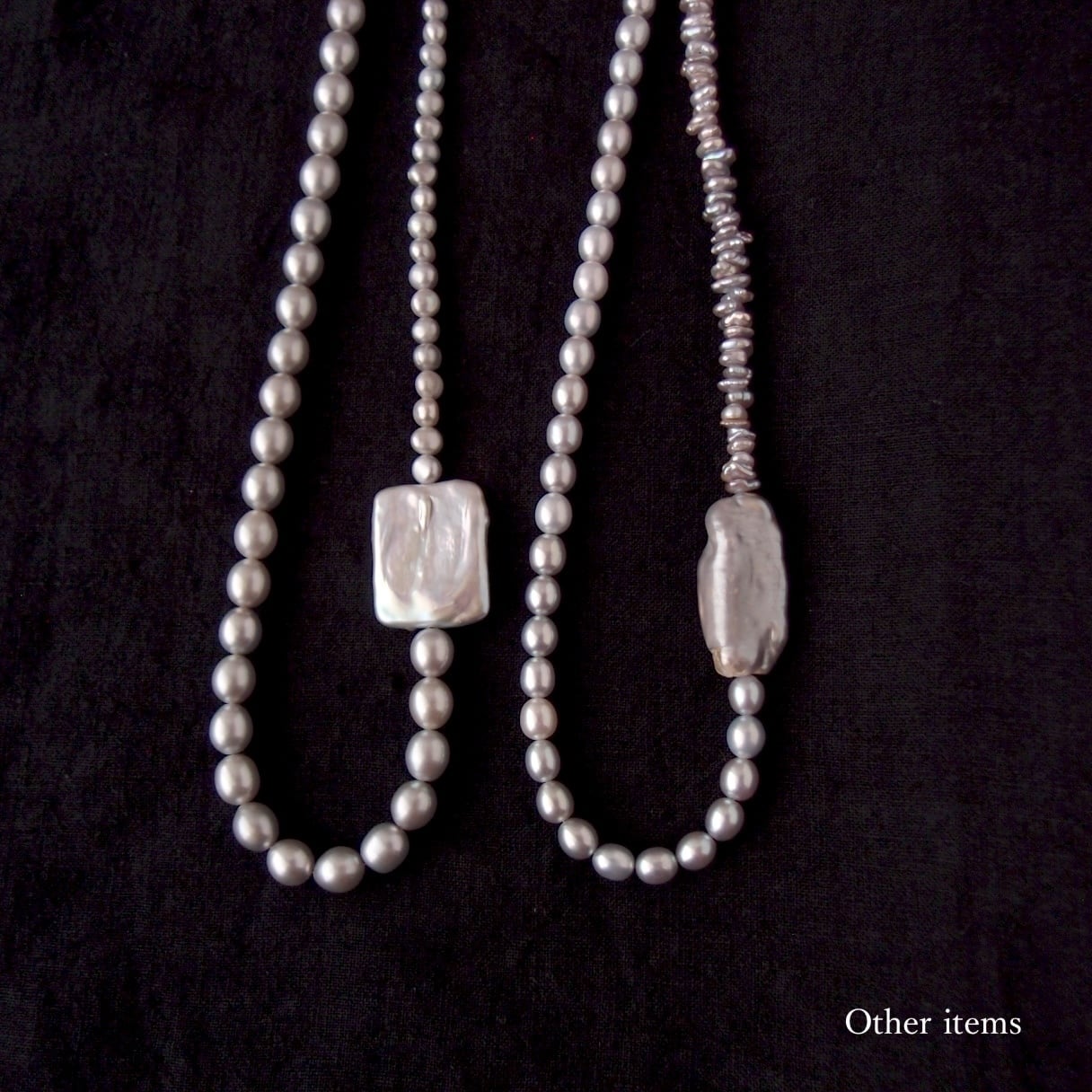 Square Pearl Asymmetry Necklace /スクエアパール アシンメトリーネックレス(Gray)