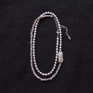 Biwa × Keshi Pearl Asymmetry Necklace /ビワ×ケシパール アシンメトリーネックレス(Gray)