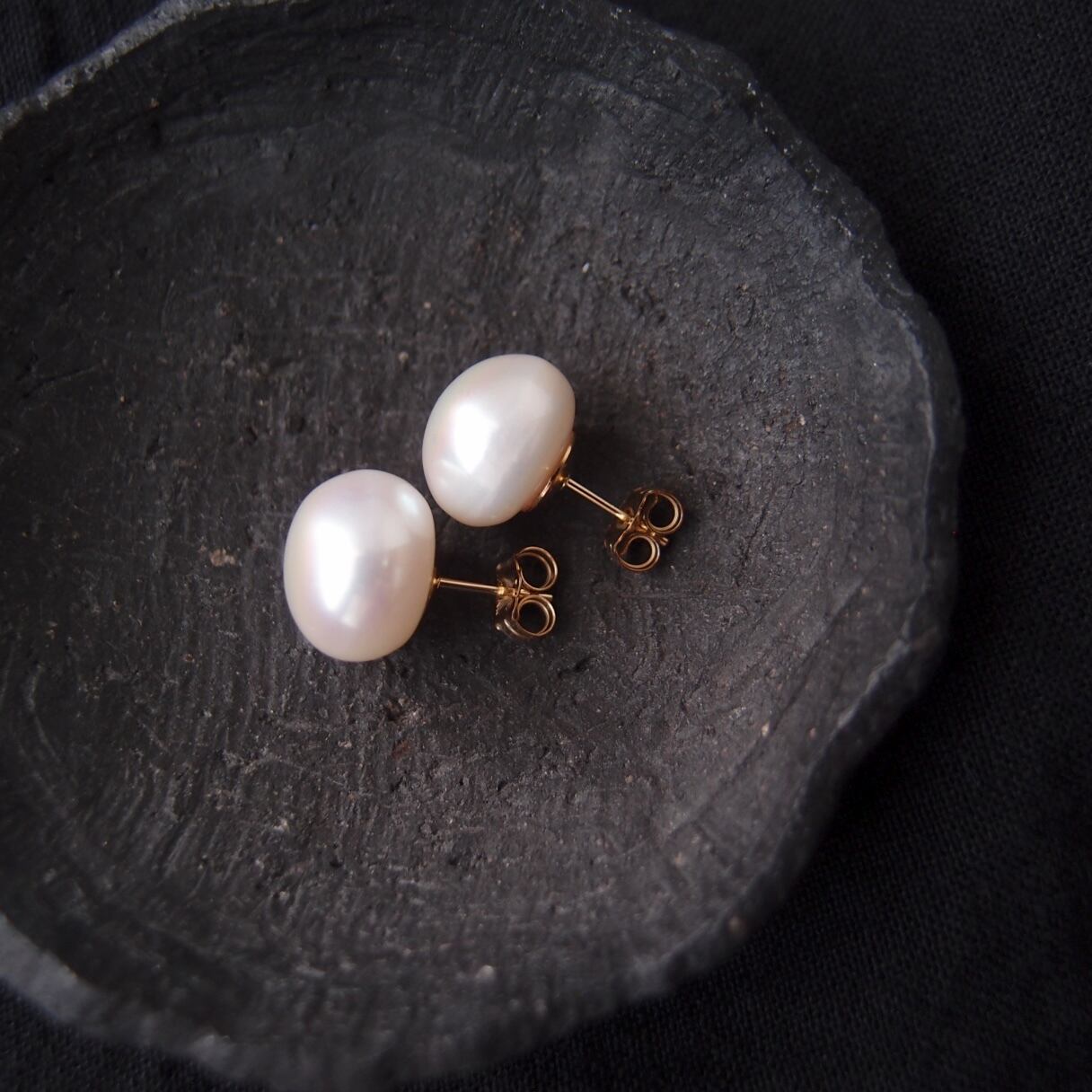 上質バロックパールのスタッドピアス。