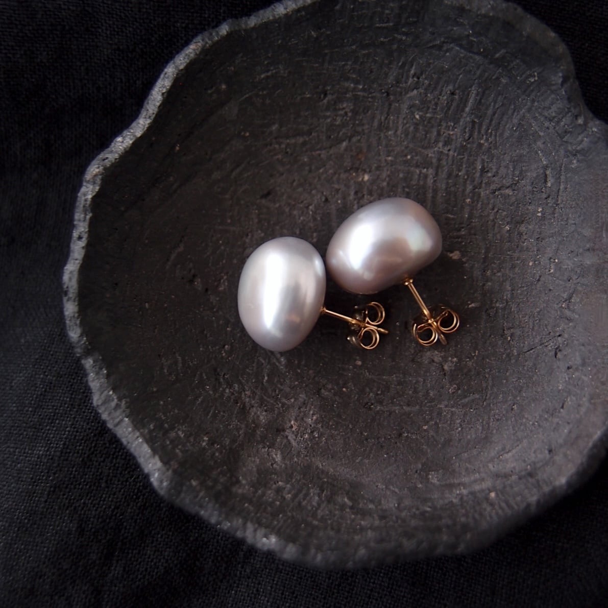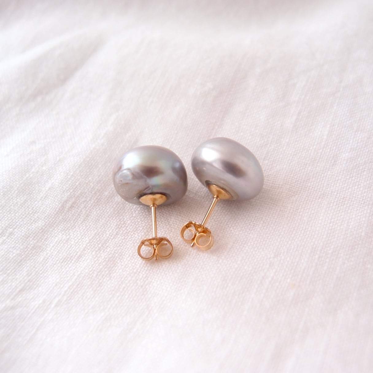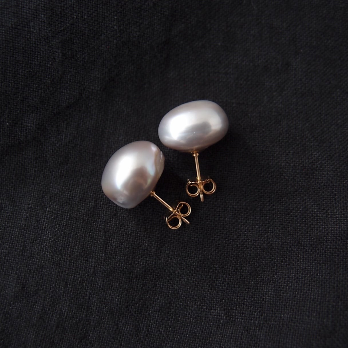 再入荷【K14gf】Baroque Pearl Earrings/大粒グレーバロックパール スタッドピアス(Gray)