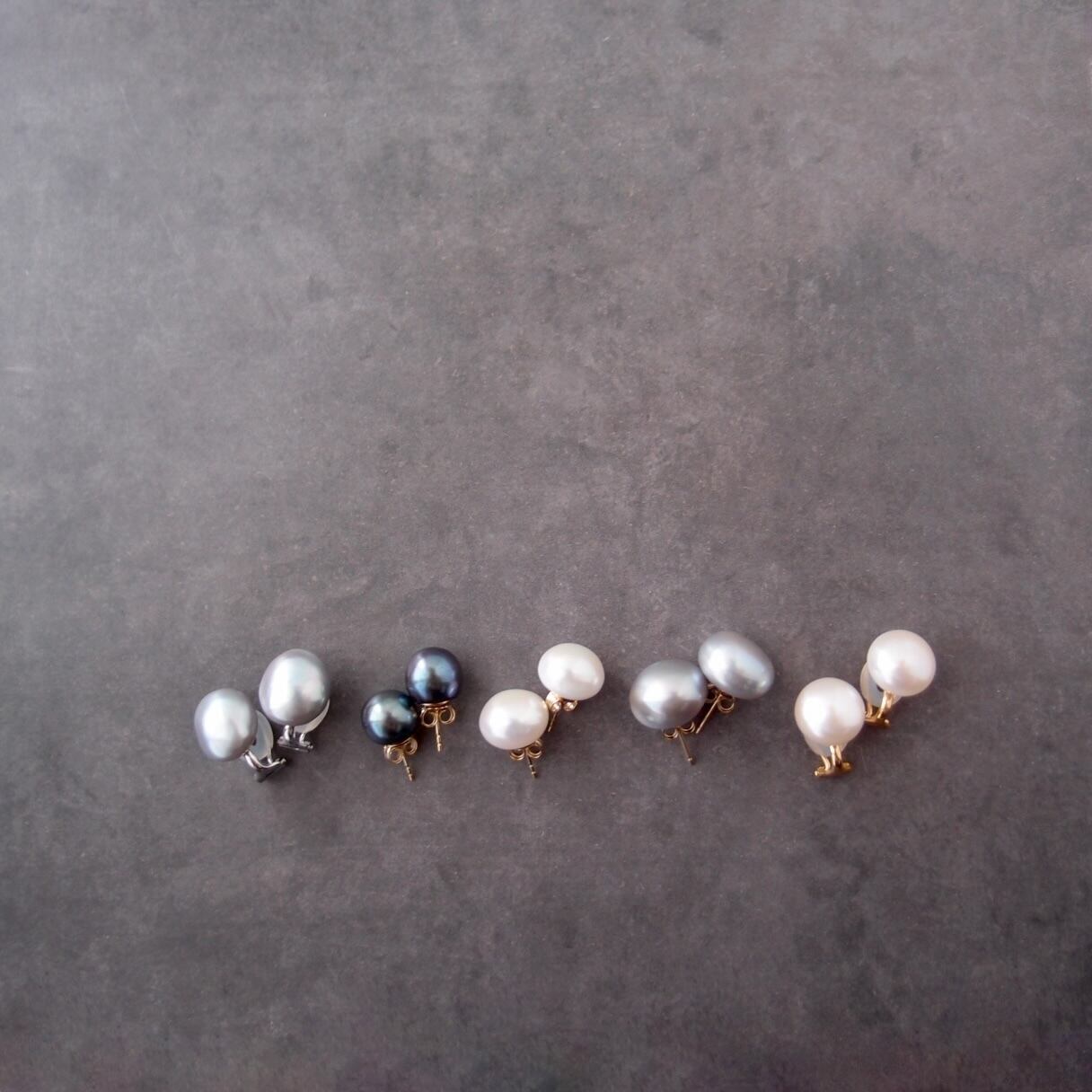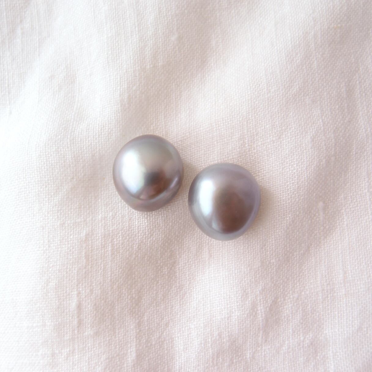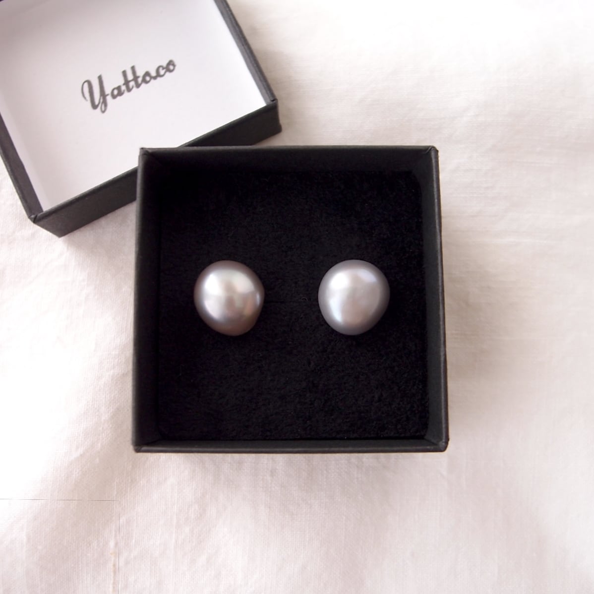 再入荷【K14gf】Baroque Pearl Earrings/大粒グレーバロックパール スタッドピアス(Gray)