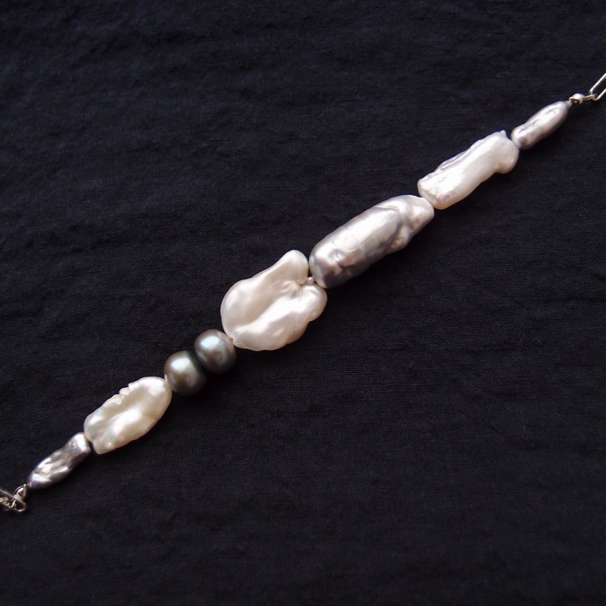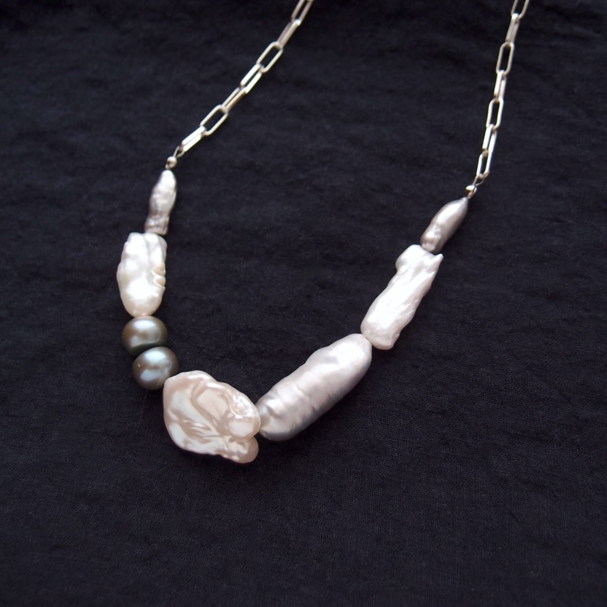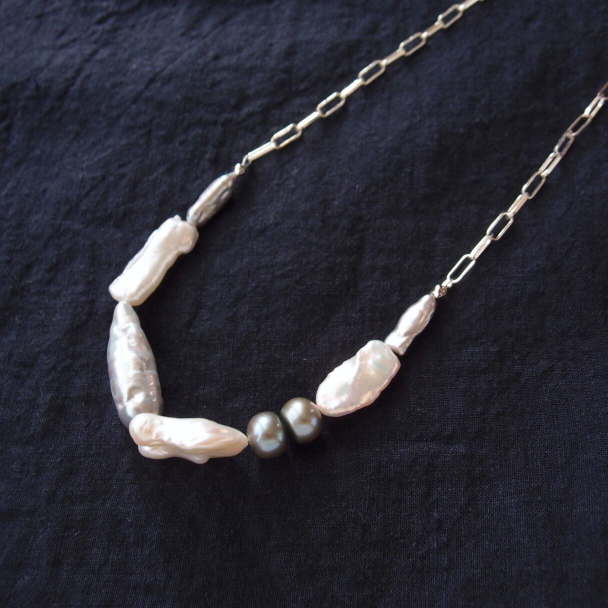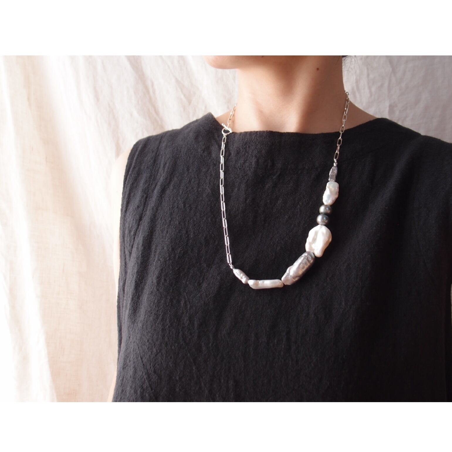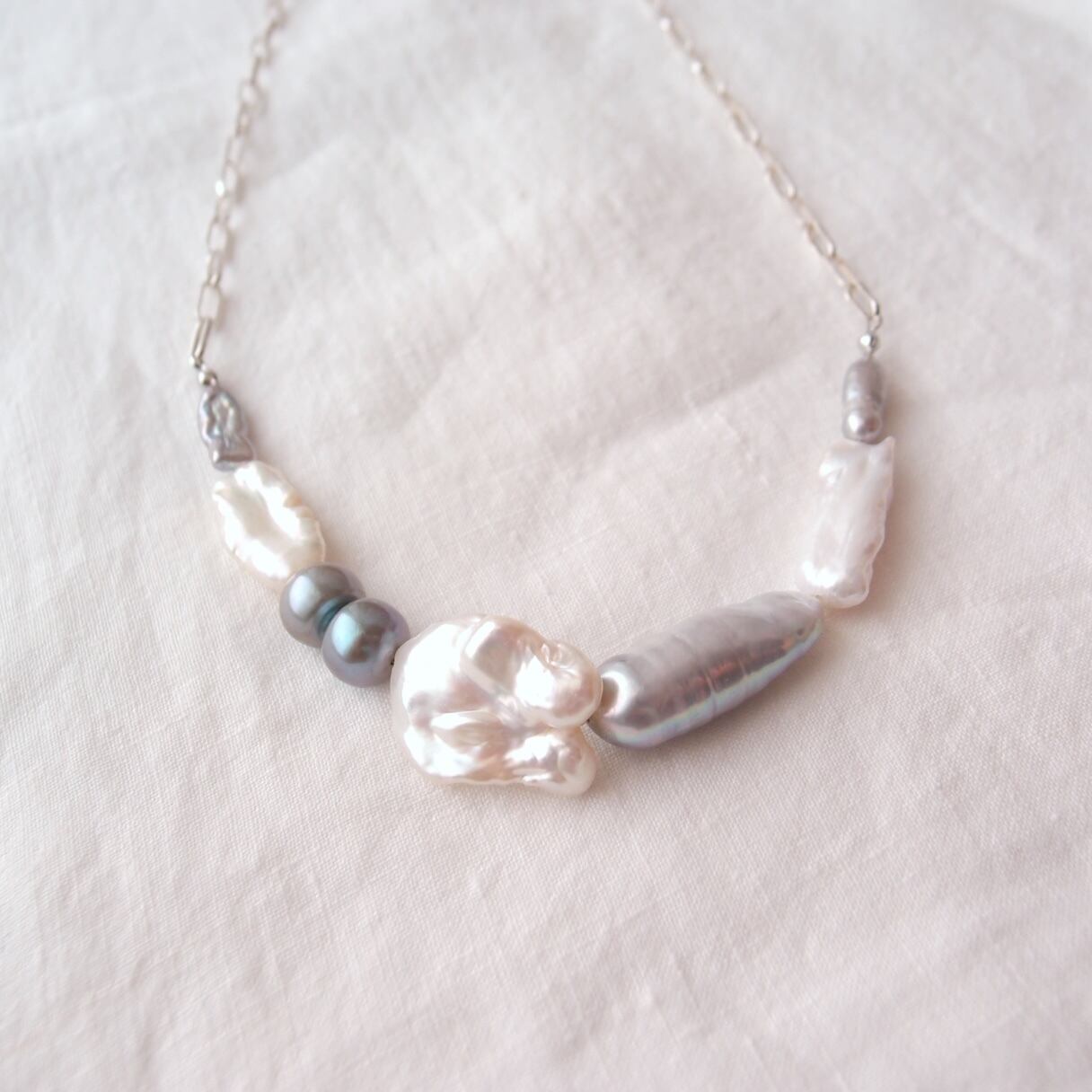 Petal Mix Asymmetry Necklace /パールミックス 非対称ネックレス( White×Gray)