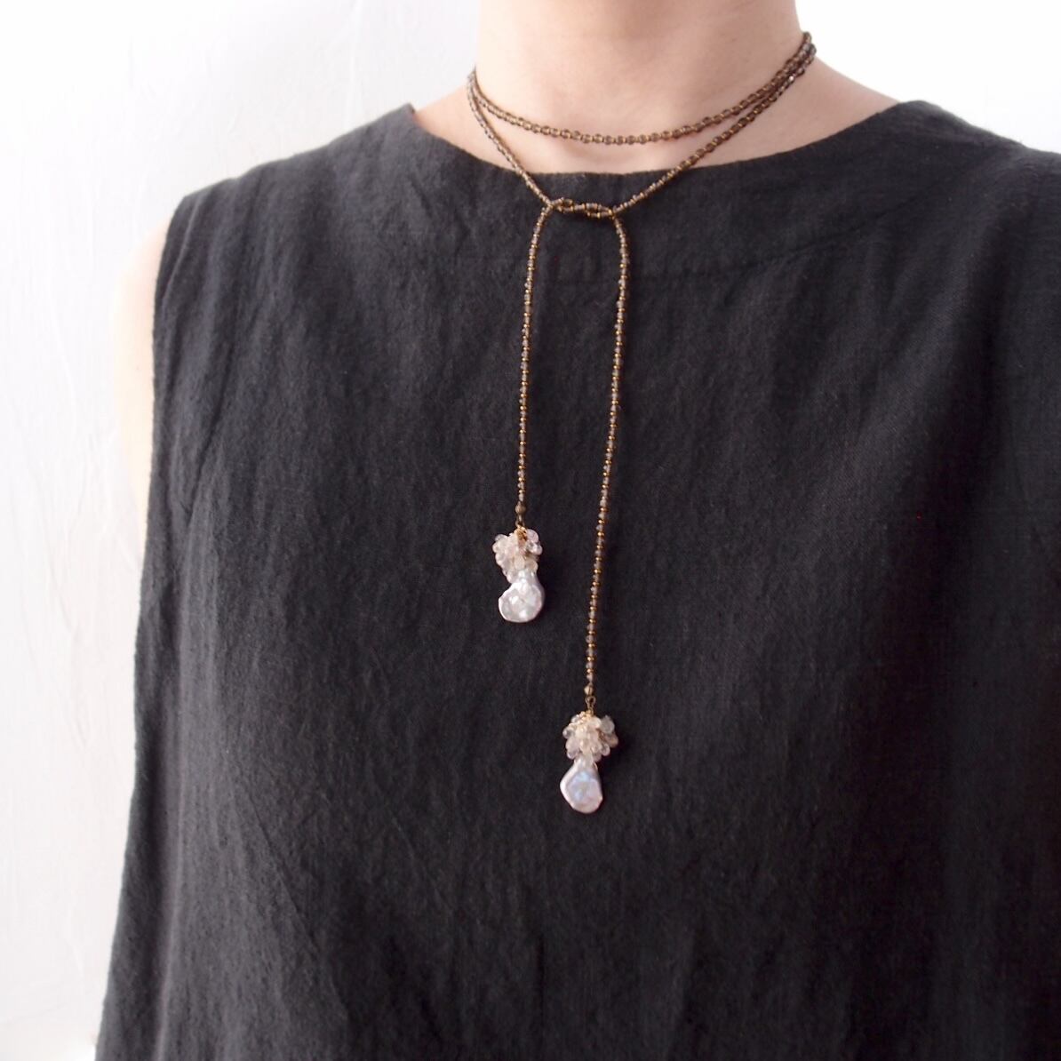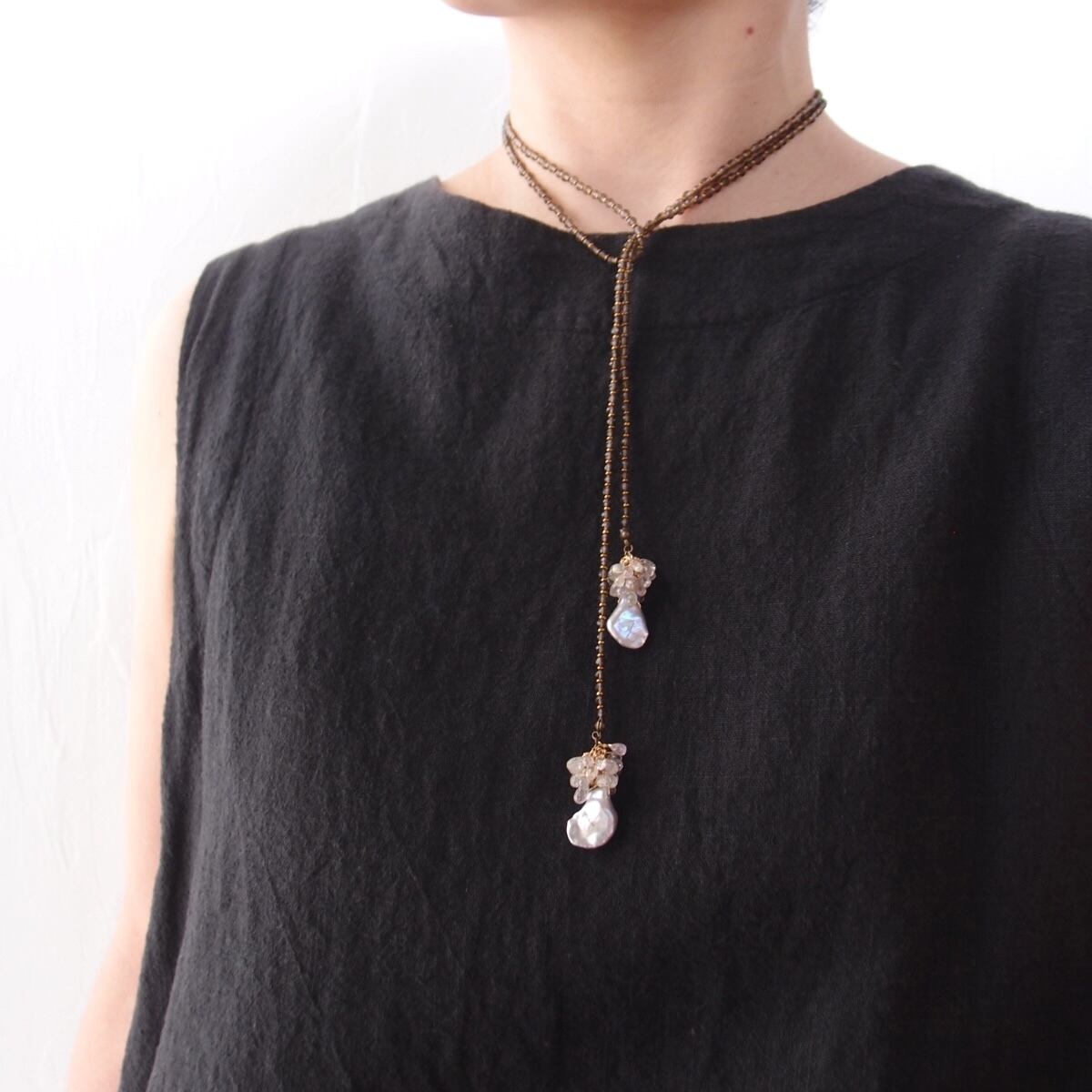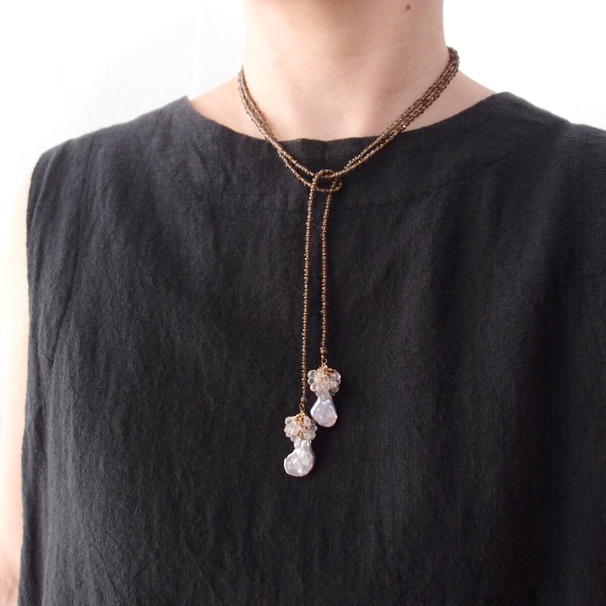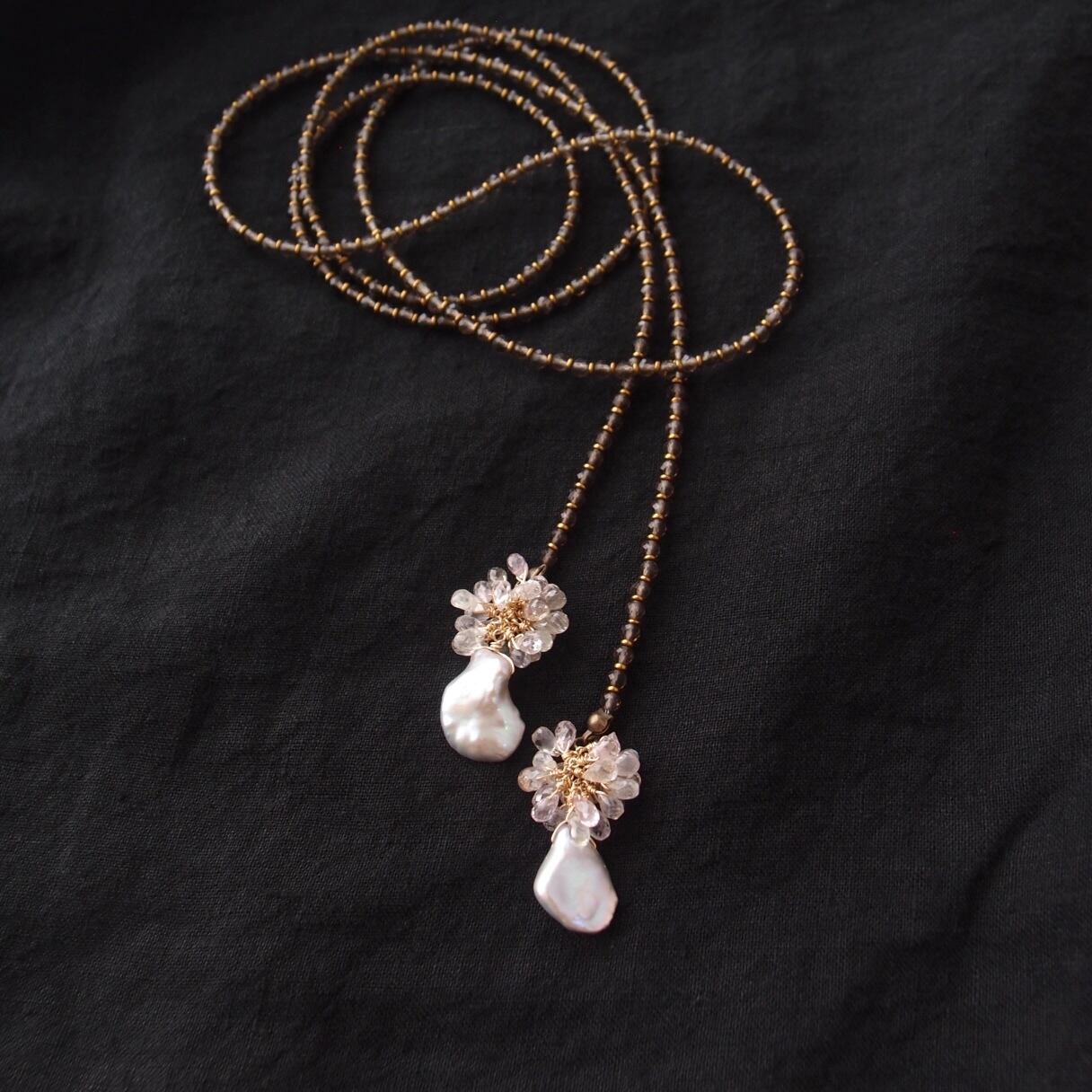 Pearl × Sapphire Lariat Necklace(Smoky Quartz)/パール×サファイア ラリエットネックレス(スモーキークォーツ)