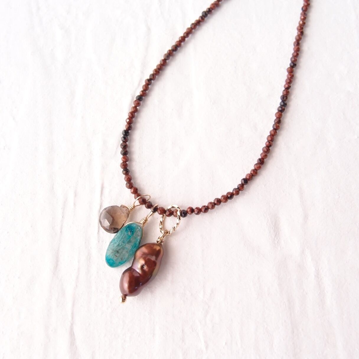 Mahogany Obsidian Charm Necklace Set/マホガニーオブシディアン チャームネックレスセット