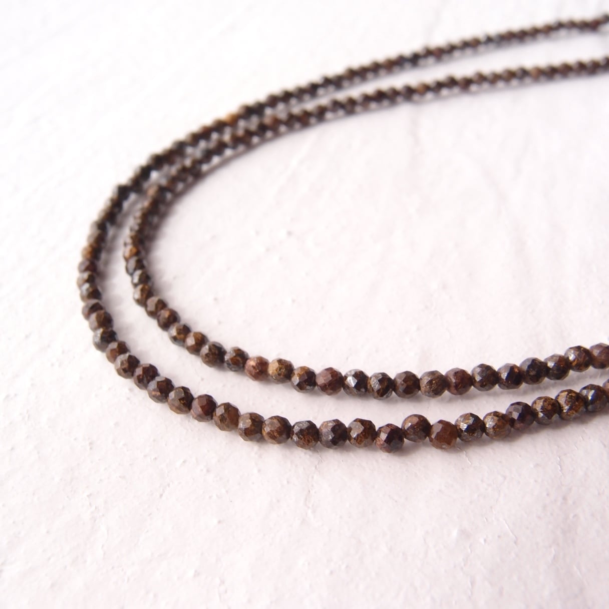 ラメ斑点が輝くブロンザイトネックレスに、