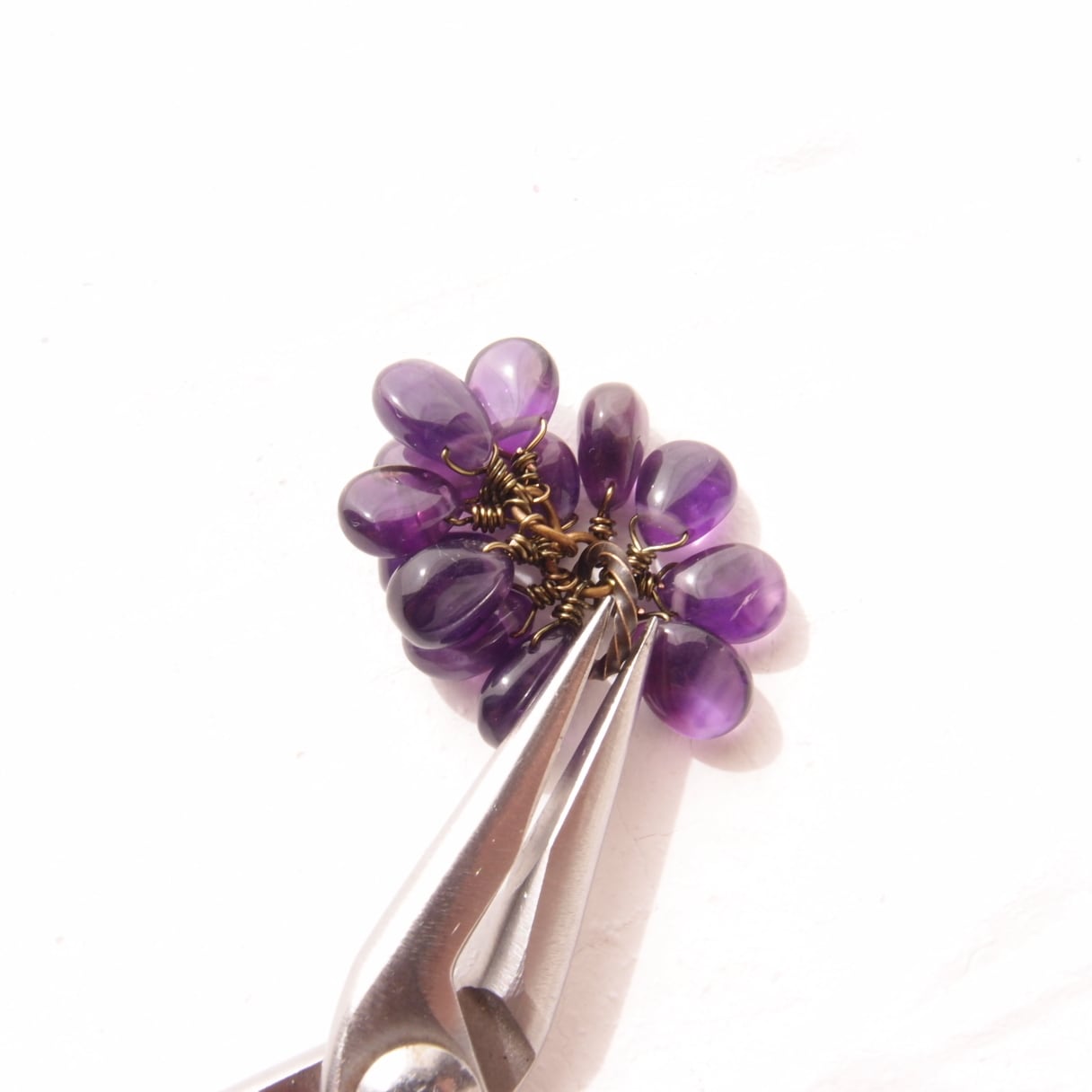 ・ブラウン、グリーンとも好相性の上質なアメシストのフリンジチャーム。