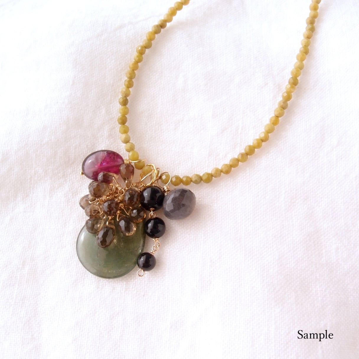 【K14gf】Colored Stone Plane Necklace・Olive Opal/プレーンネックレス(オリーブオパール)