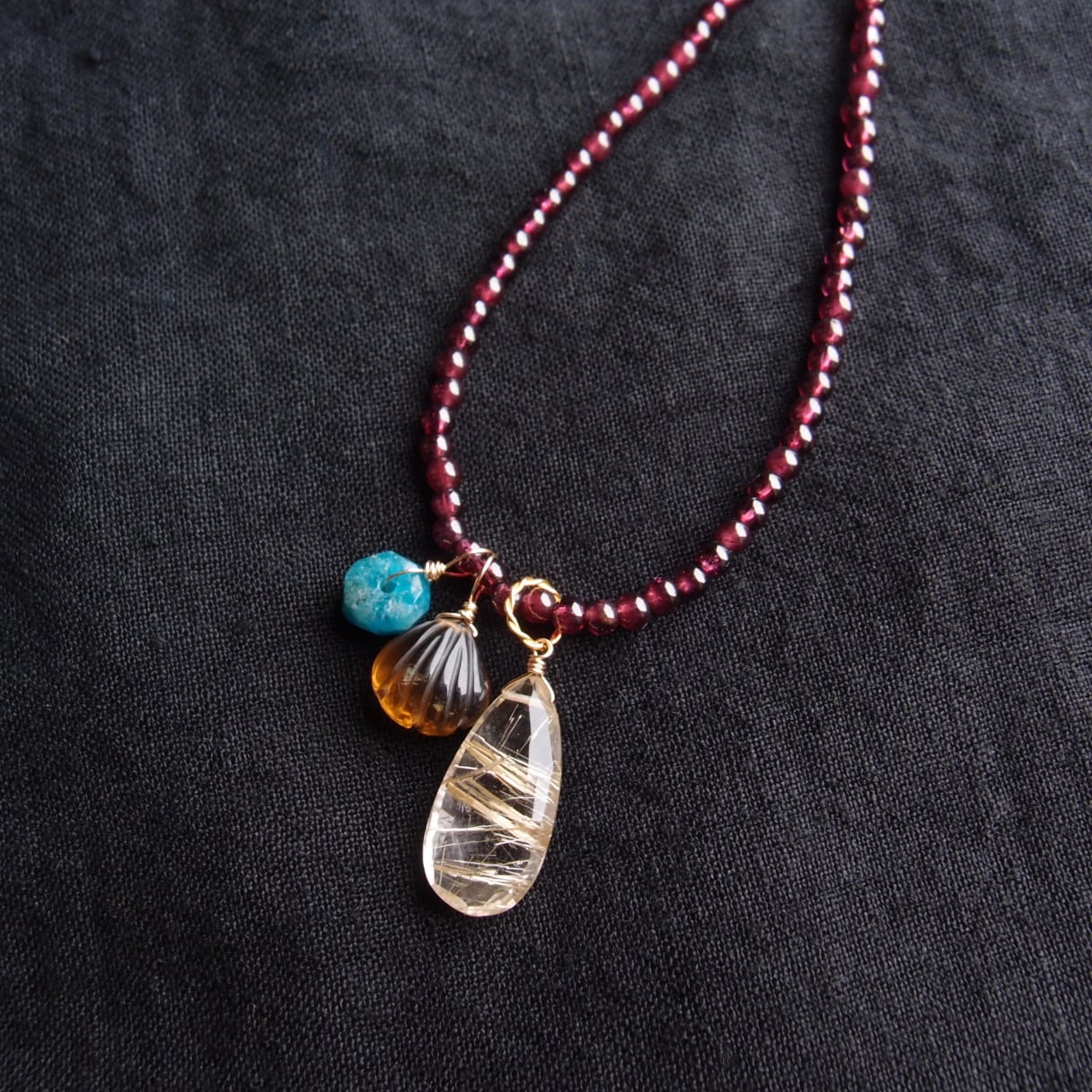 こちらは、大粒のルチルクォーツが目を惹く1セット。