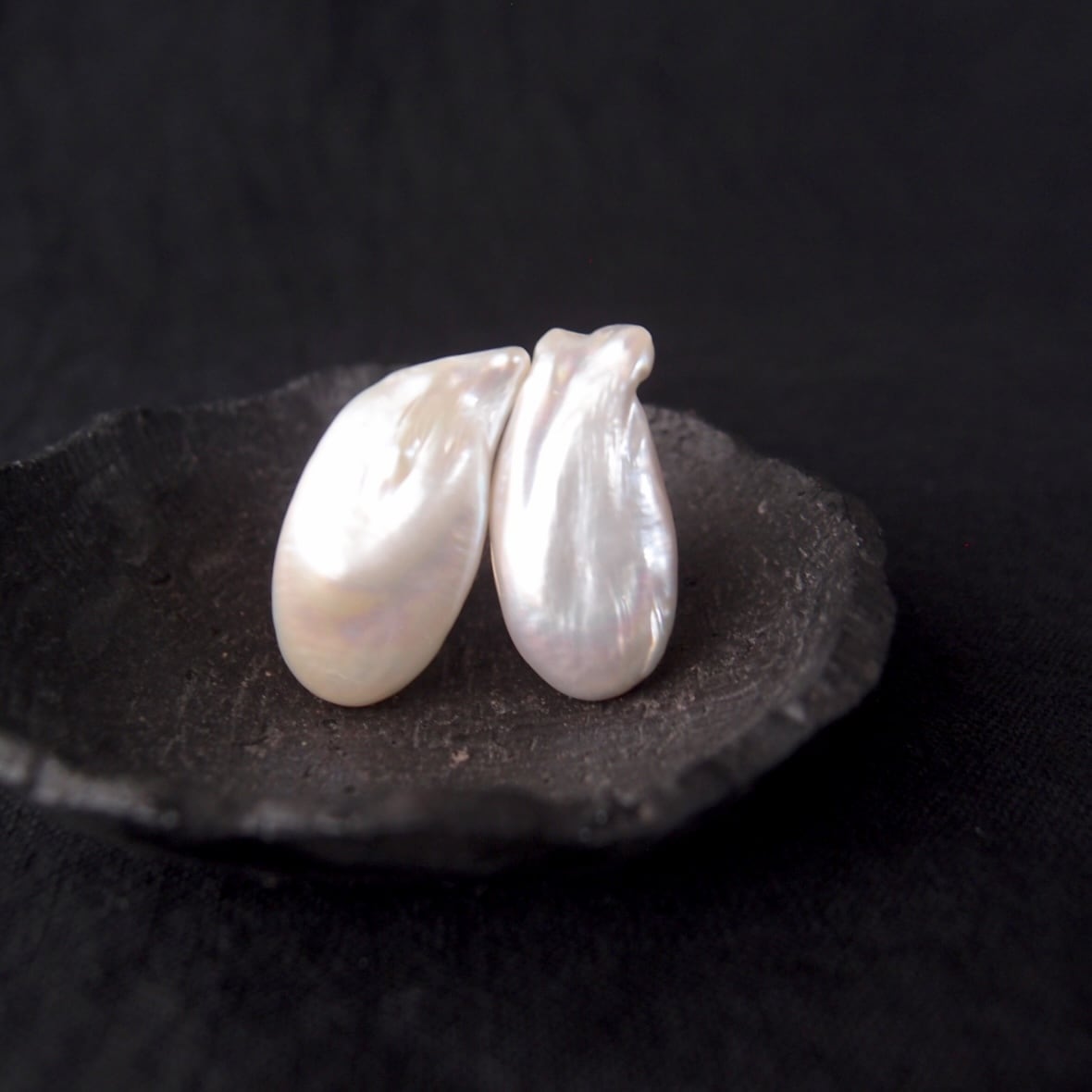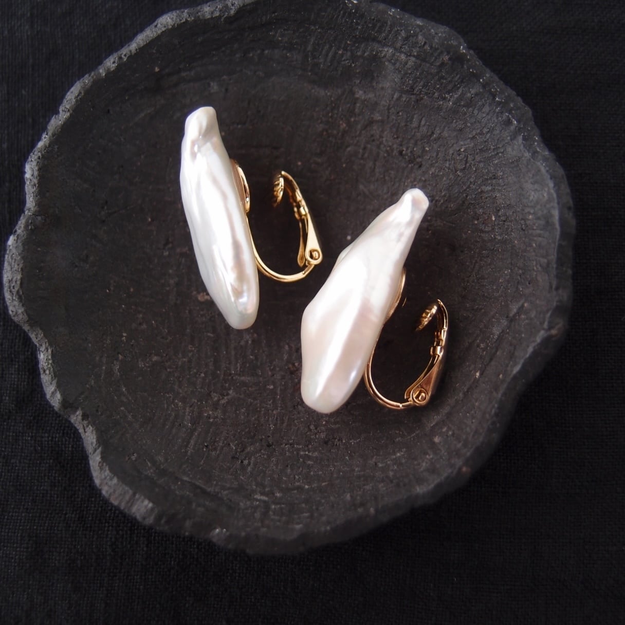 Baroque Pearl Earrings・Flat/バロックパール クリップイヤリング(Gold color)