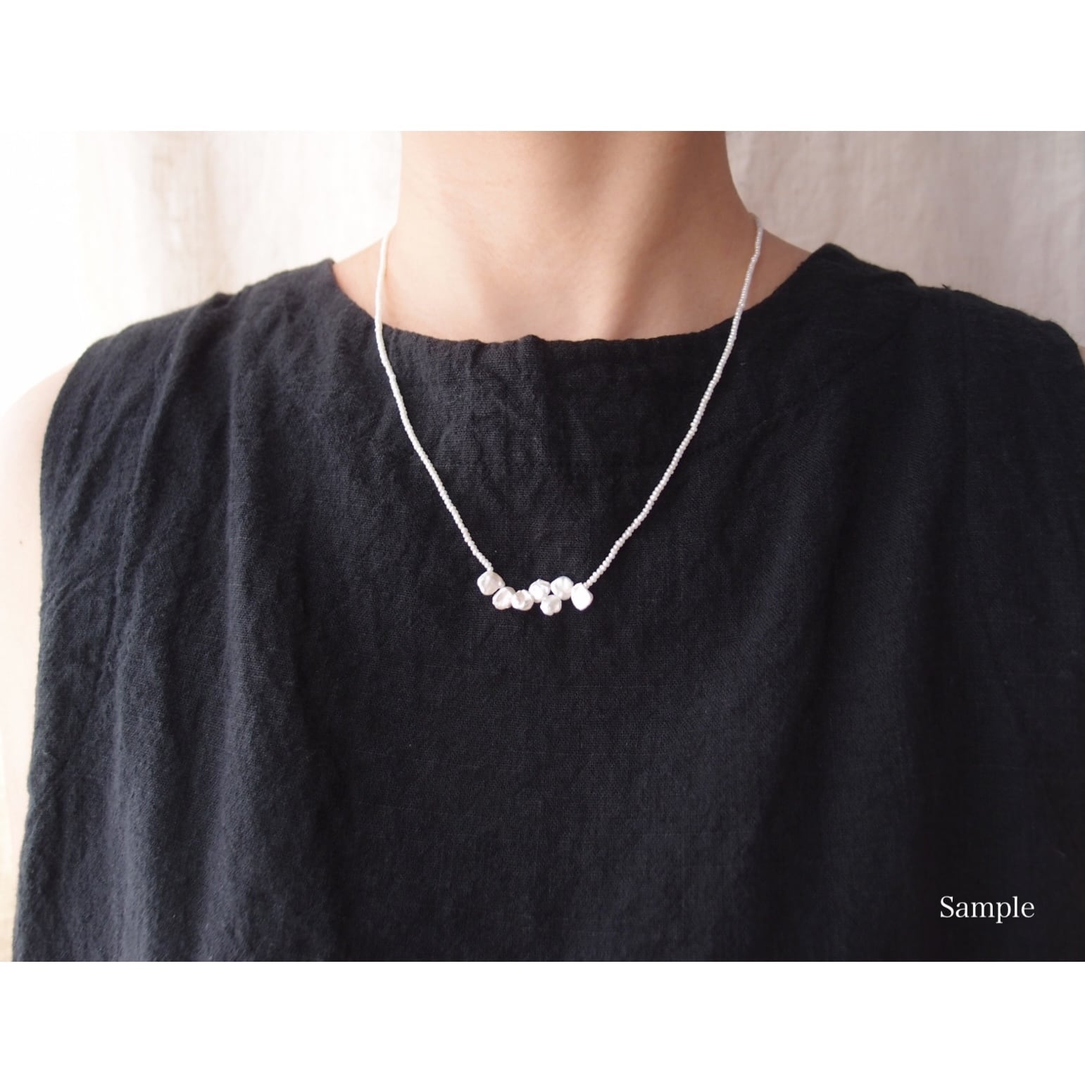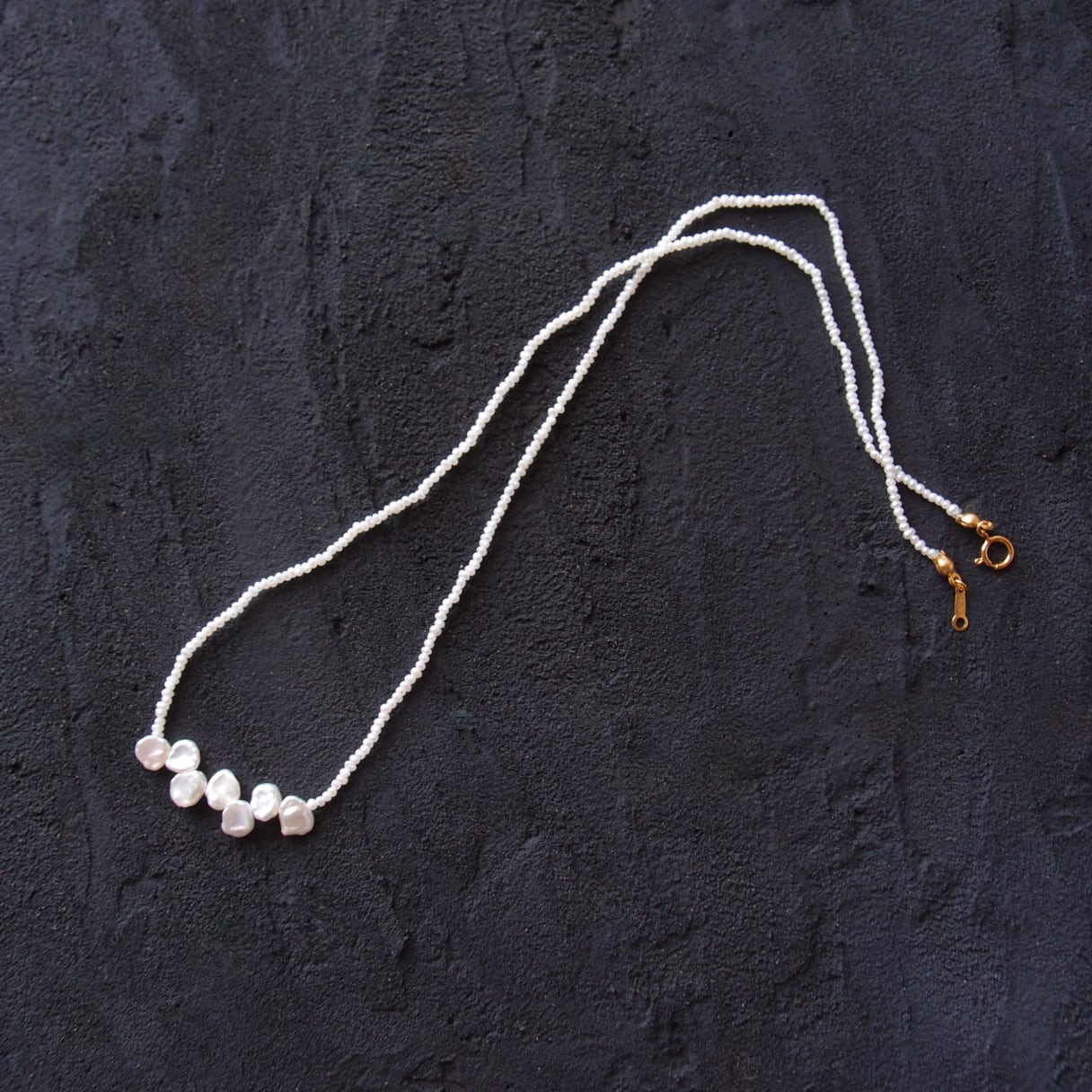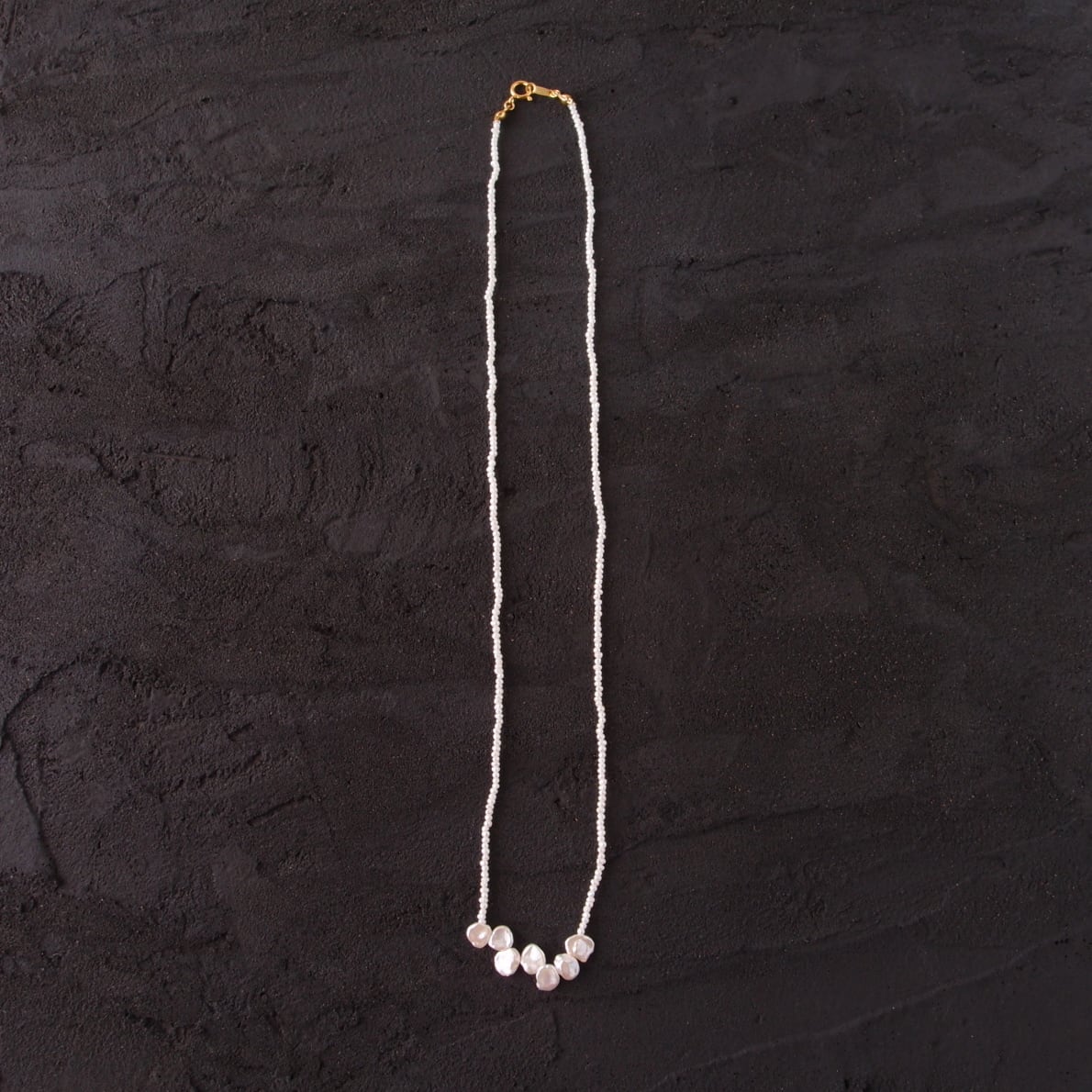 小さな花びらパールでアクセントをつけたシードパールのネックレス。