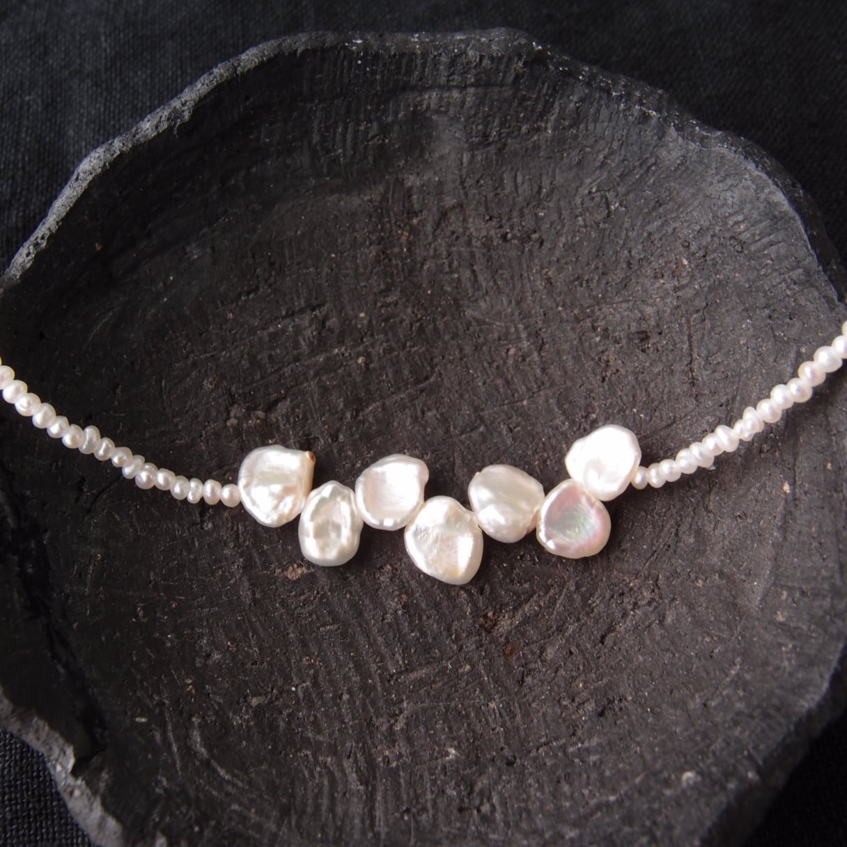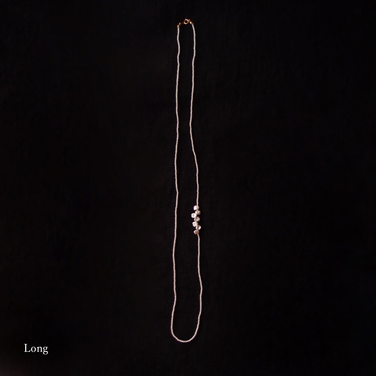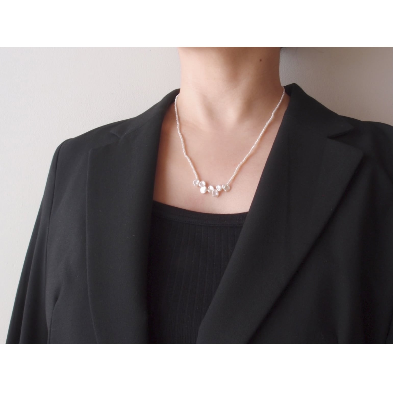 小さな花びらパールでアクセントをつけたシードパールのネックレス。