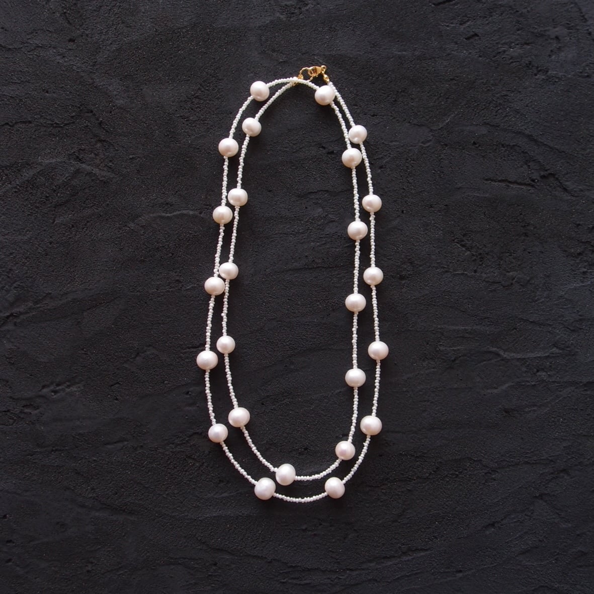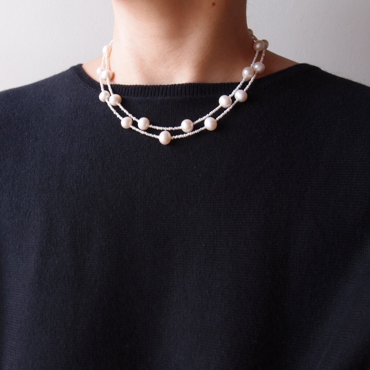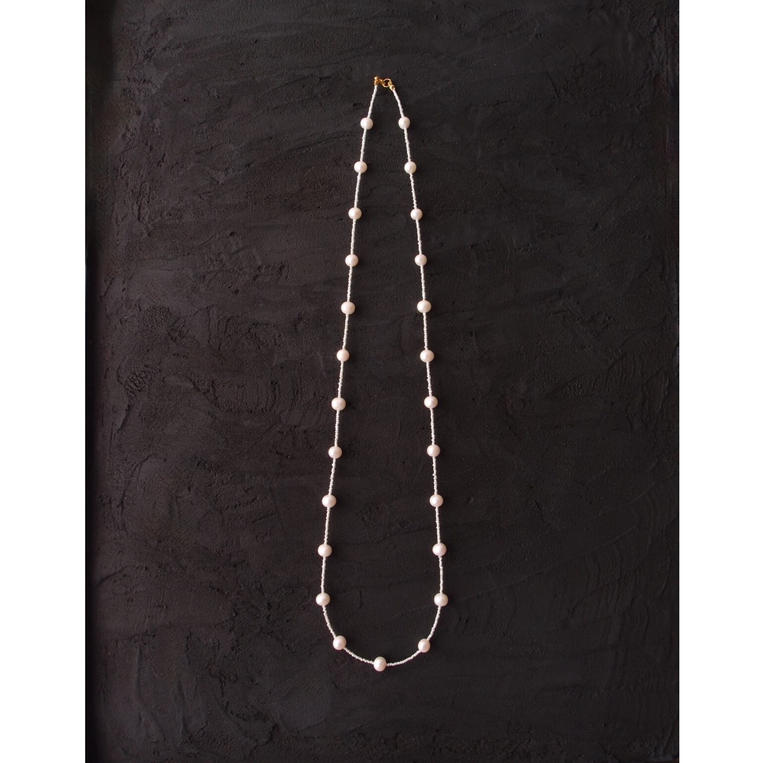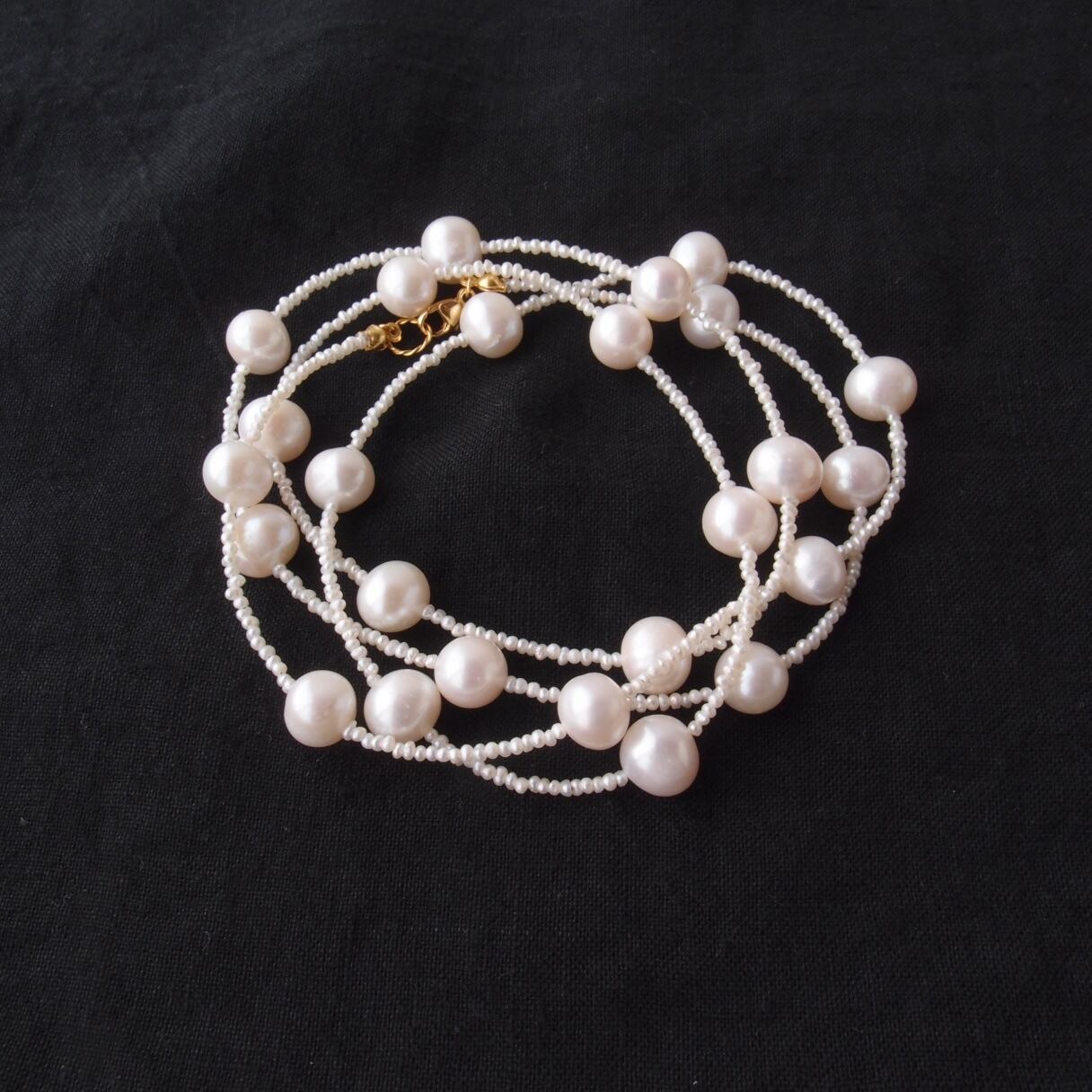 照りの良い大粒パールを散りばめたステーションネックレス。