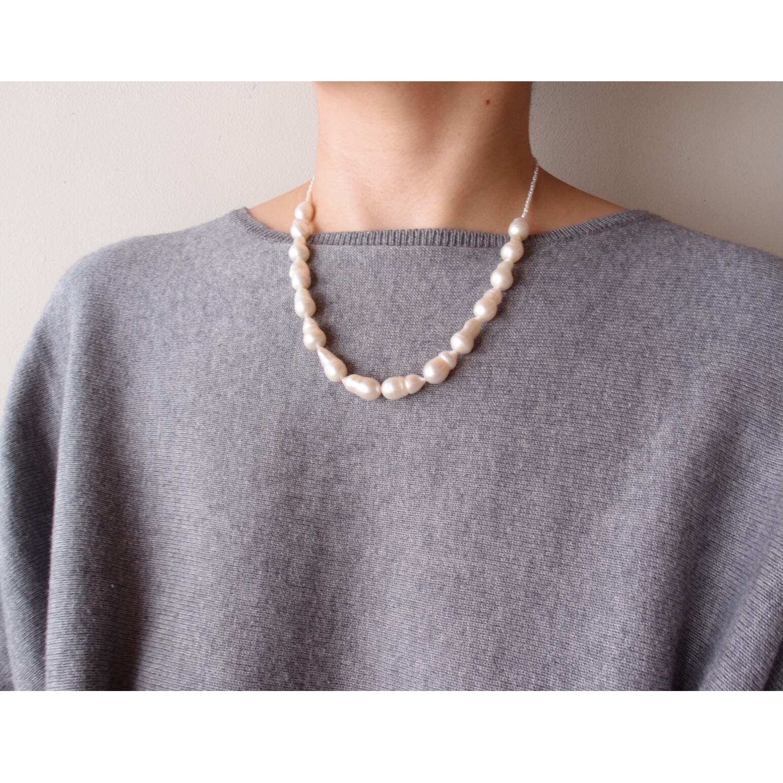 パールでアクセントをつけたネックレスです。