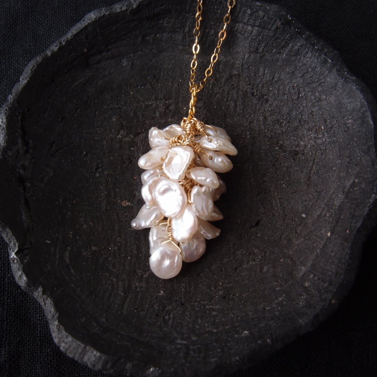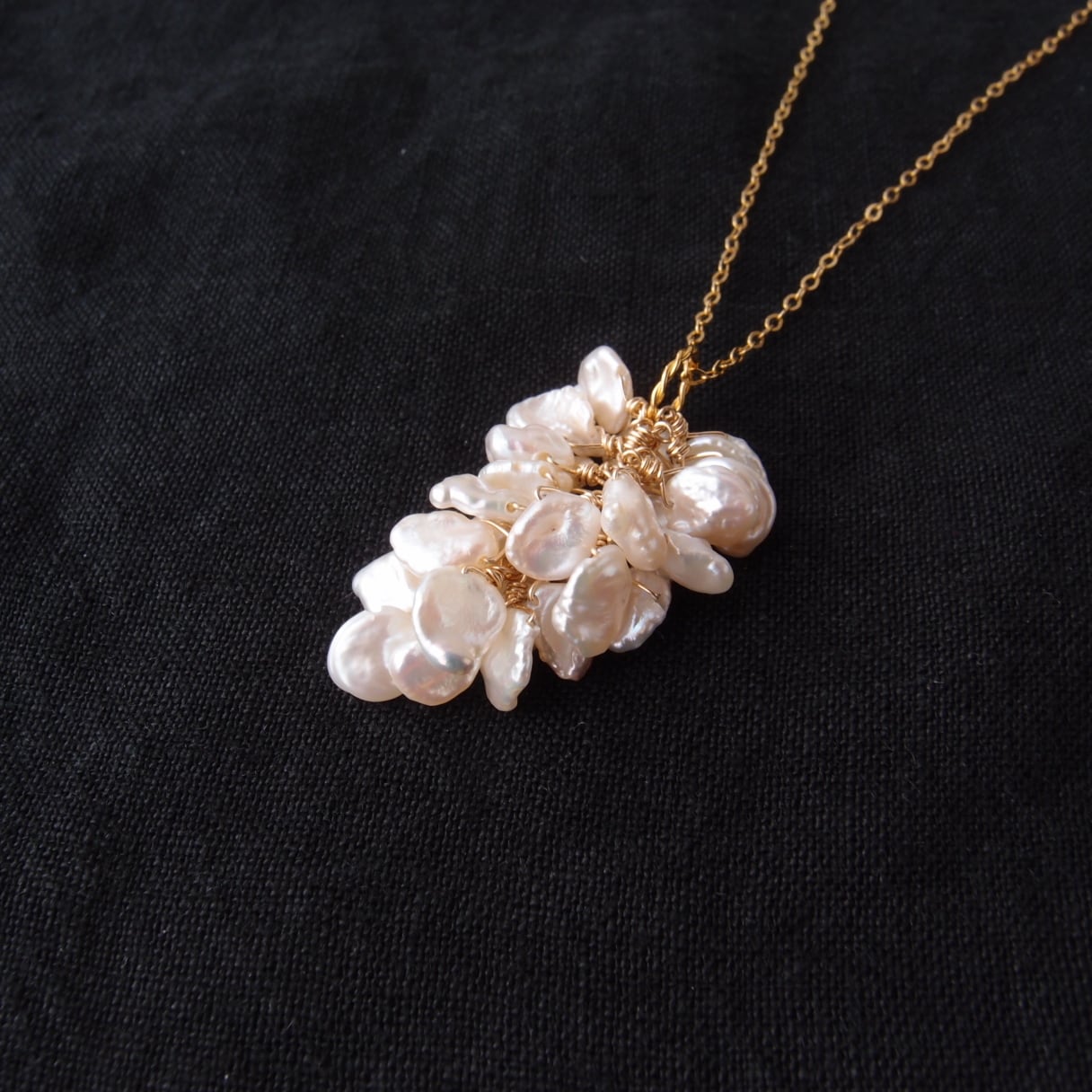 【K14gf】Petit Petal × Biwa × Keshi Pearl Necklace /ビワ×ケシパールネックレス(ペタルチャーム付)