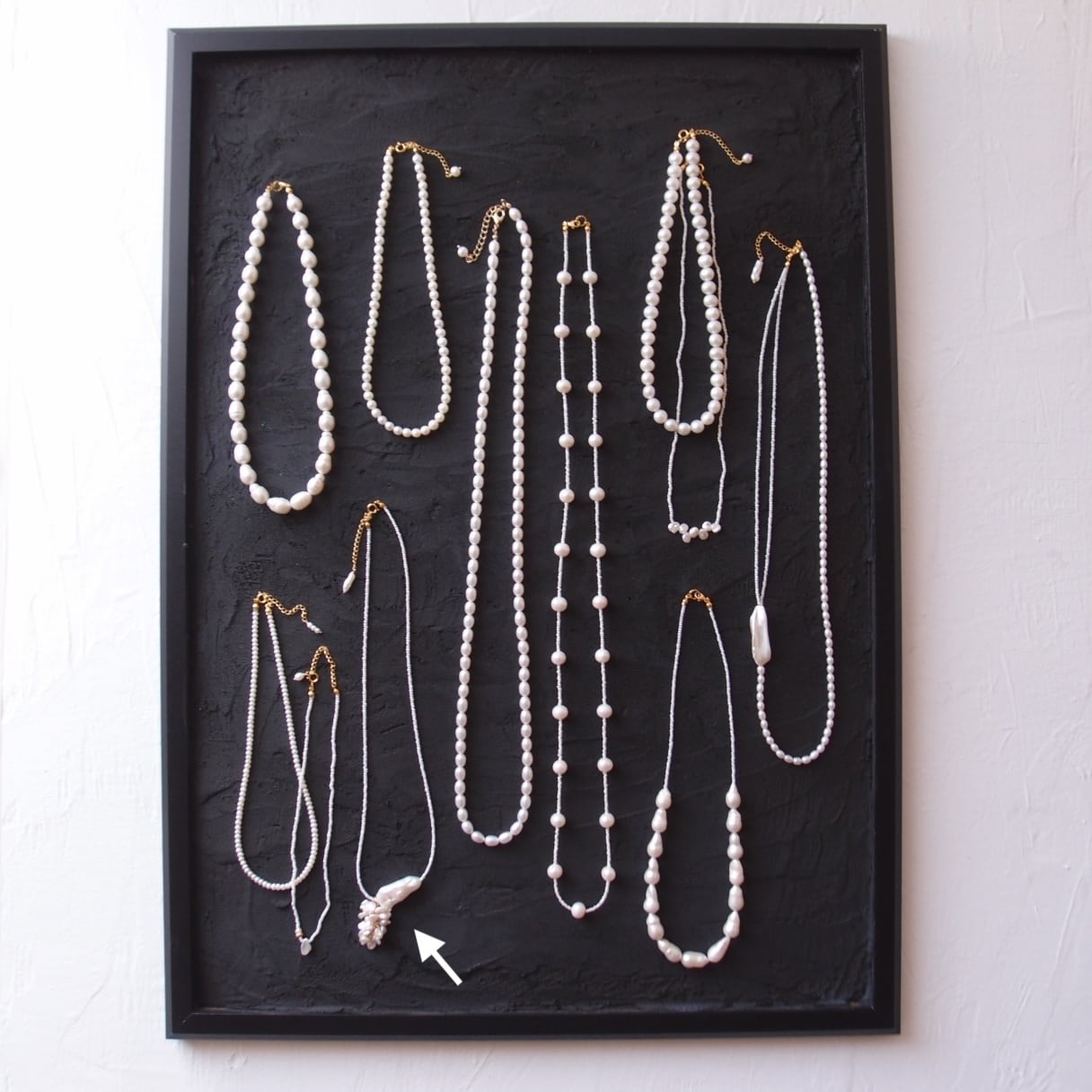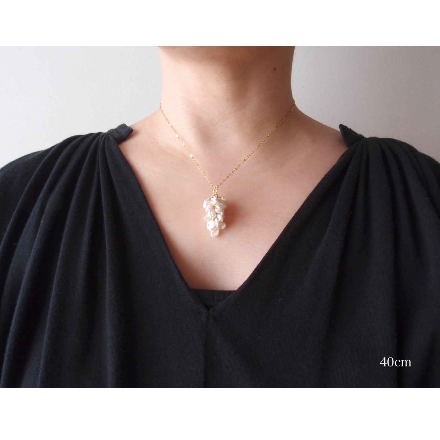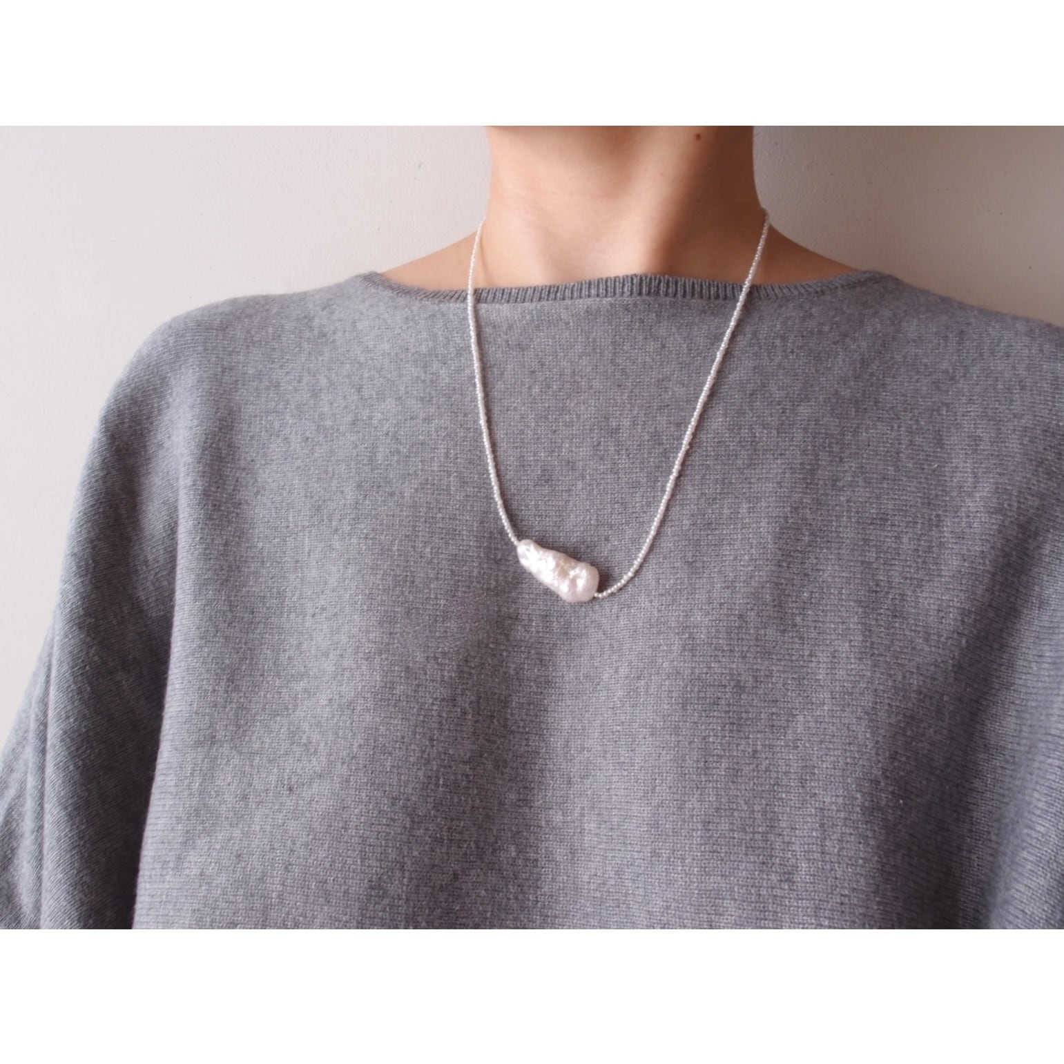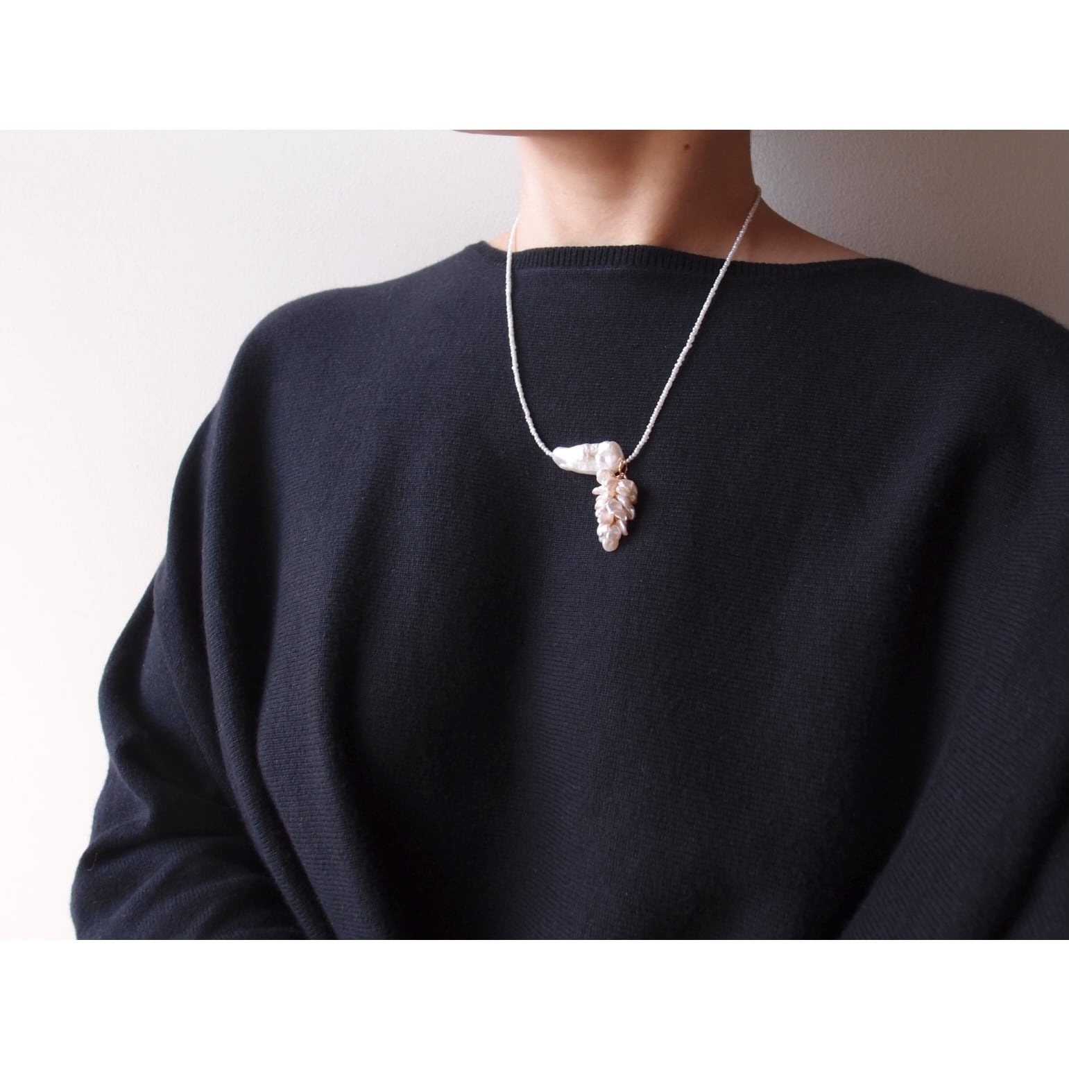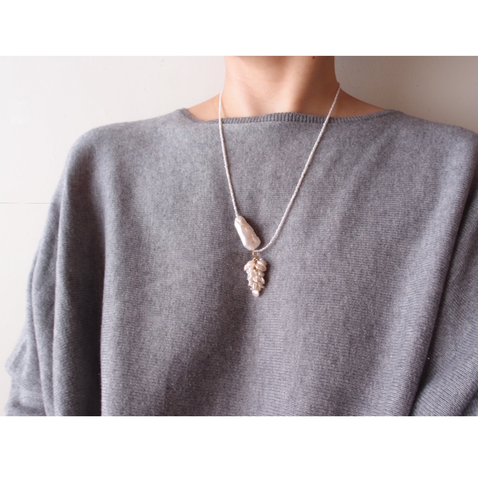 モダンな雰囲気の上質ビワパールでアクセントをつけた3wayネックレス。