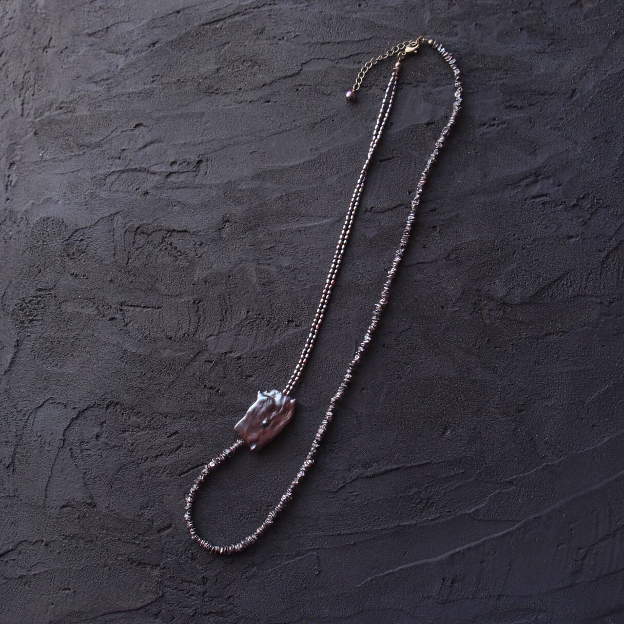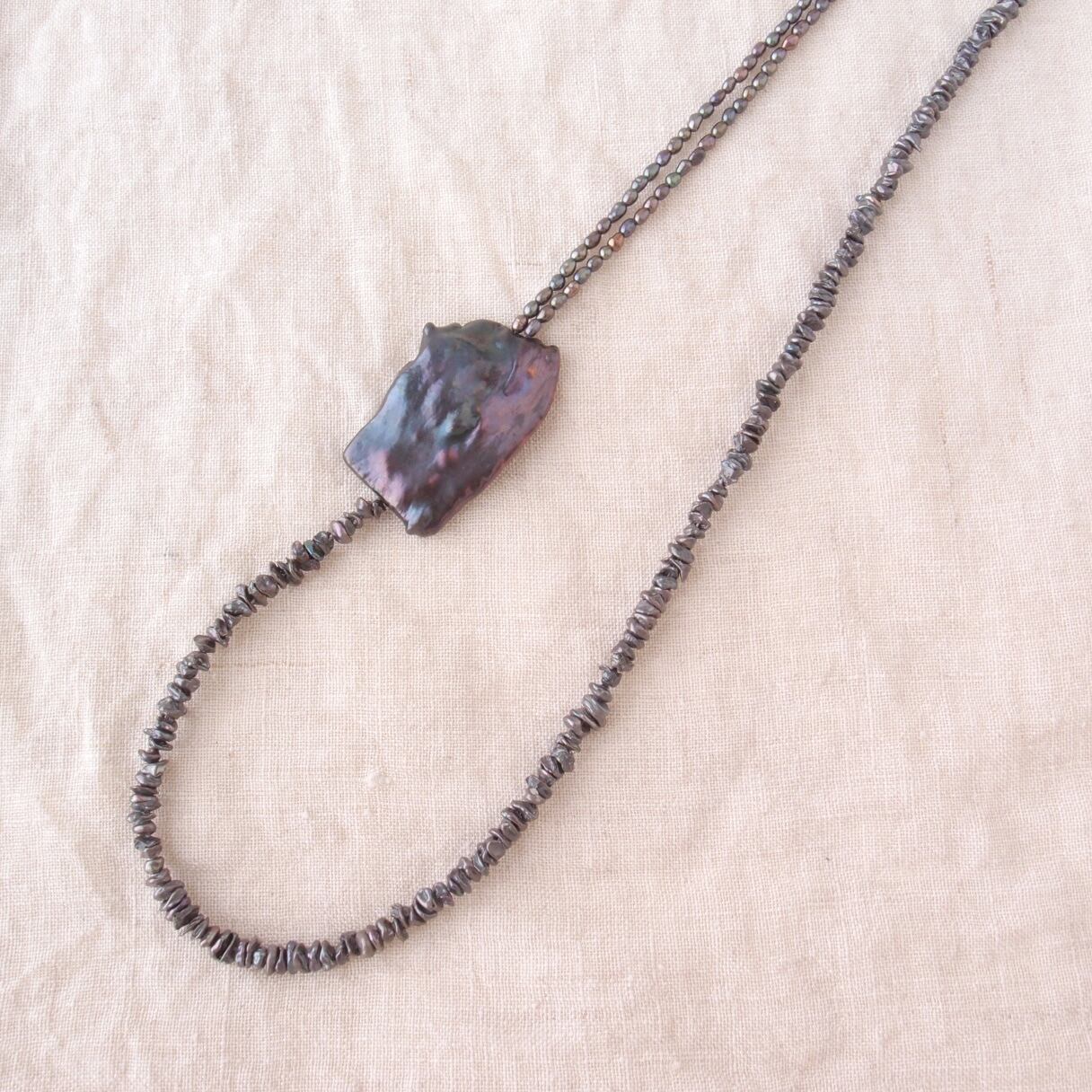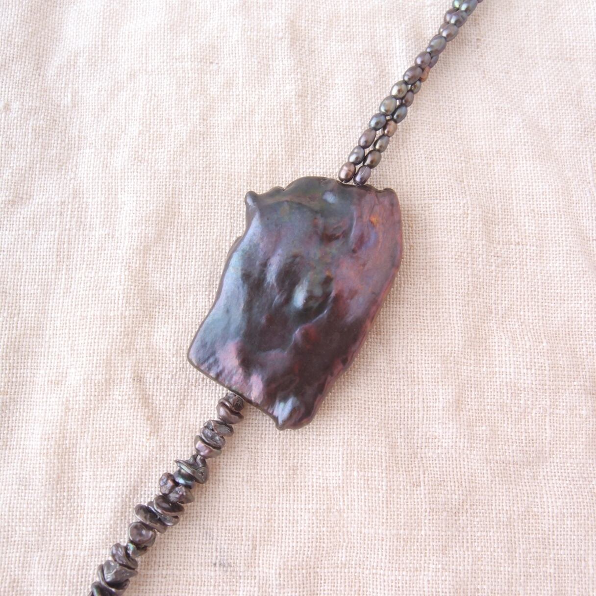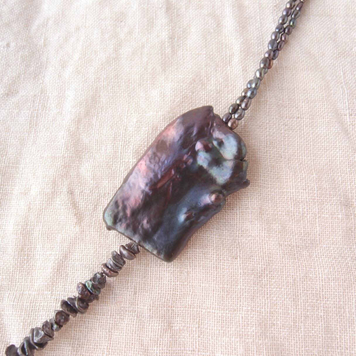 ブラックパールの非対称ネックレスです。