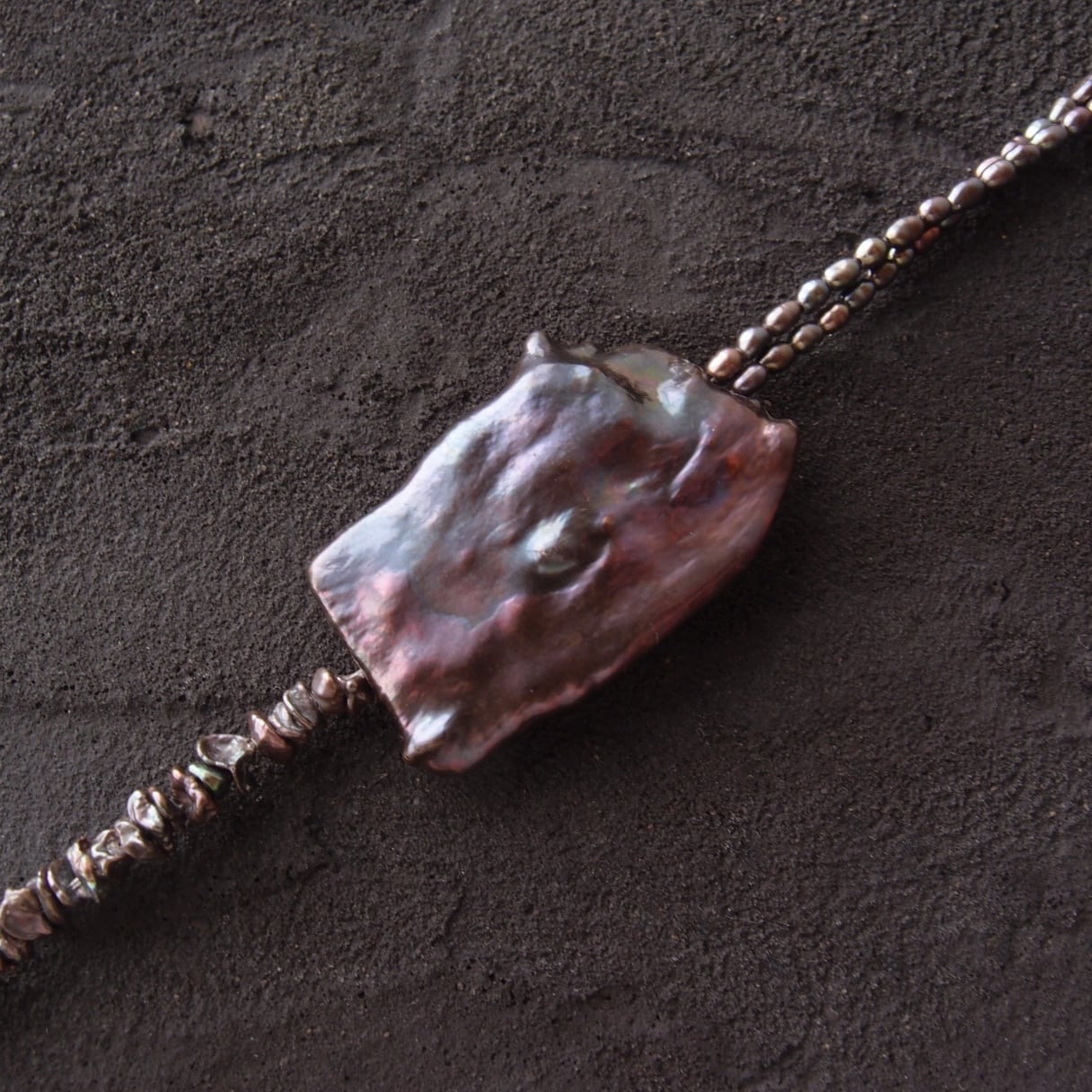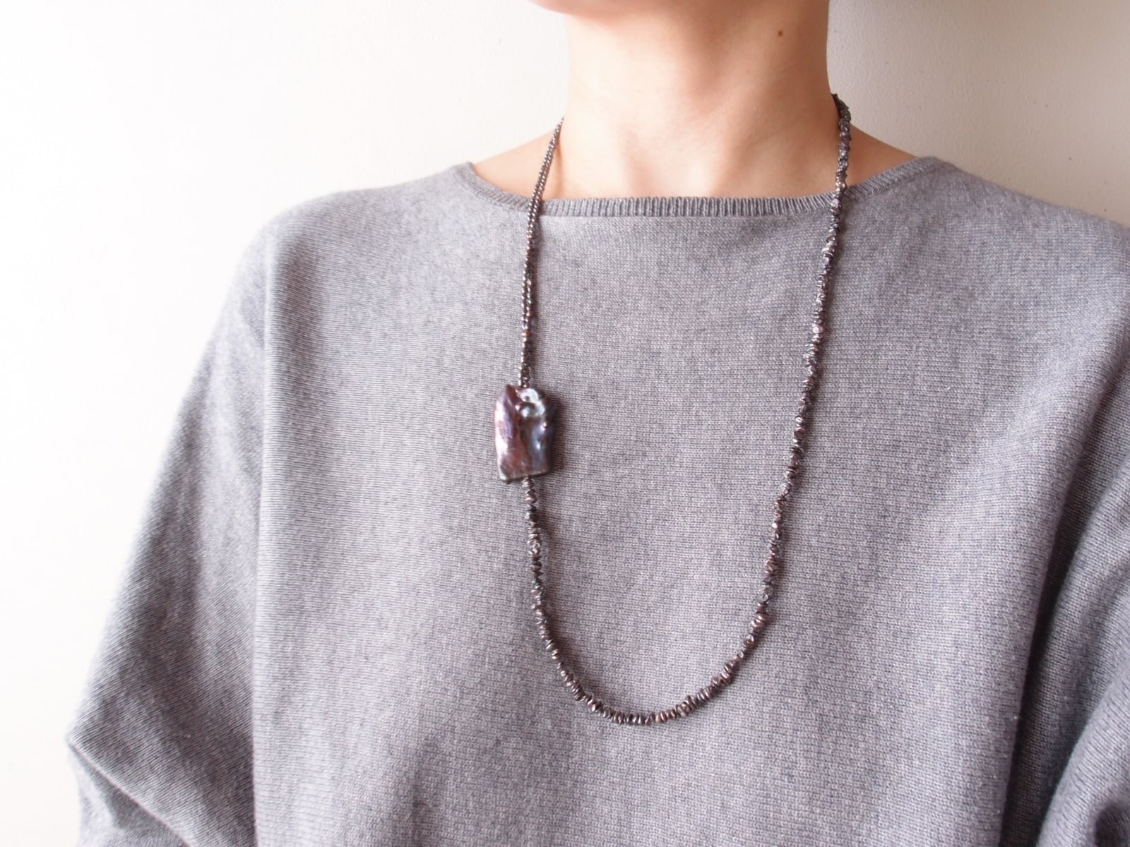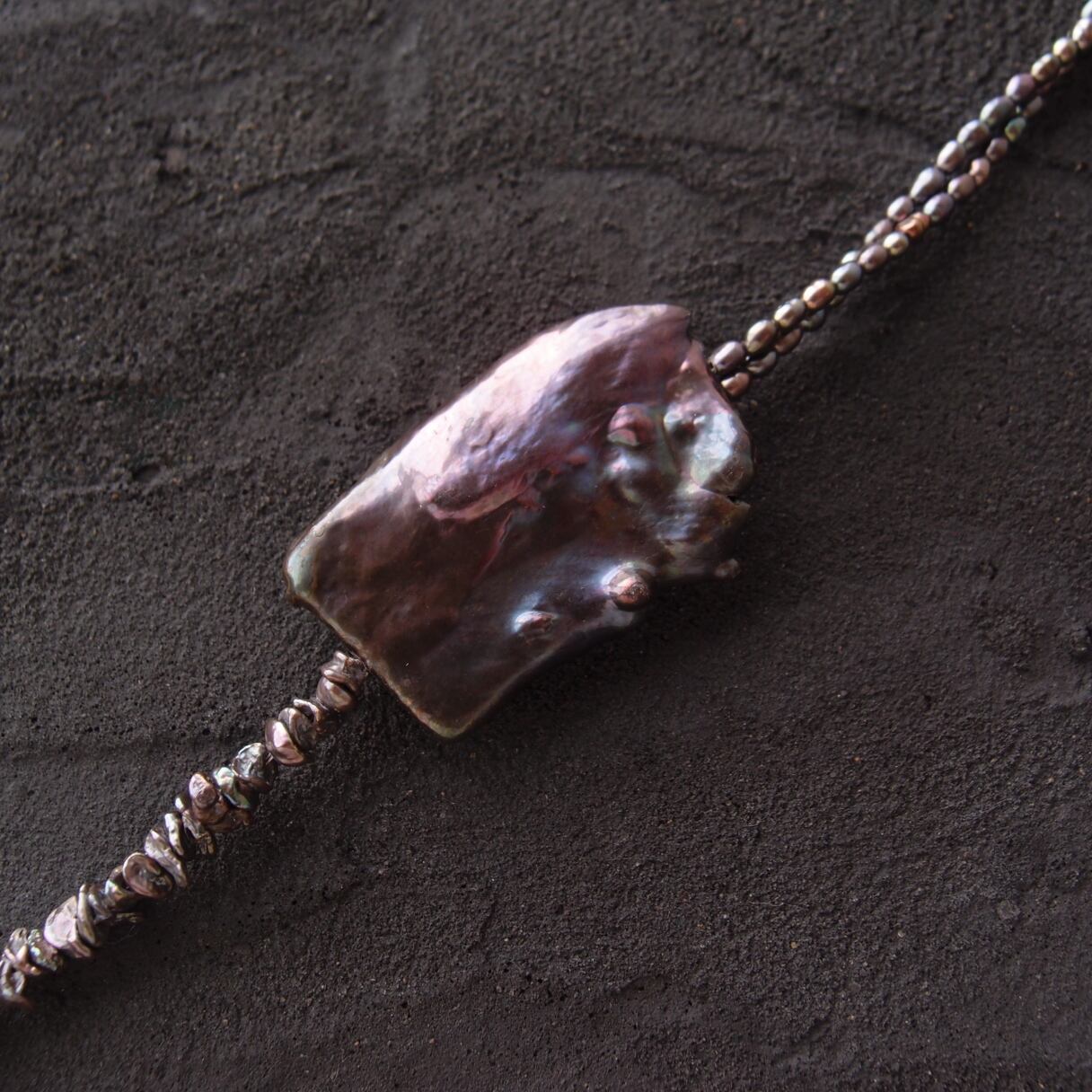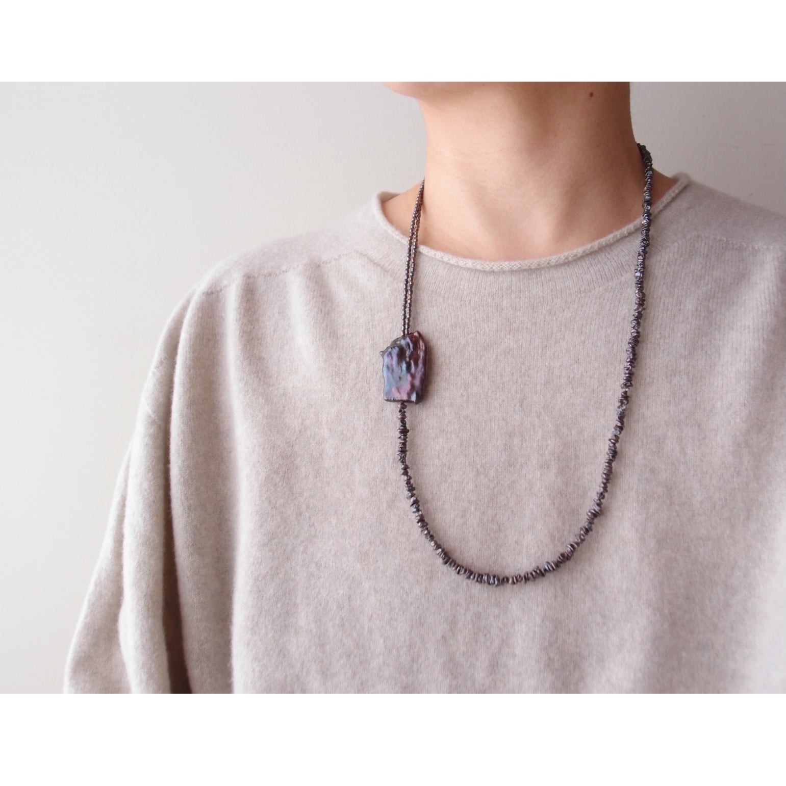 ブラックパールの非対称ネックレスです。