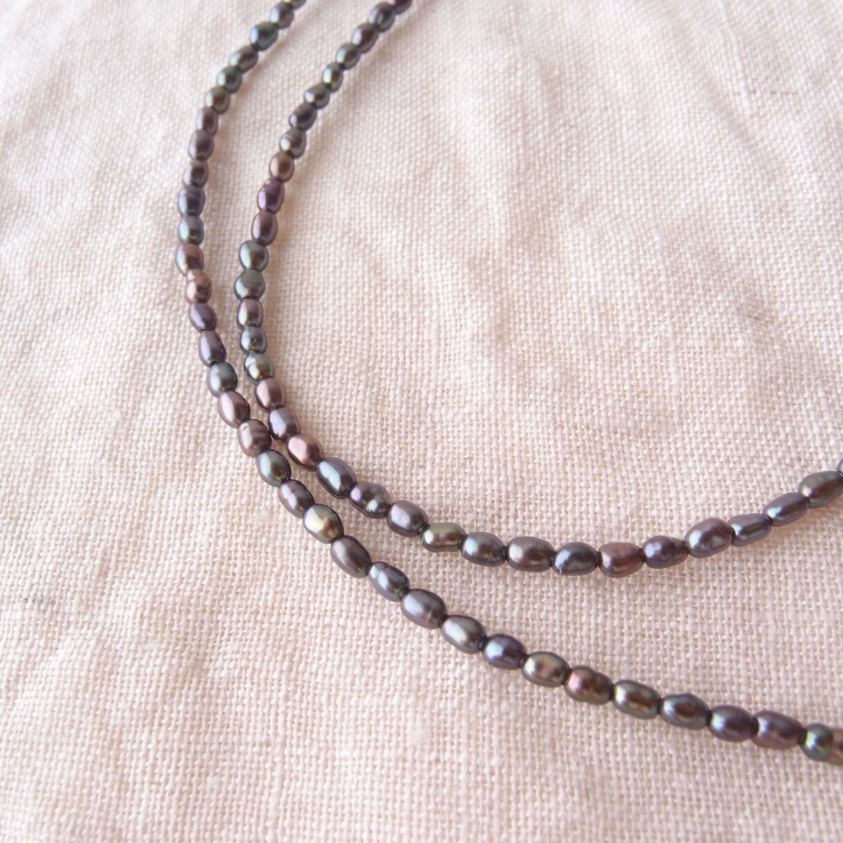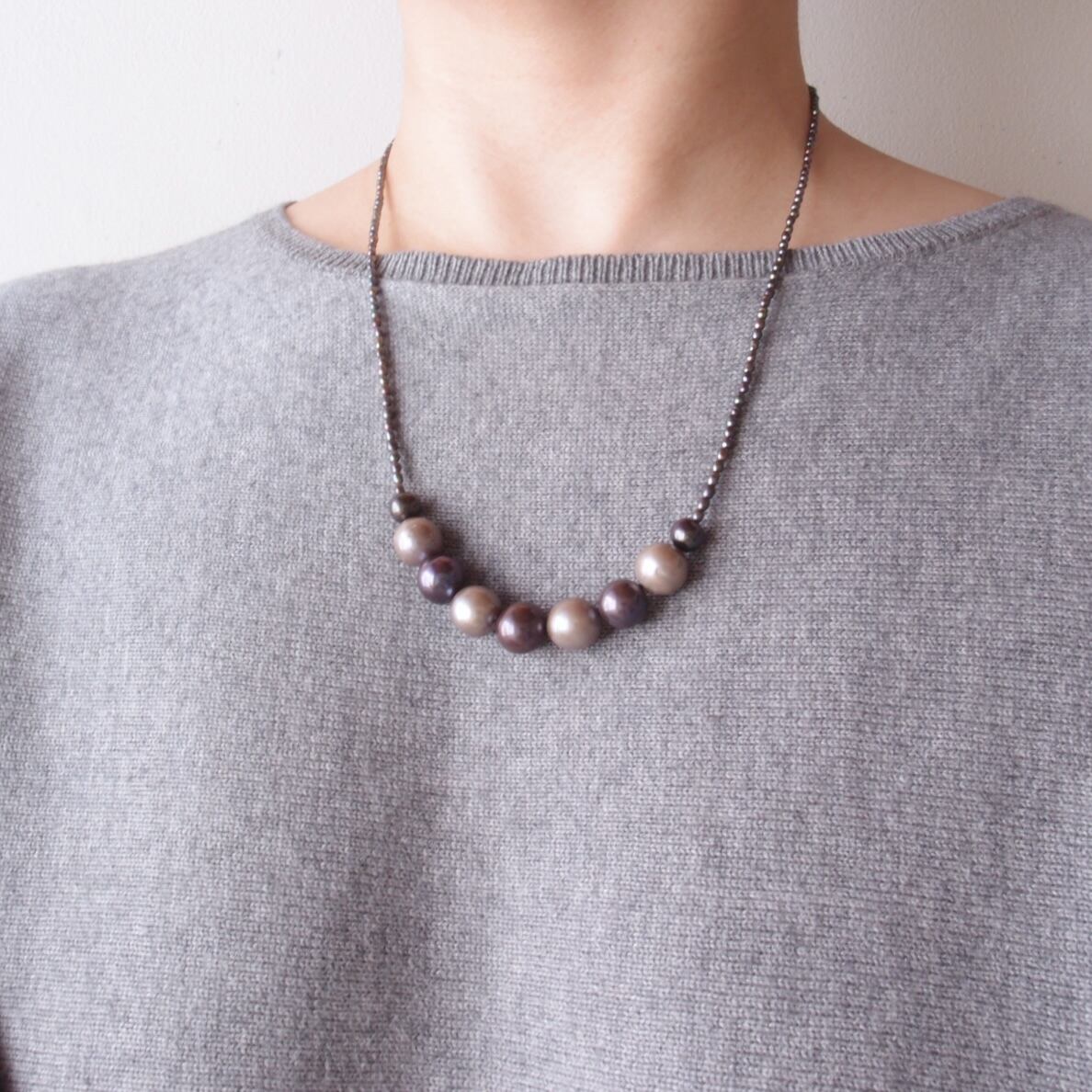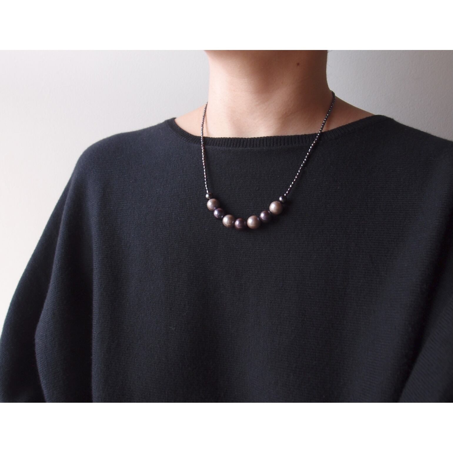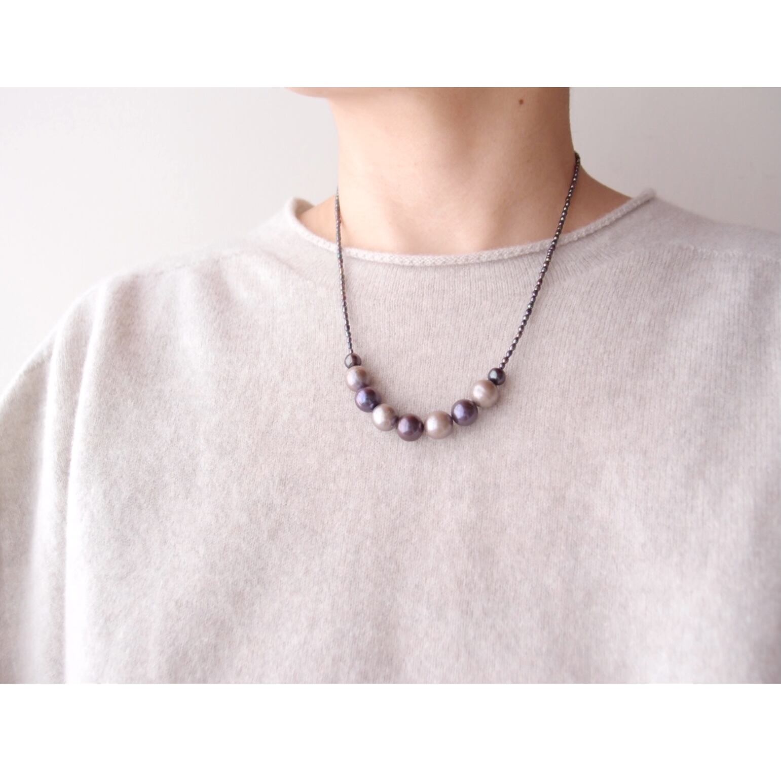 極小パールの繊細なラインに、グレージュとブラックの異なる表情をミックスした真珠のネックレス。