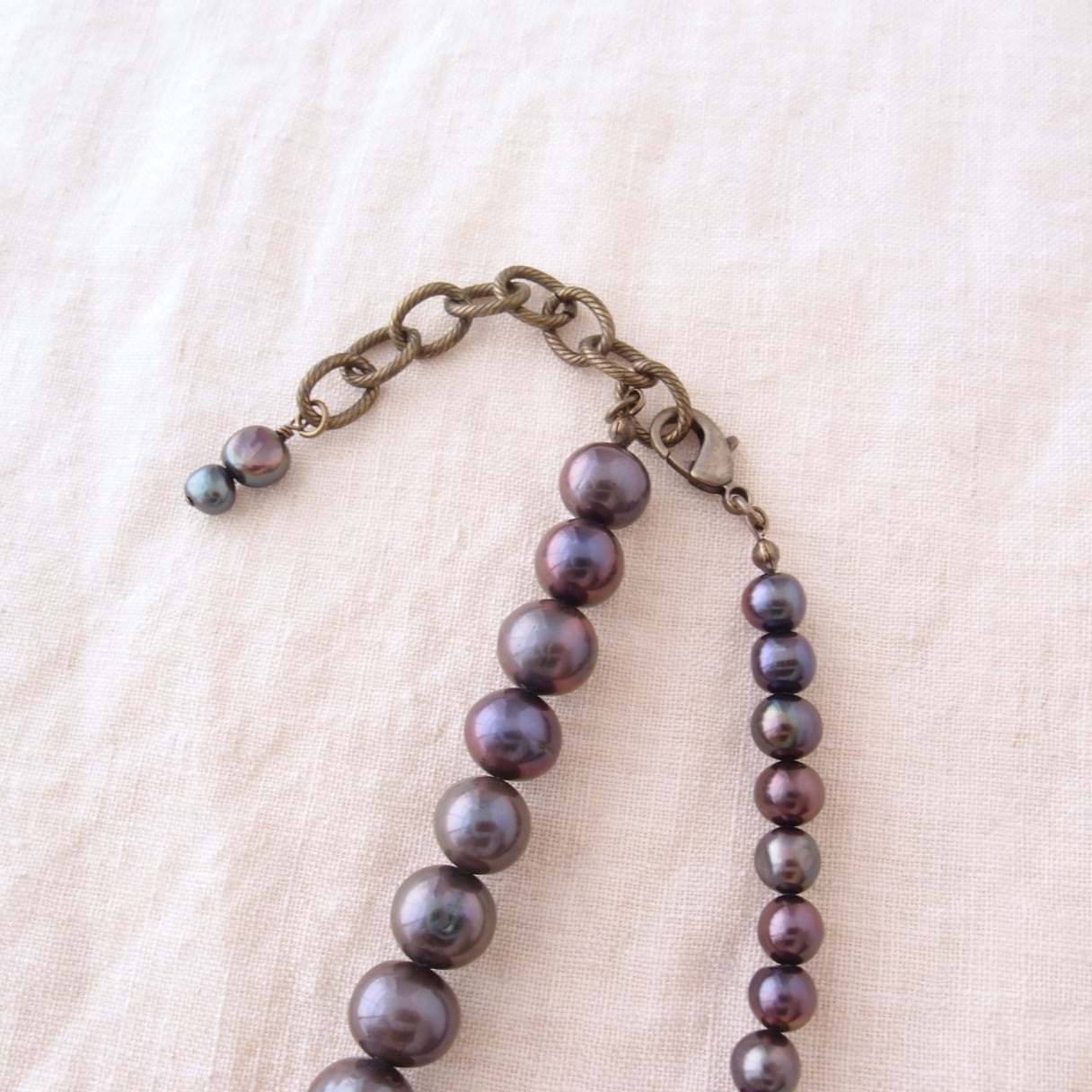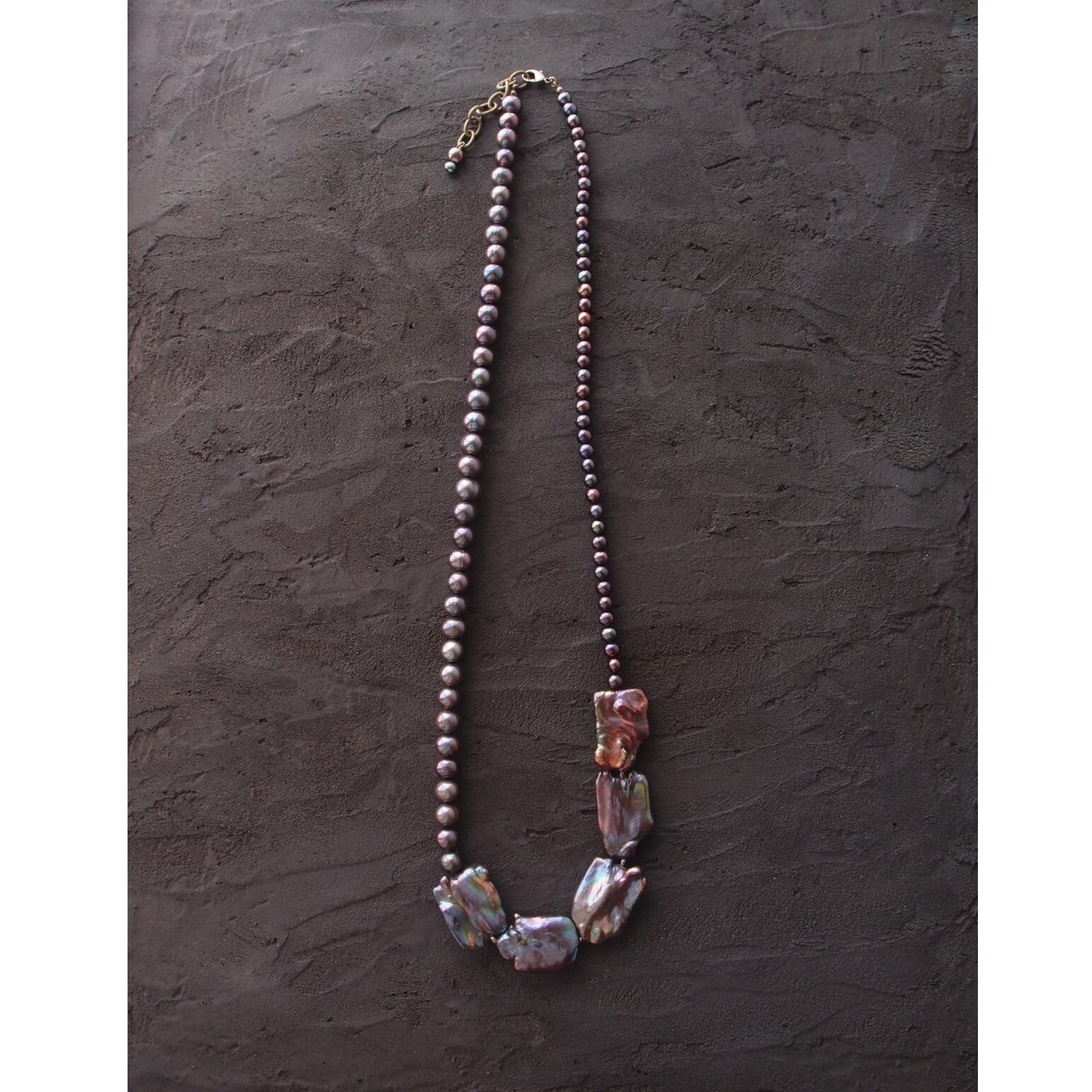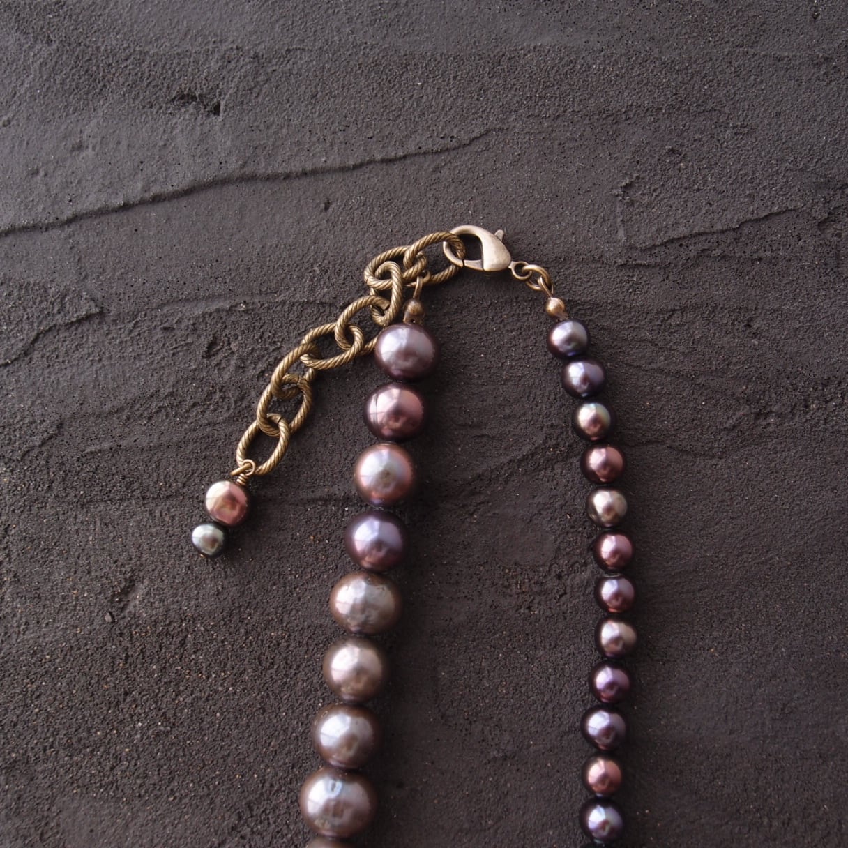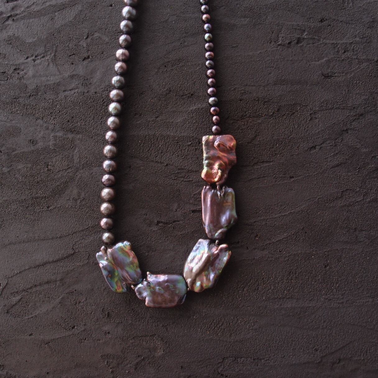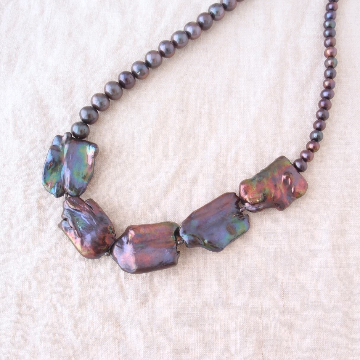 神秘的な輝きを纏う、ブラックバロックパールのロングネックレス。
