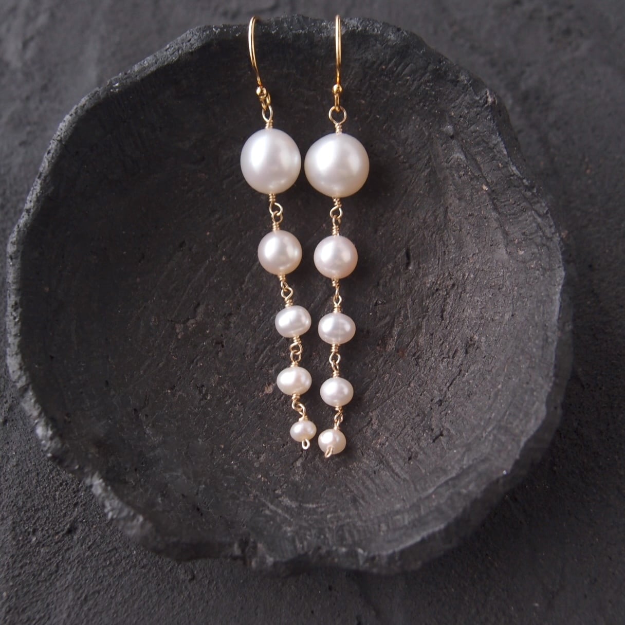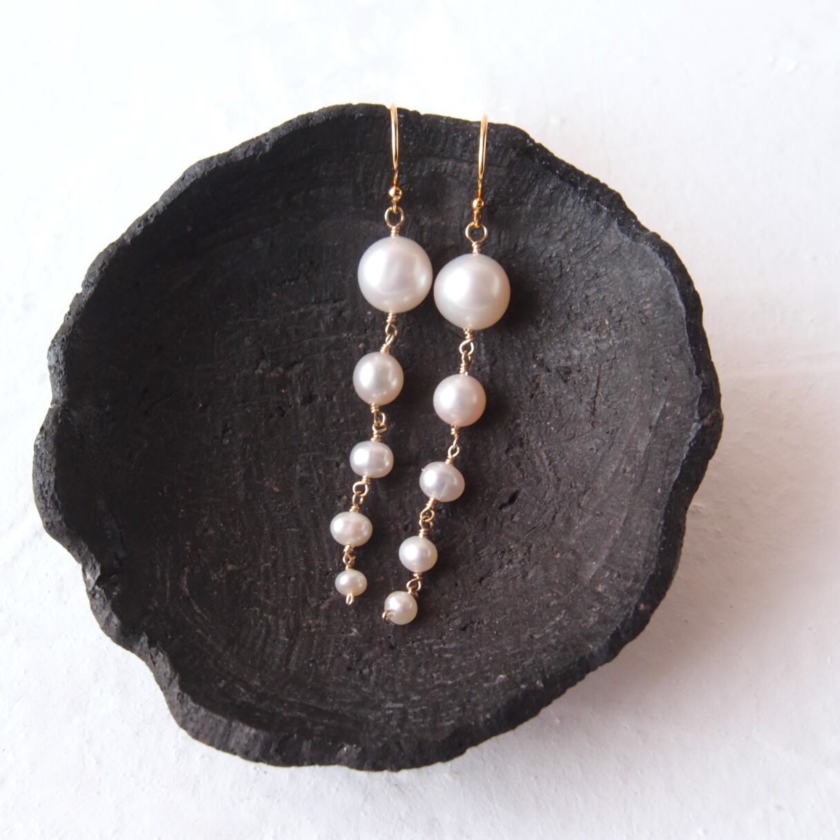 【K14gf】Graduated Pearl Earrings/グラデーションパールピアス
