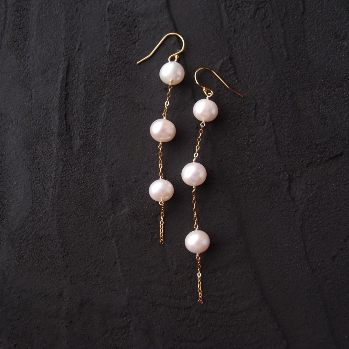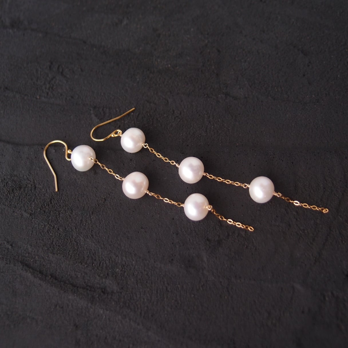 上質なポテトパールを贅沢に使用した、揺れ感の美しいロングピアス。