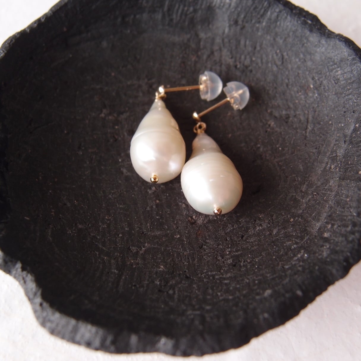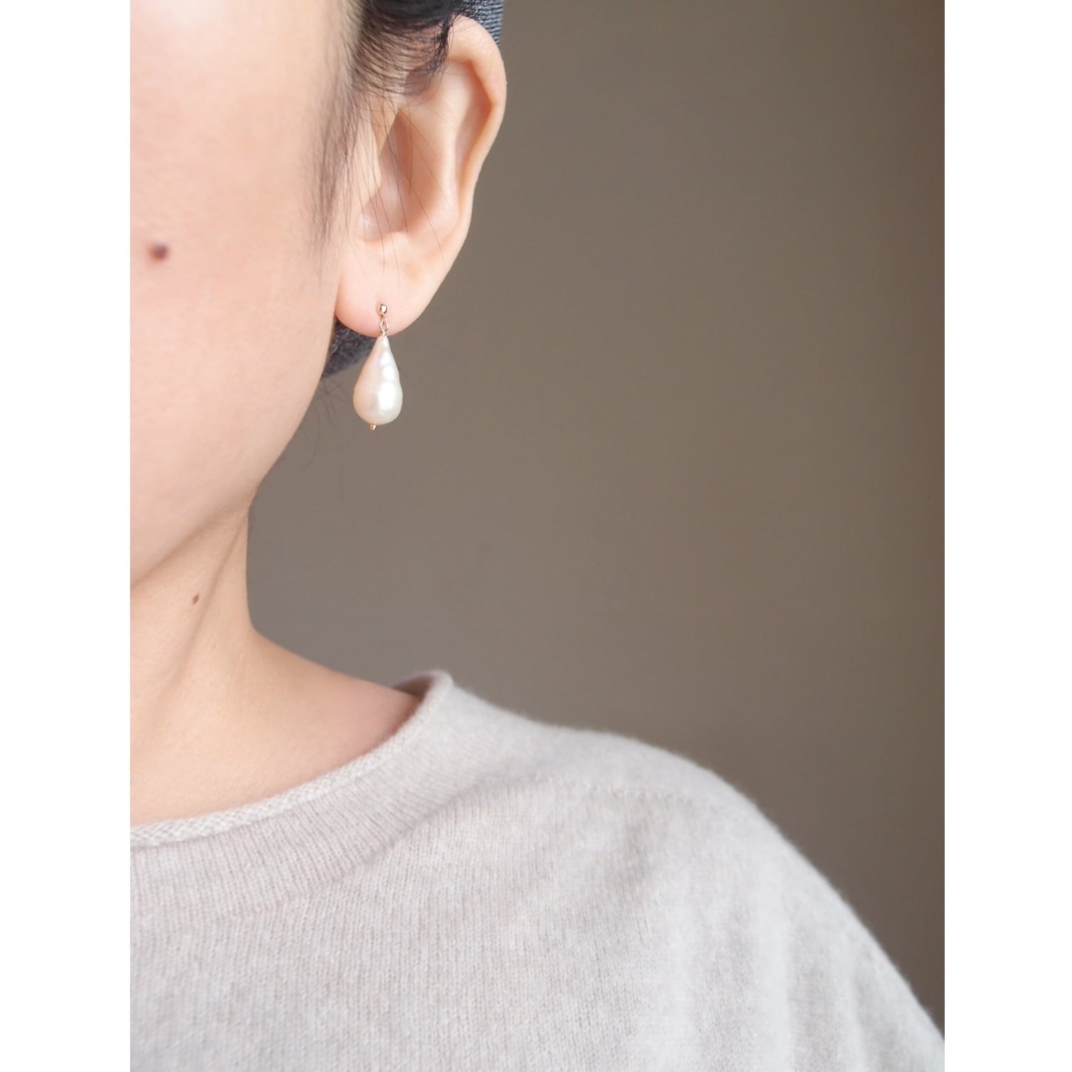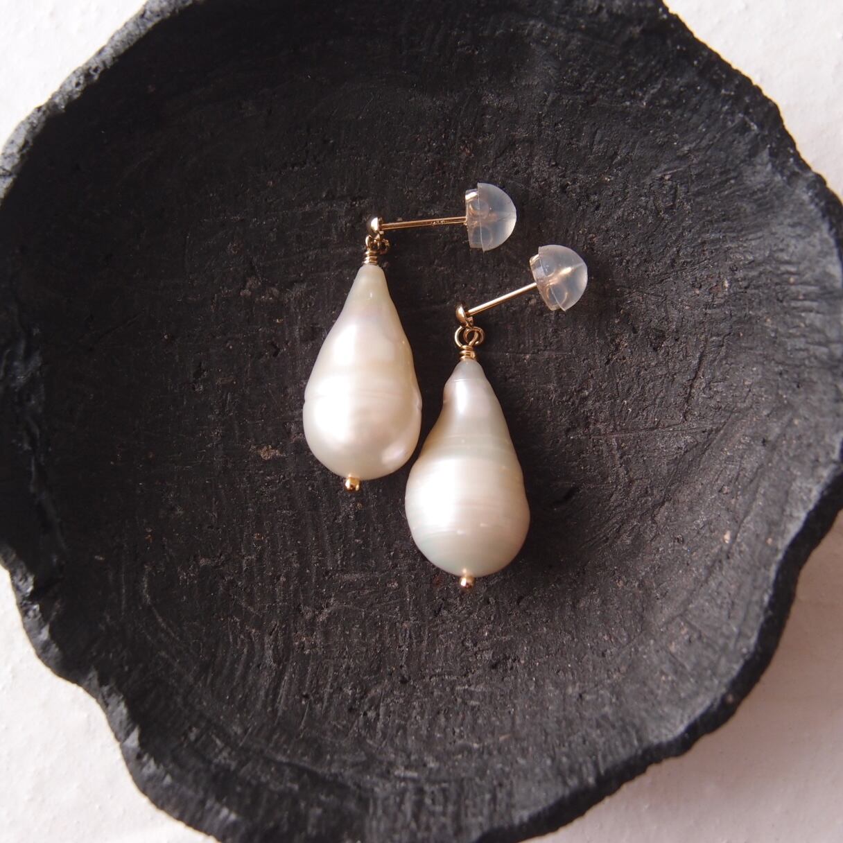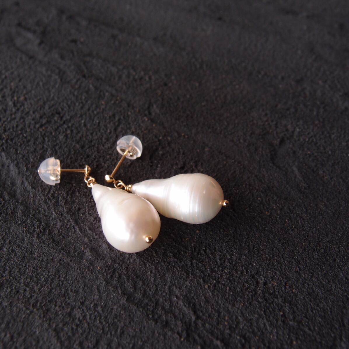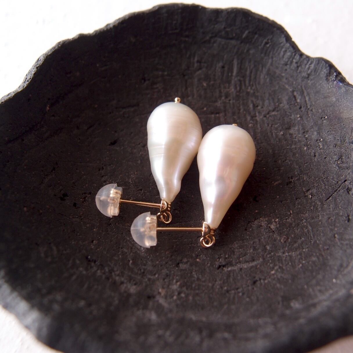 左右の形状が調和する美しい雫型の粒を厳選したワンペアです。