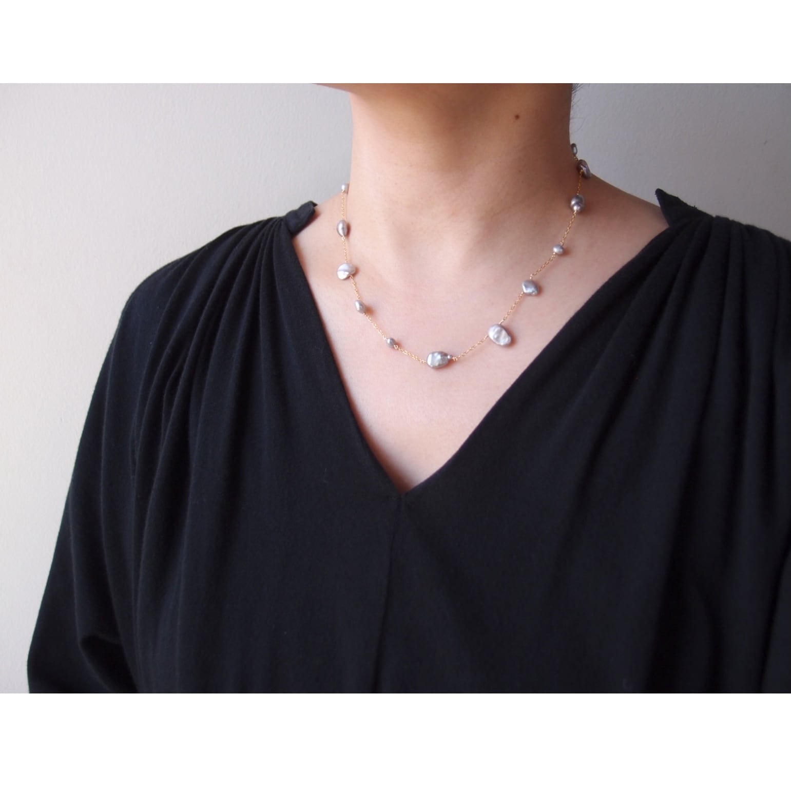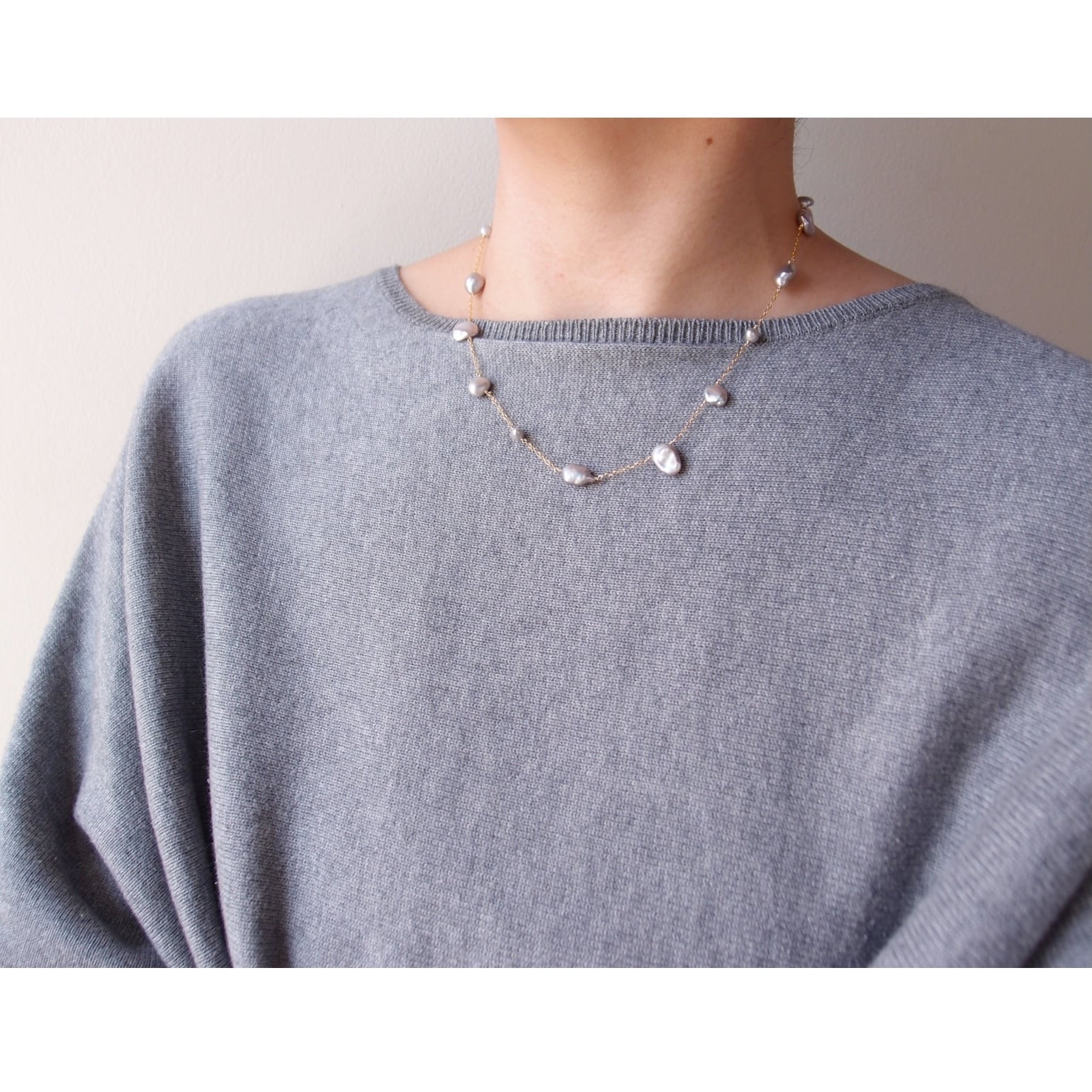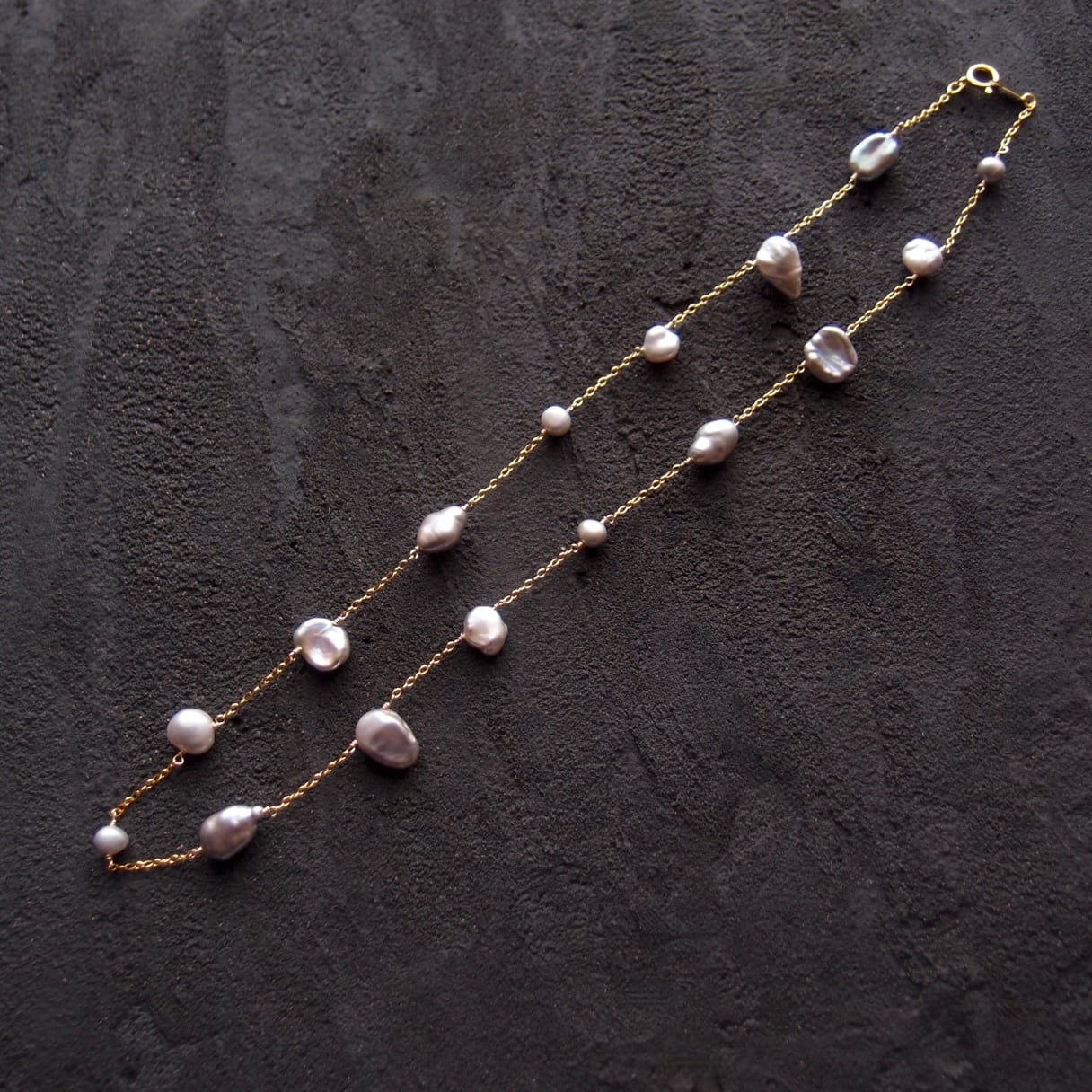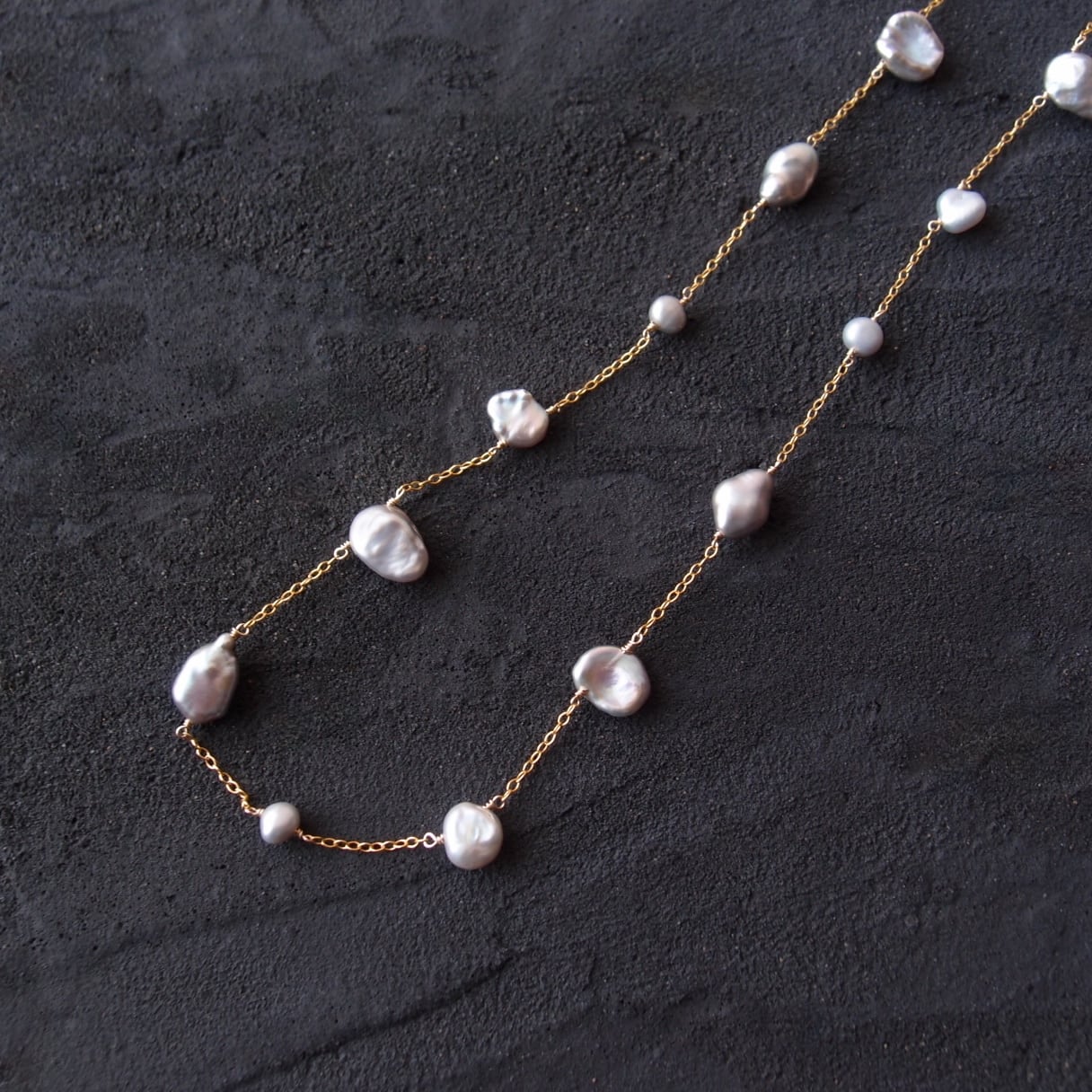 【K14gf】Mixed Shape Pearl Station Necklace/パールミックス ステーションネックレス(Gray)
