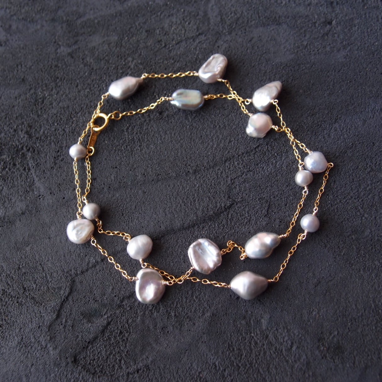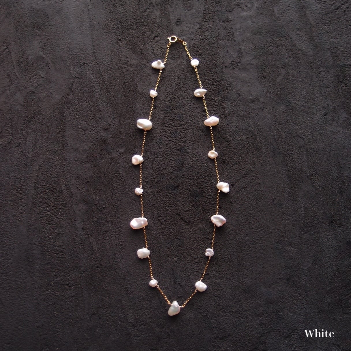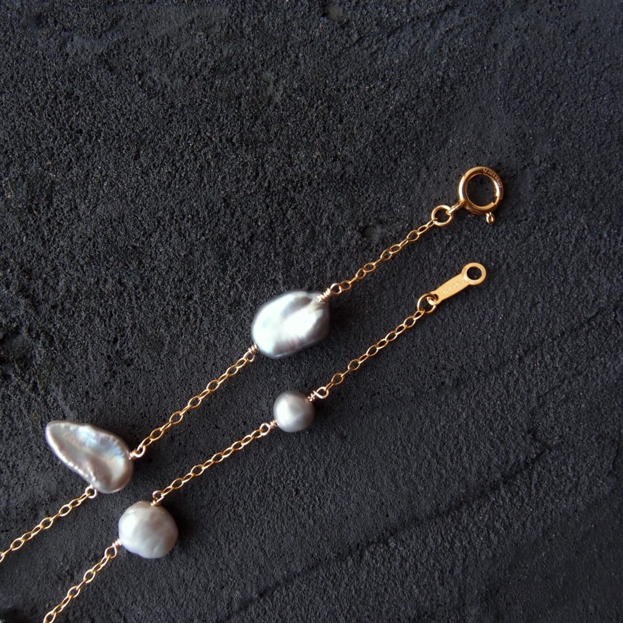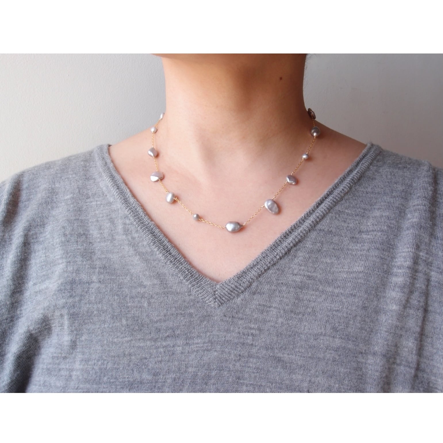 【K14gf】Mixed Shape Pearl Station Necklace/パールミックス ステーションネックレス(Gray)