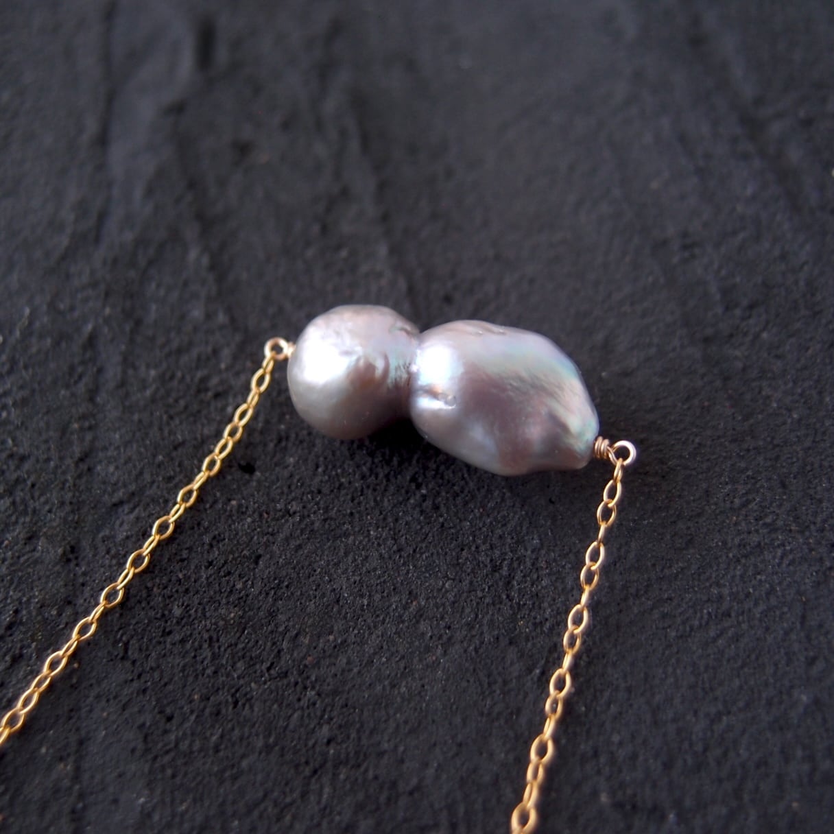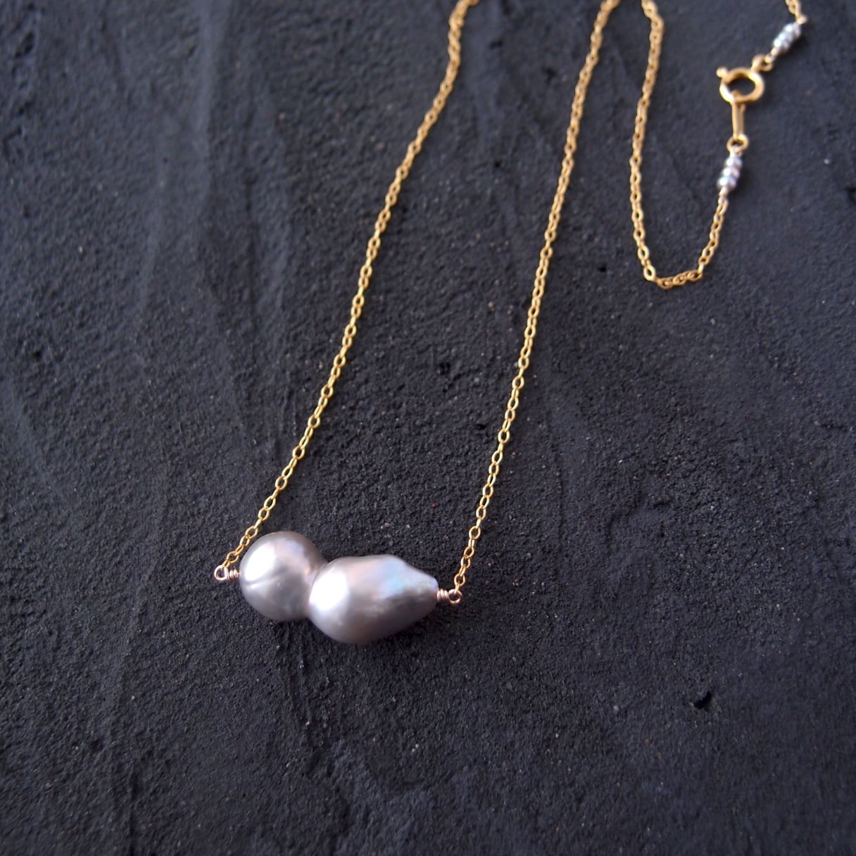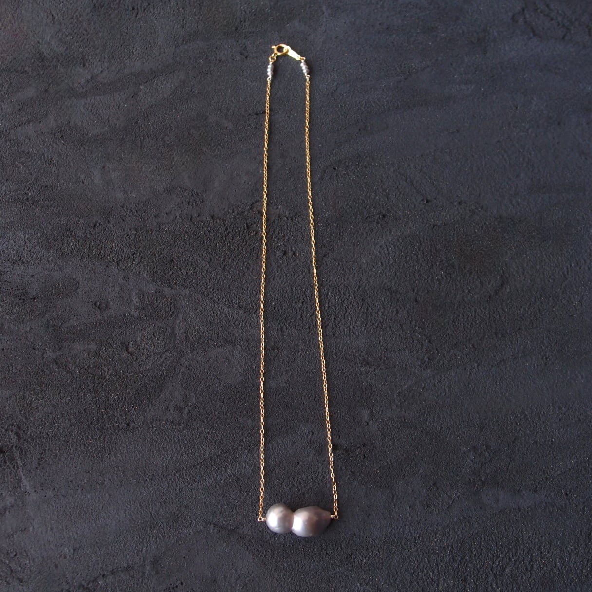 【K14gf】Twin Pearl Necklace/オイスターツインパール ネックレス(Gray)