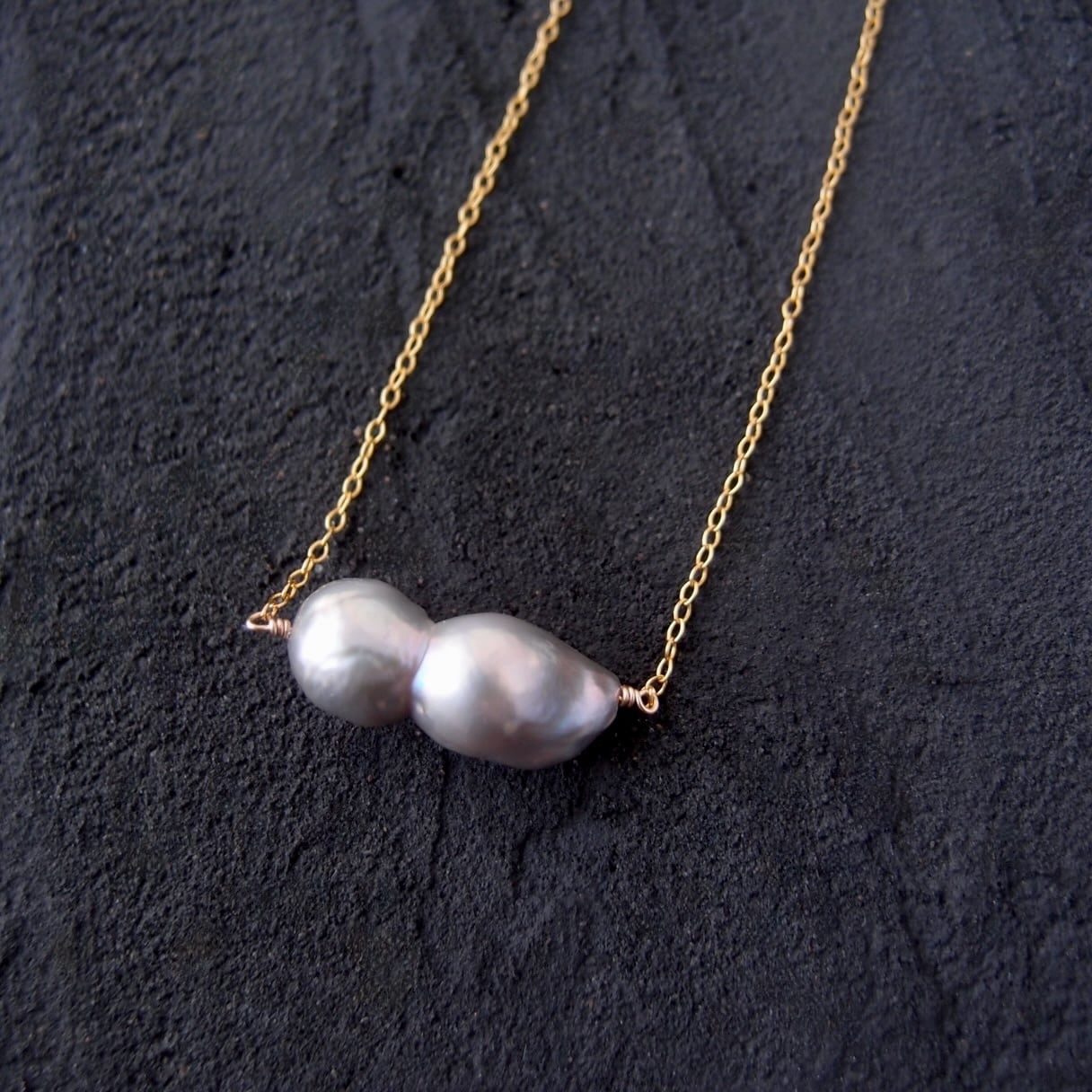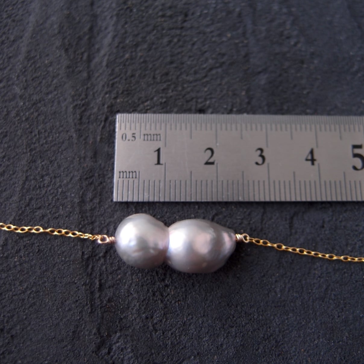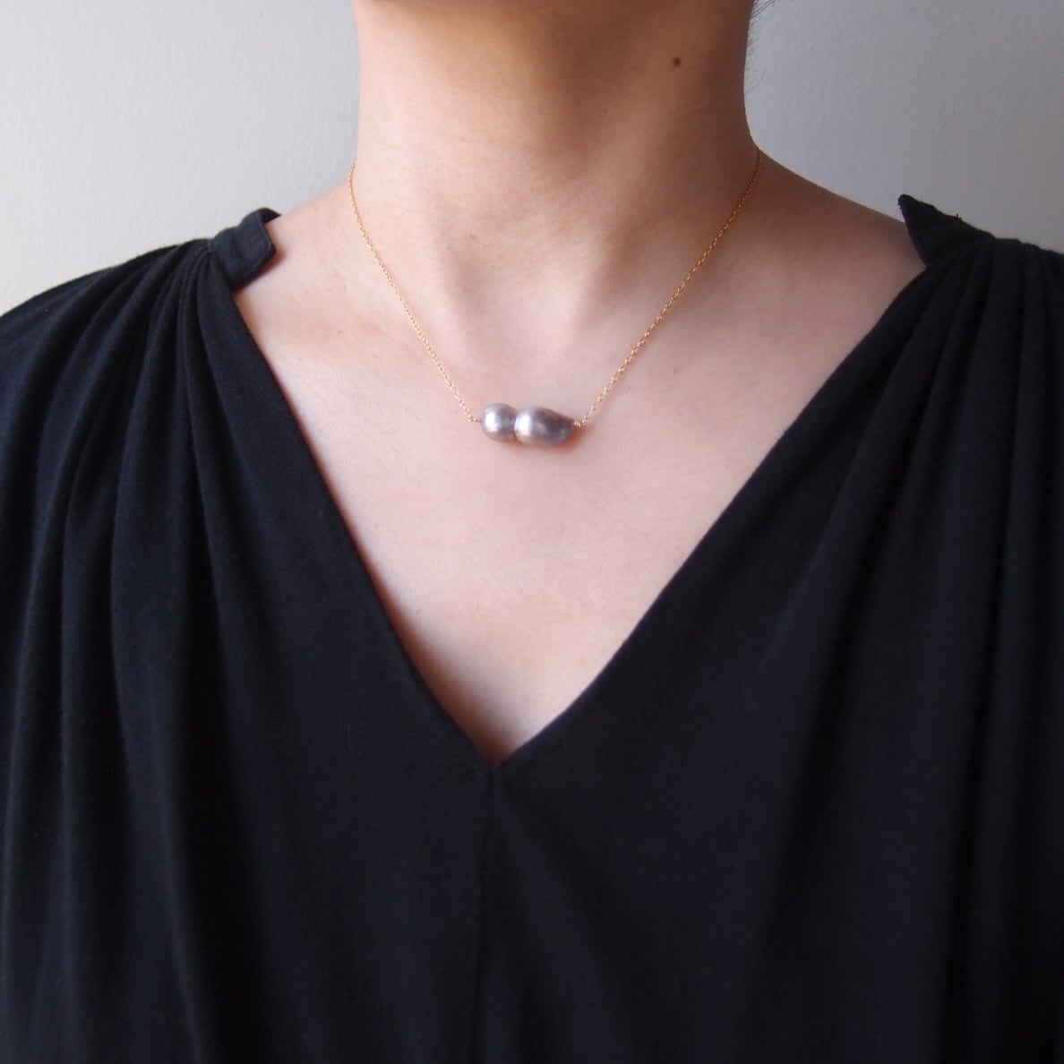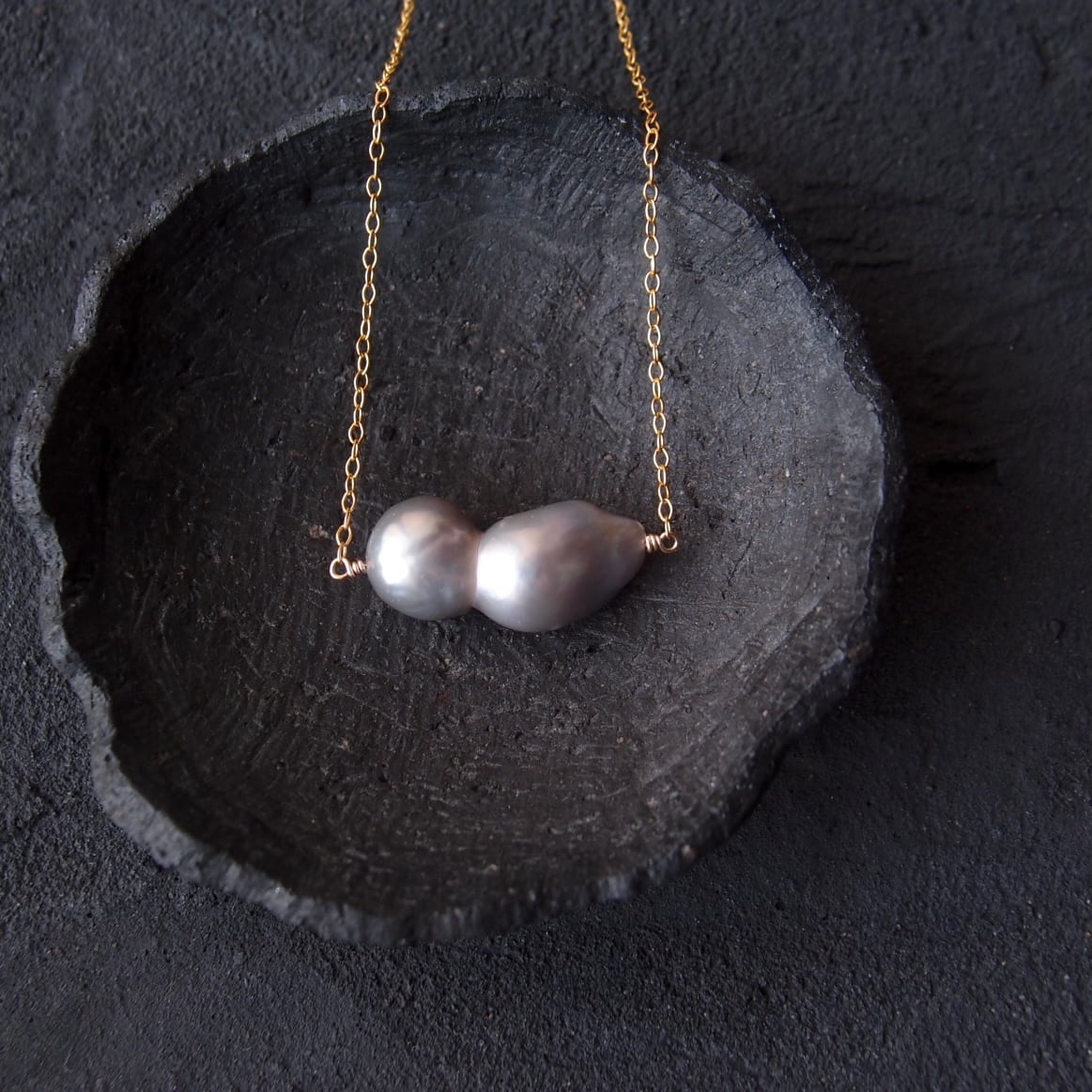 【K14gf】Twin Pearl Necklace/オイスターツインパール ネックレス(Gray)