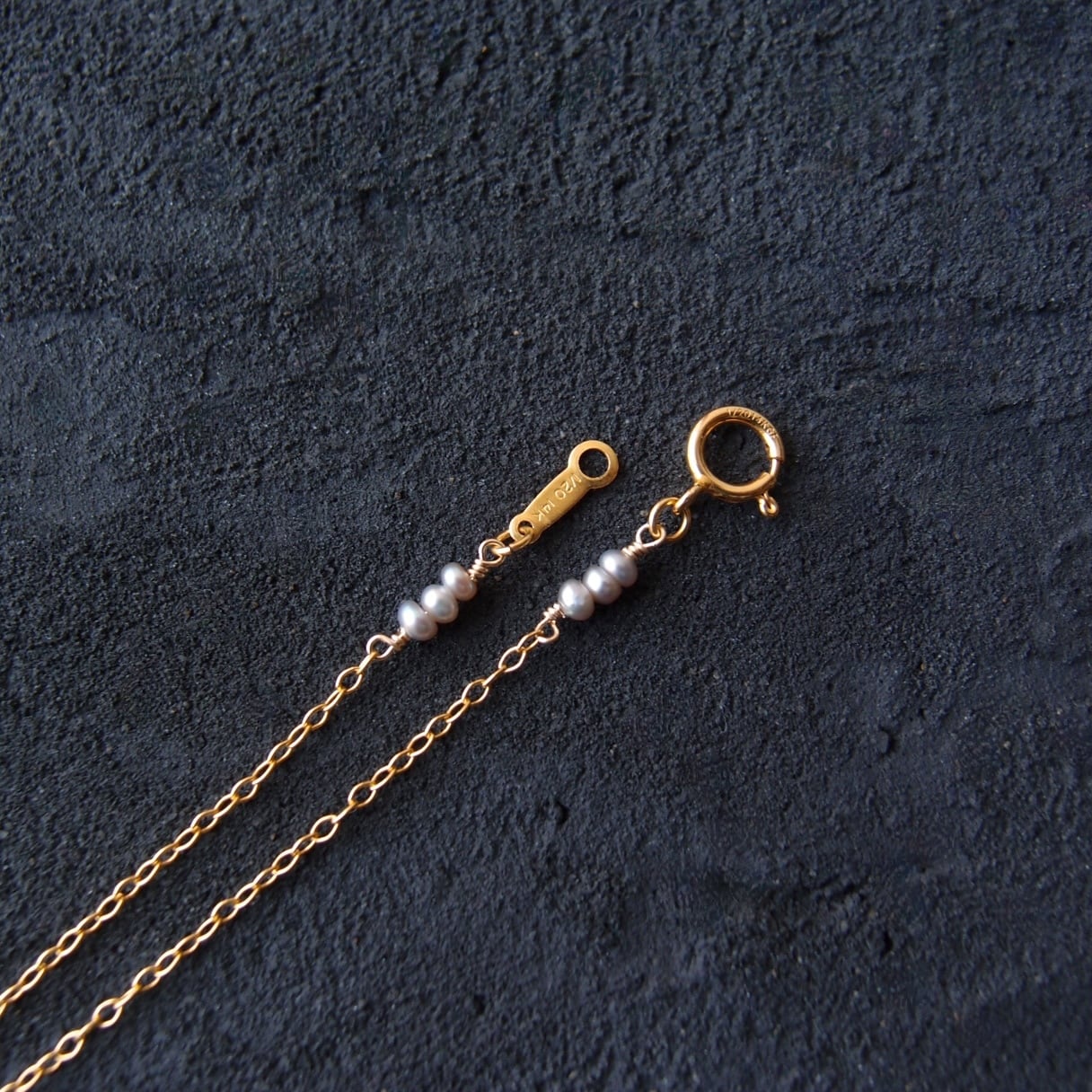 華奢で上質なK14gfチェーンが、肌に溶け込むような細いラインを描き、主役のパールをより美しく際立たせます。