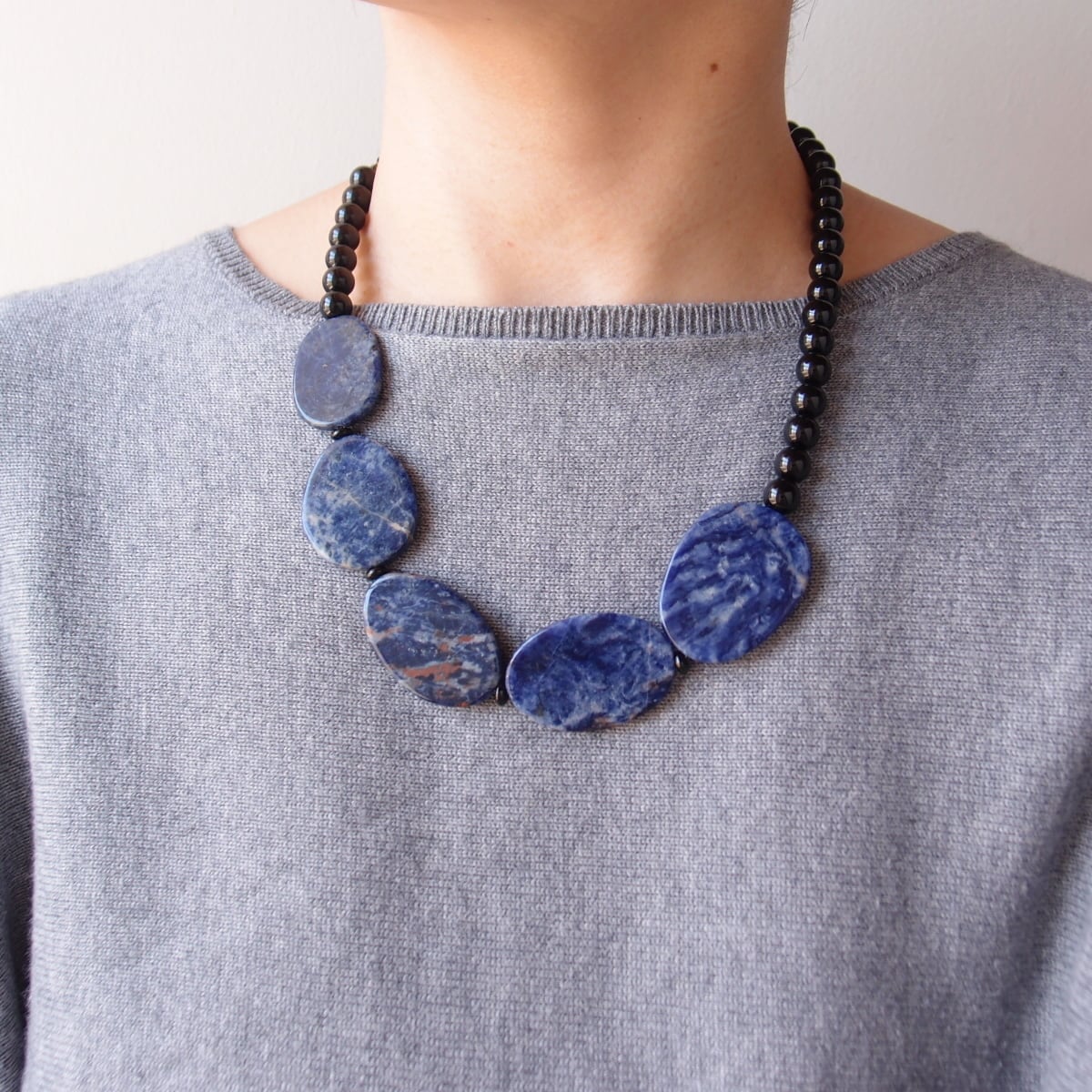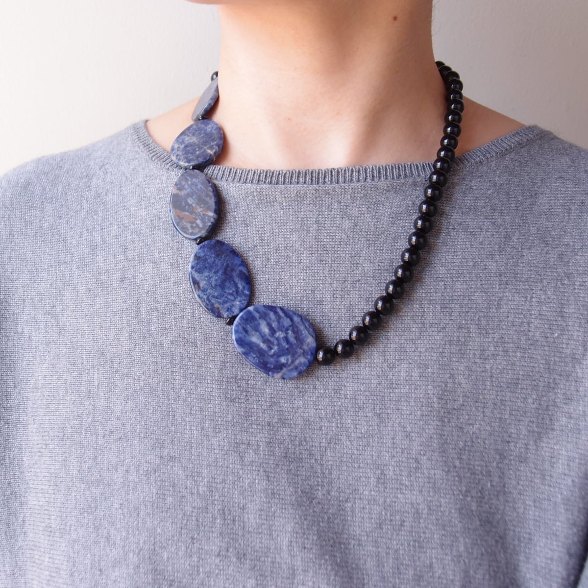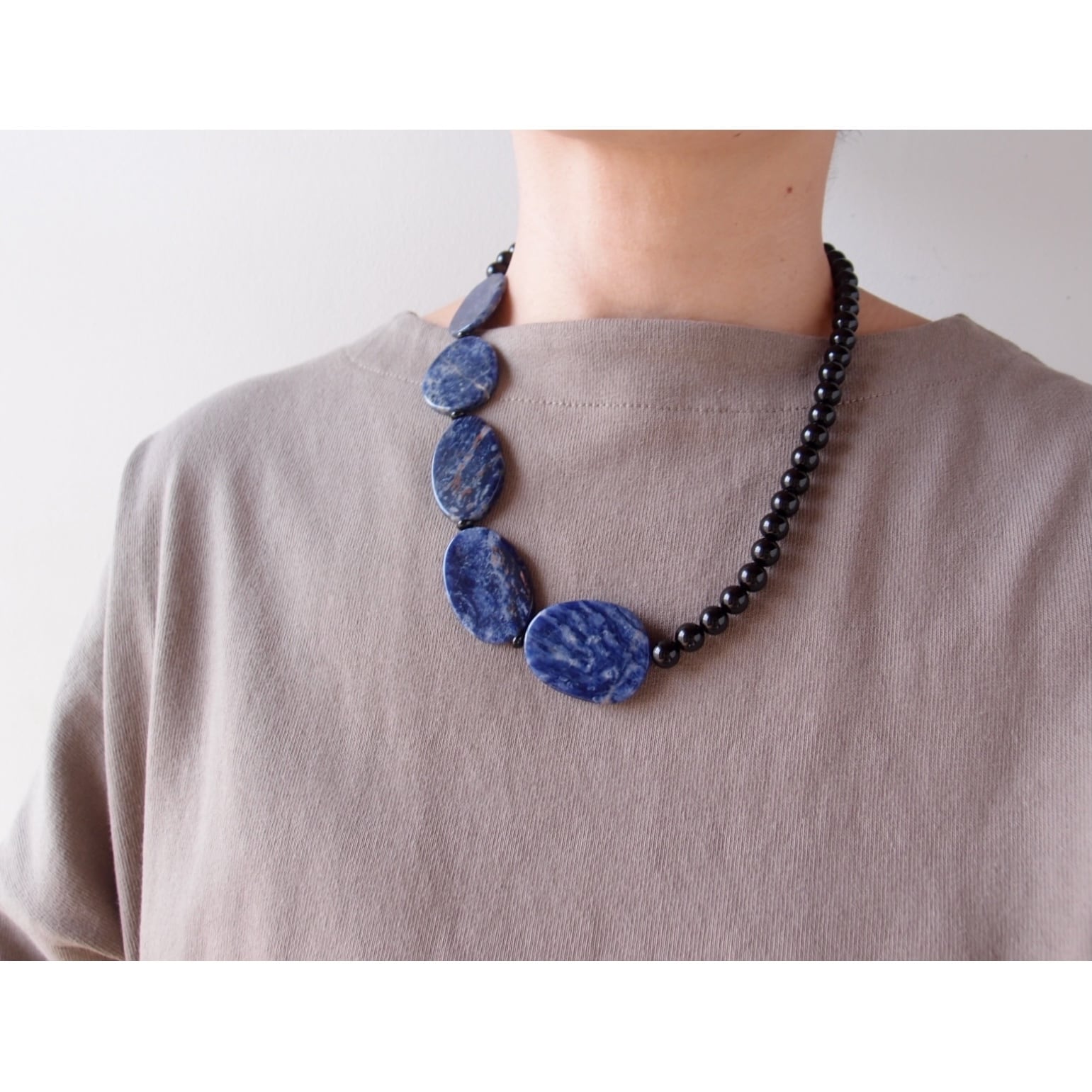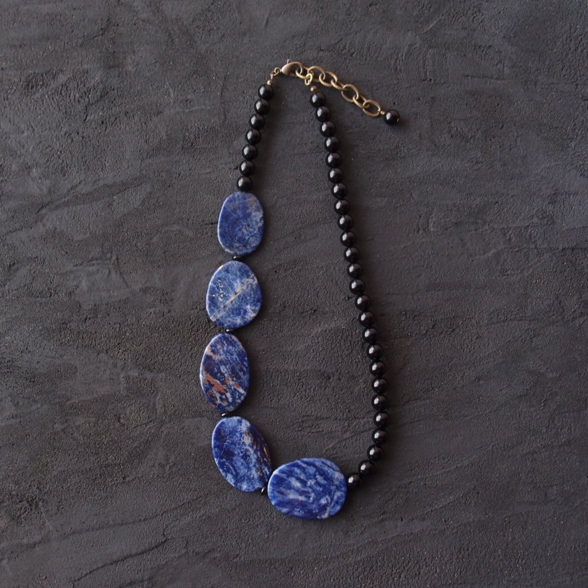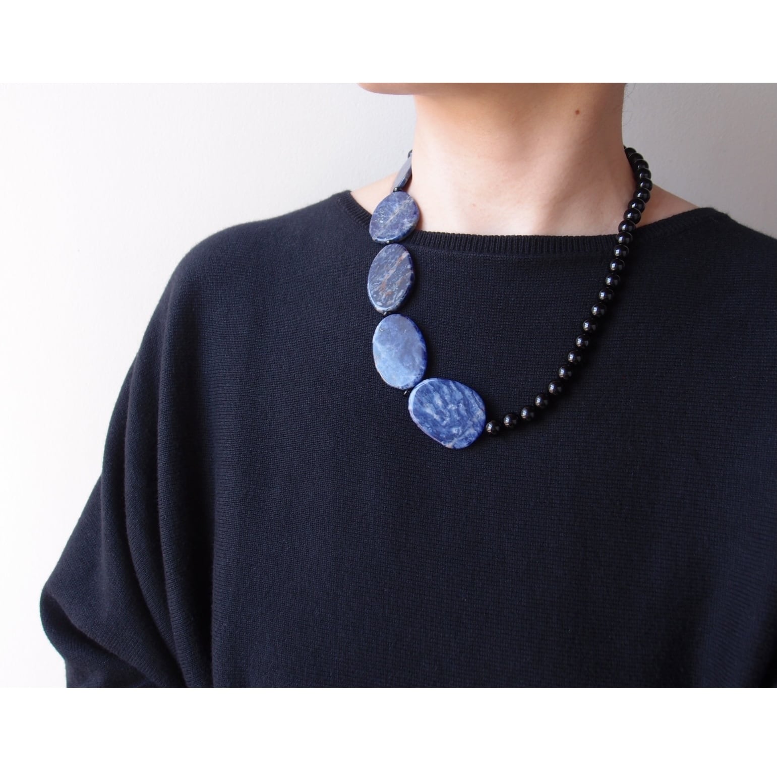 Sodalite × Black Onyx Asymmetry Necklace/ソーダライト×ブラックオニキス 非対称ネックレス