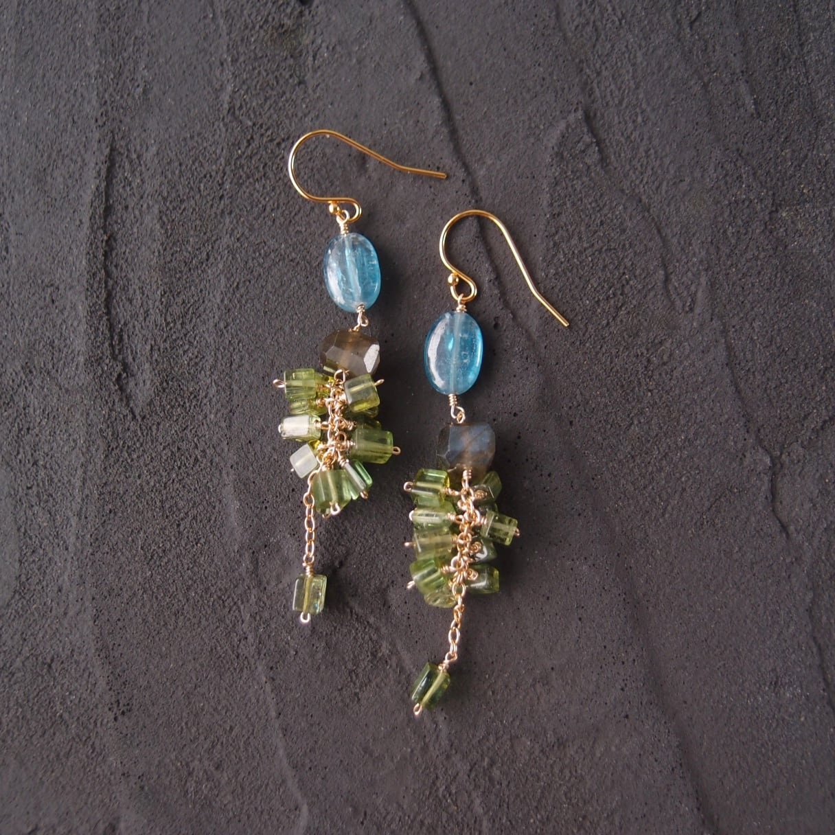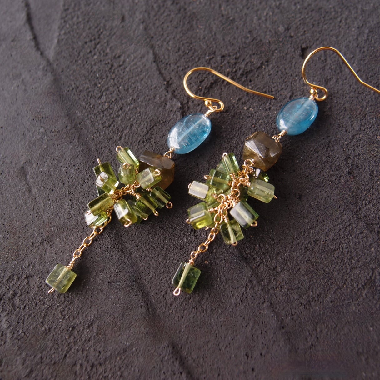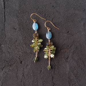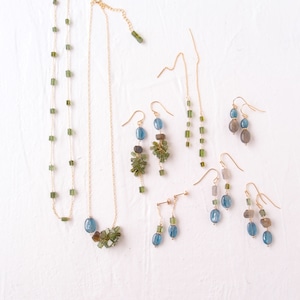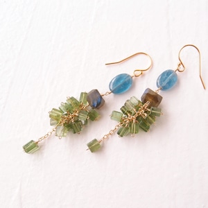 【K14gf】Green Tourmaline × Kyanite Earrings/グリーントルマリン×カイヤナイトピアス