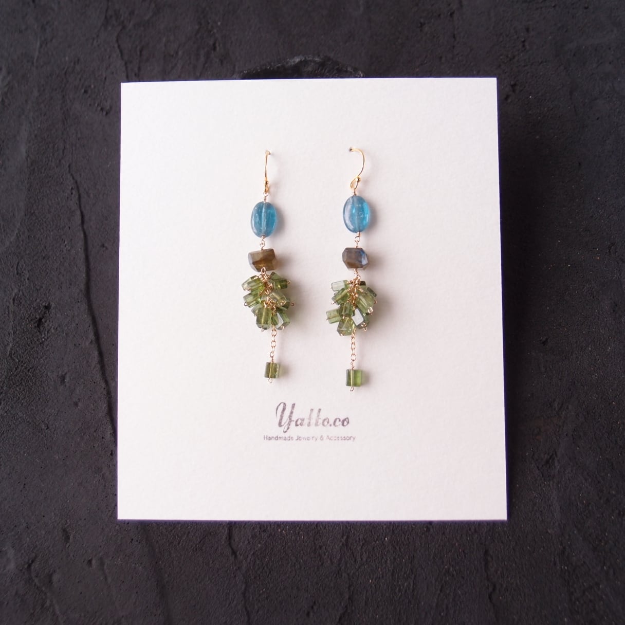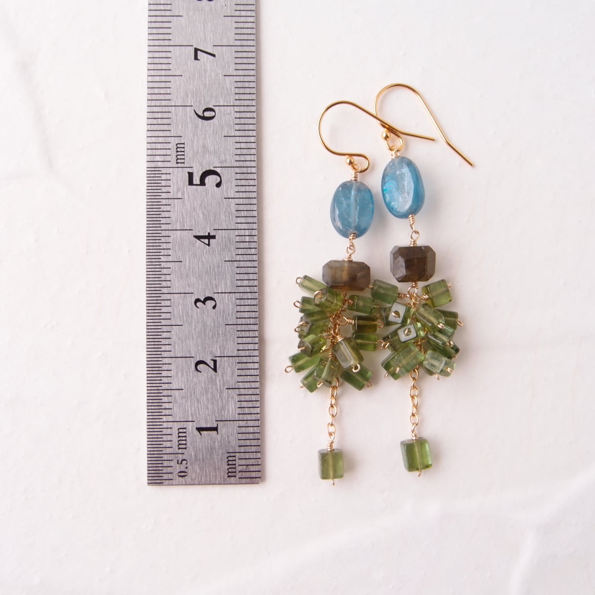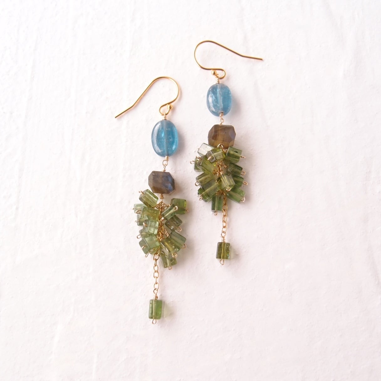【K14gf】Green Tourmaline × Kyanite Earrings/グリーントルマリン×カイヤナイトピアス