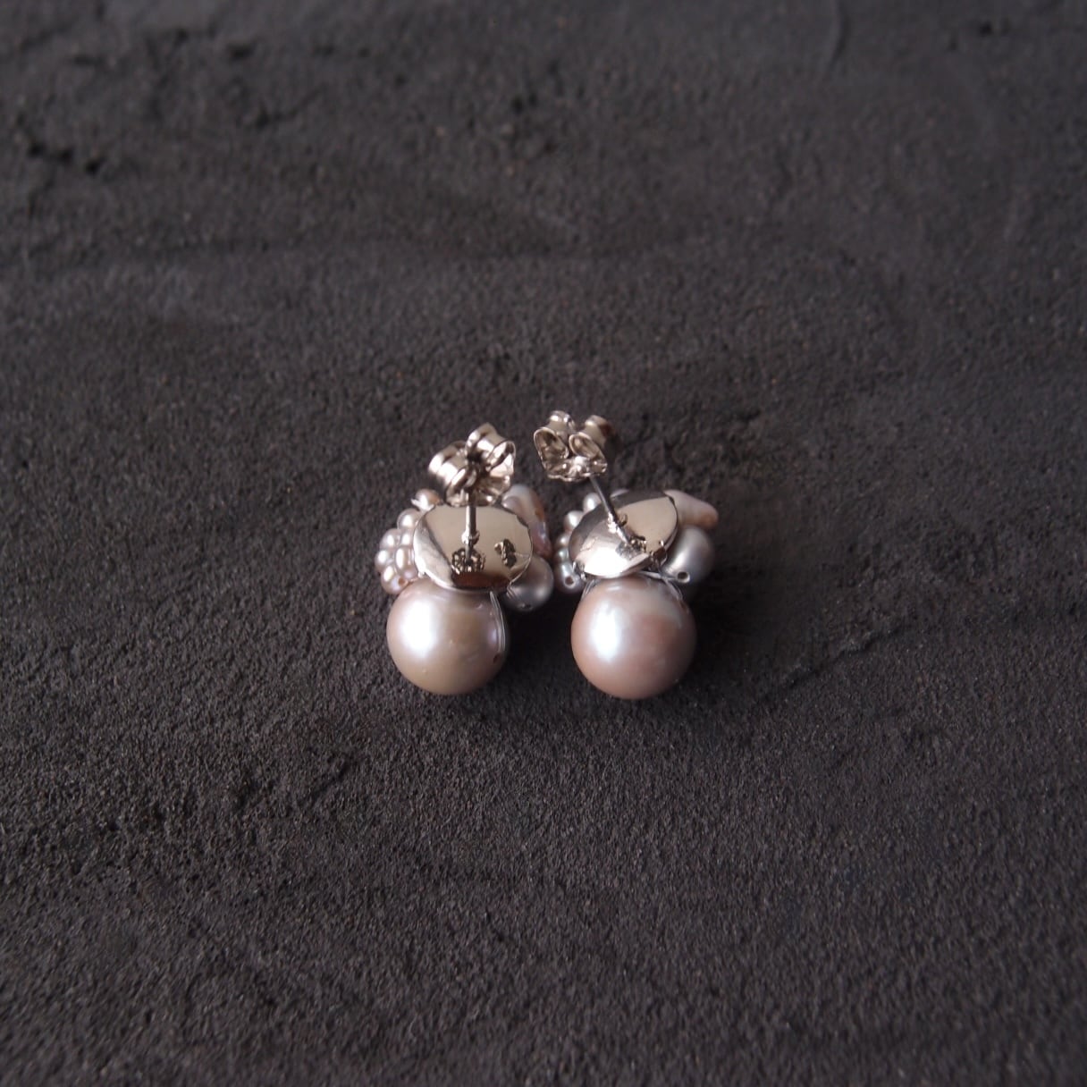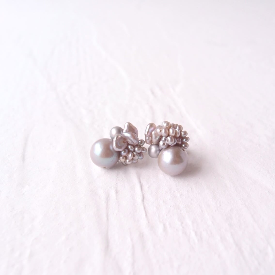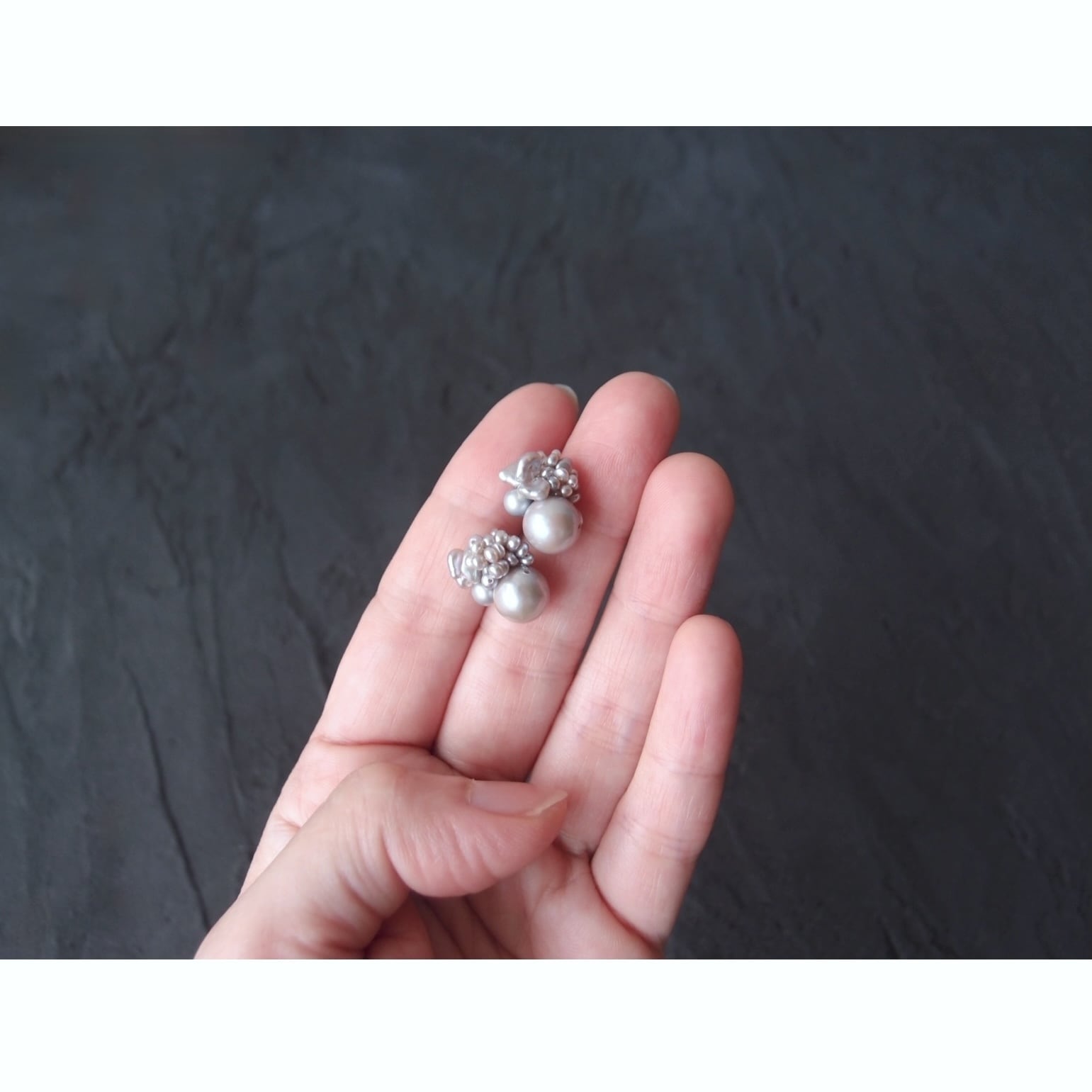 【真珠刺繍/ピアス】Gray Round Pearl Mix Earrings/グレーラウンドパールミックス(Light Gray)