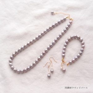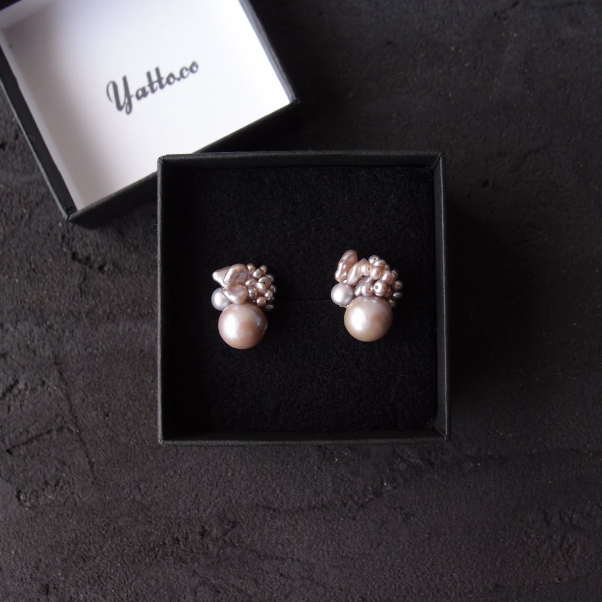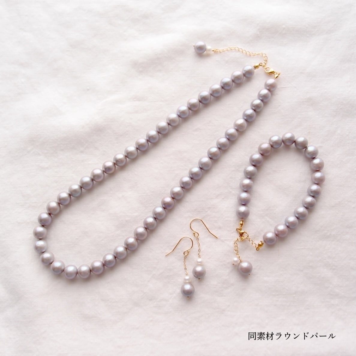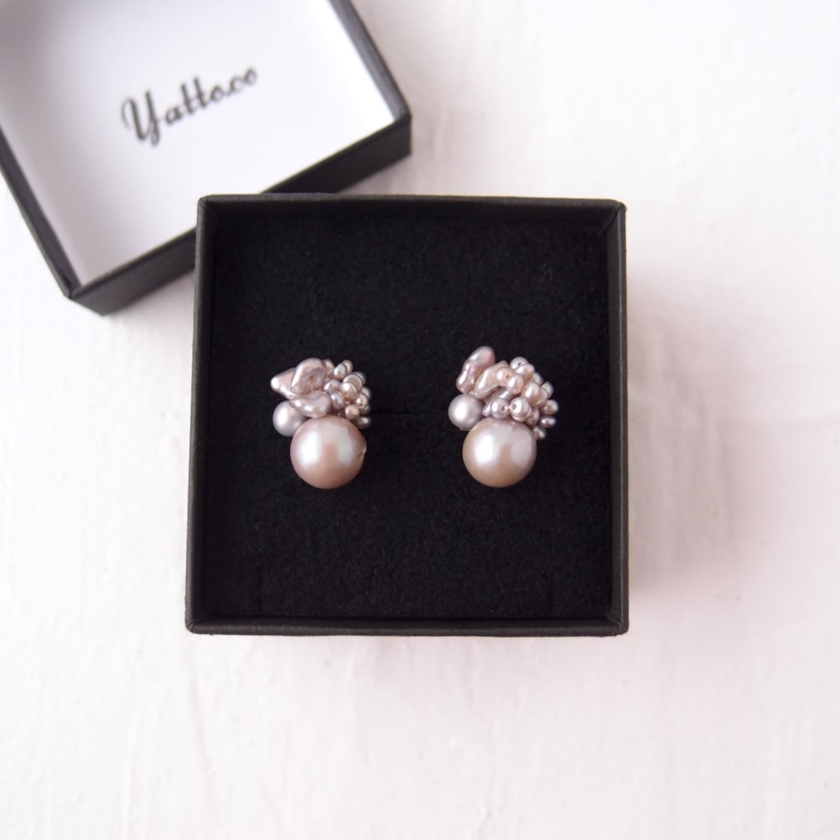 【真珠刺繍/ピアス】Gray Round Pearl Mix Earrings/グレーラウンドパールミックス(Light Gray)