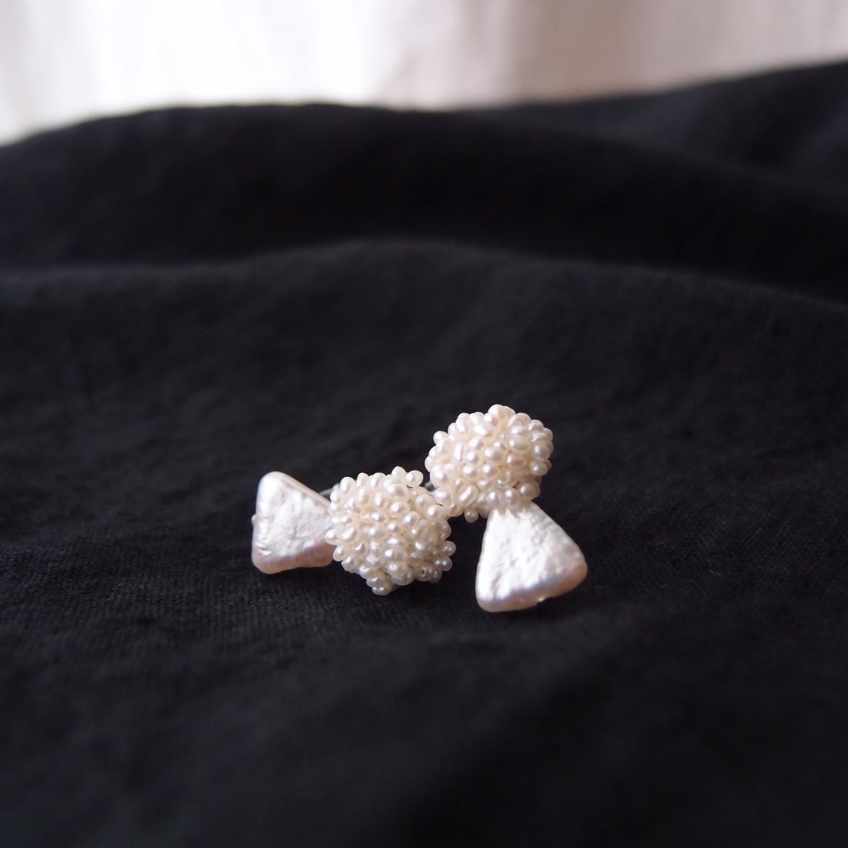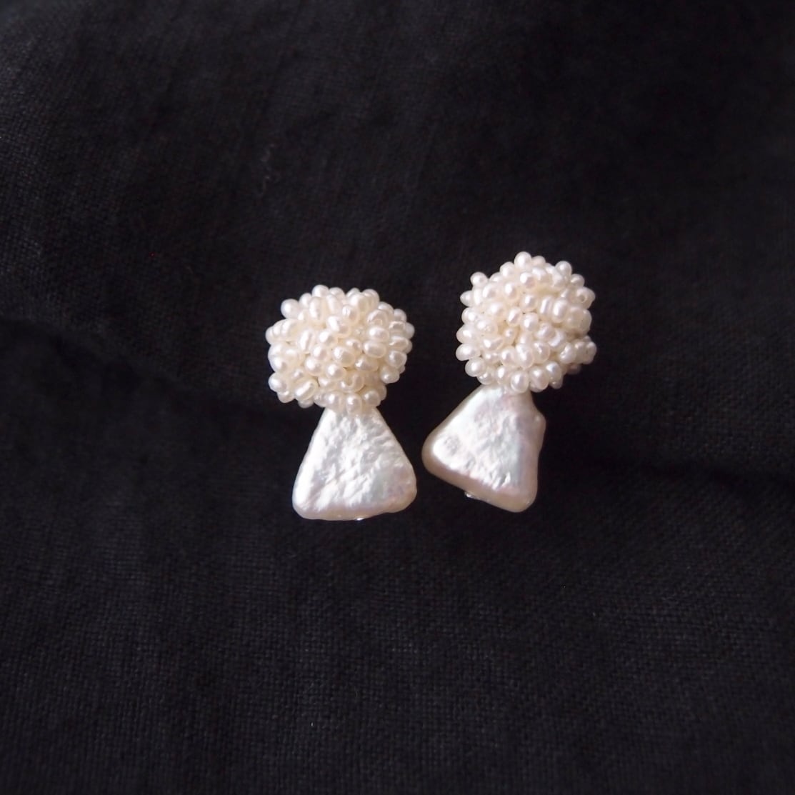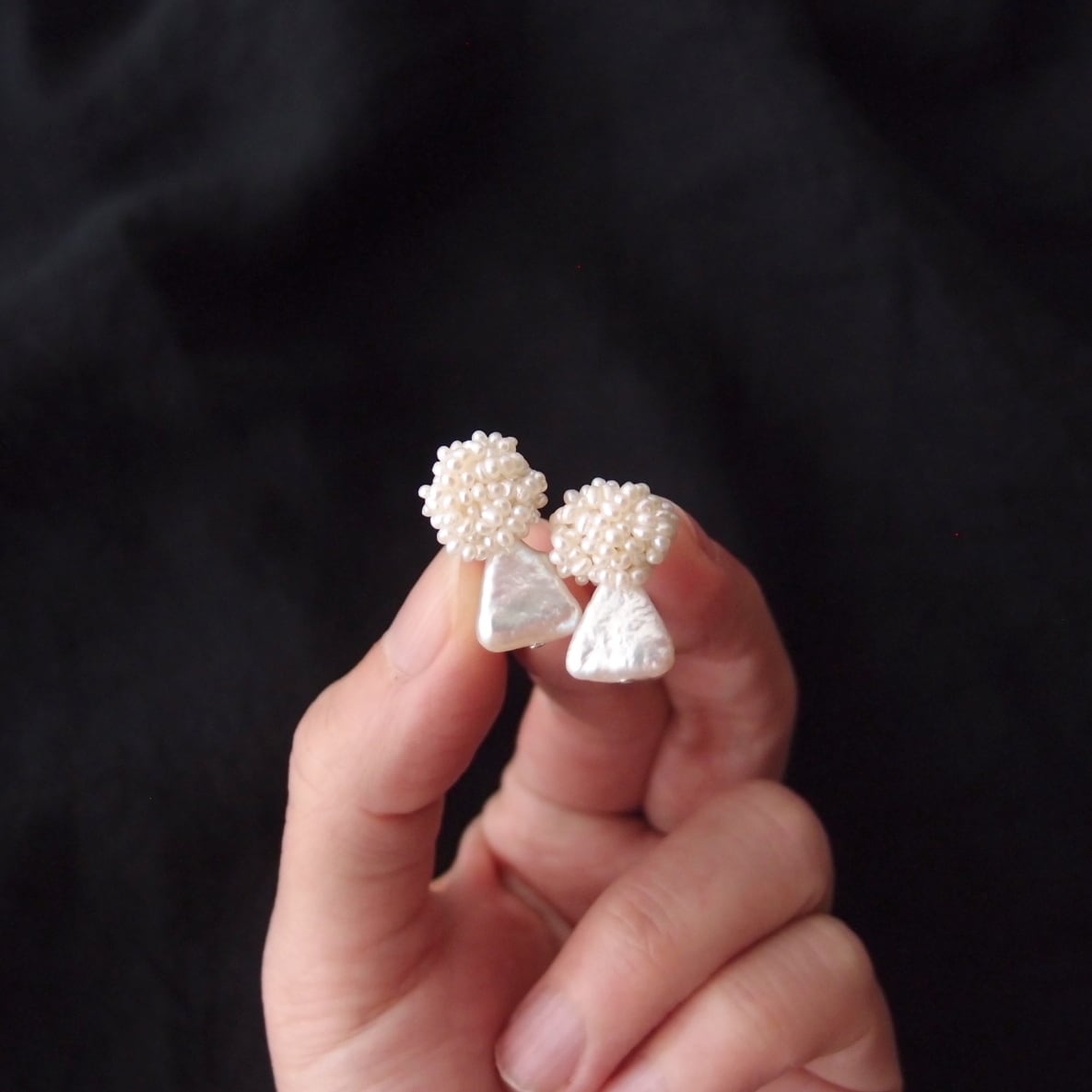 【真珠刺繍/イヤリング】Triangle × Seed Pearl Earrings