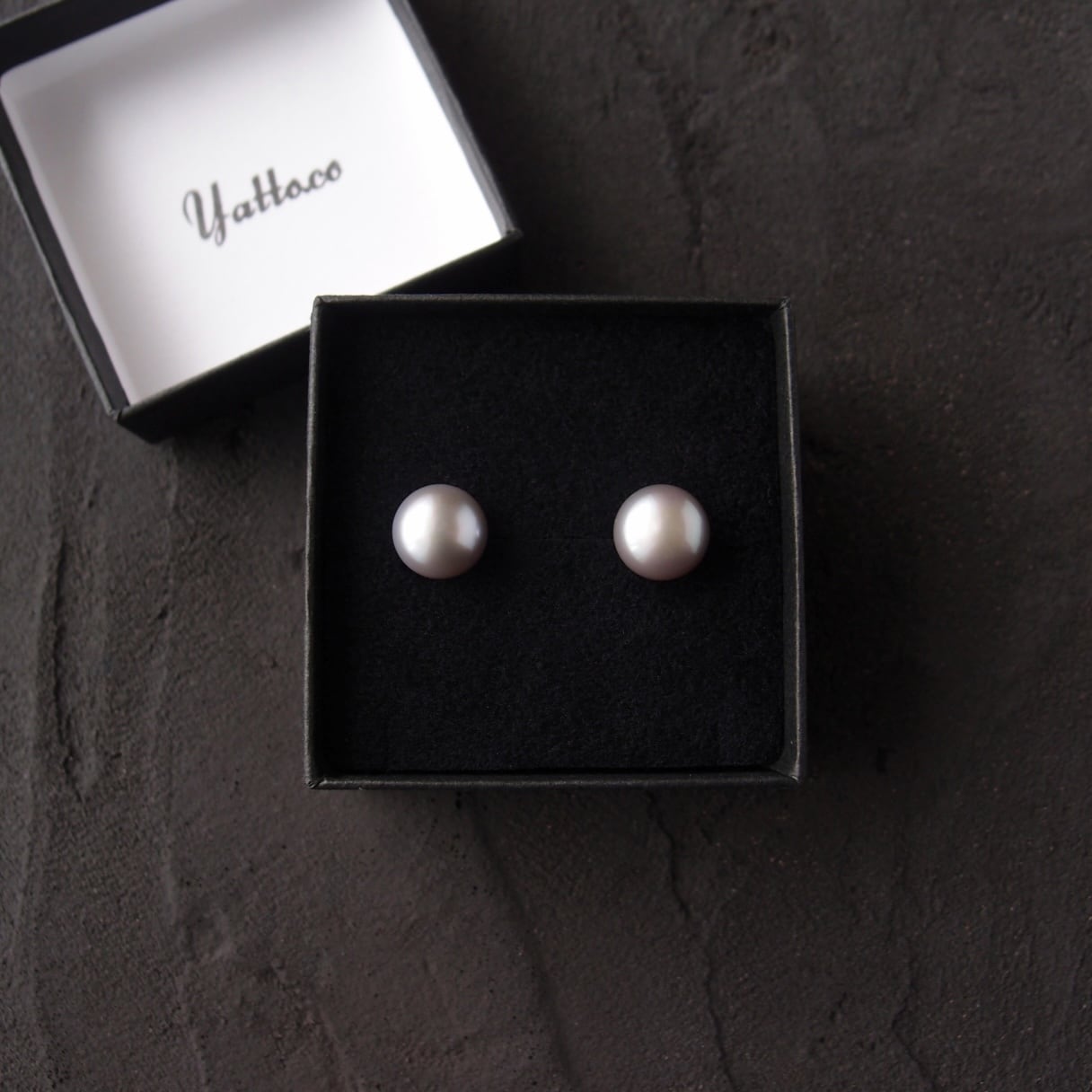 左右のカラーと形状が美しく揃った、上質なグレーパールのスタッドピアスです。