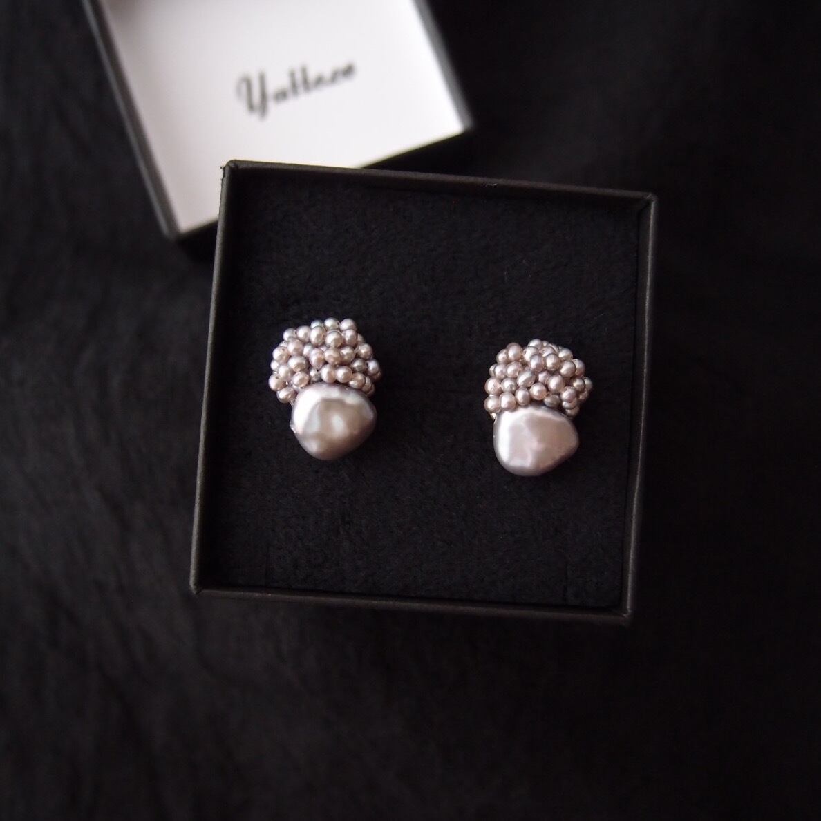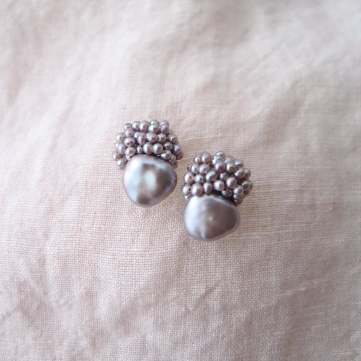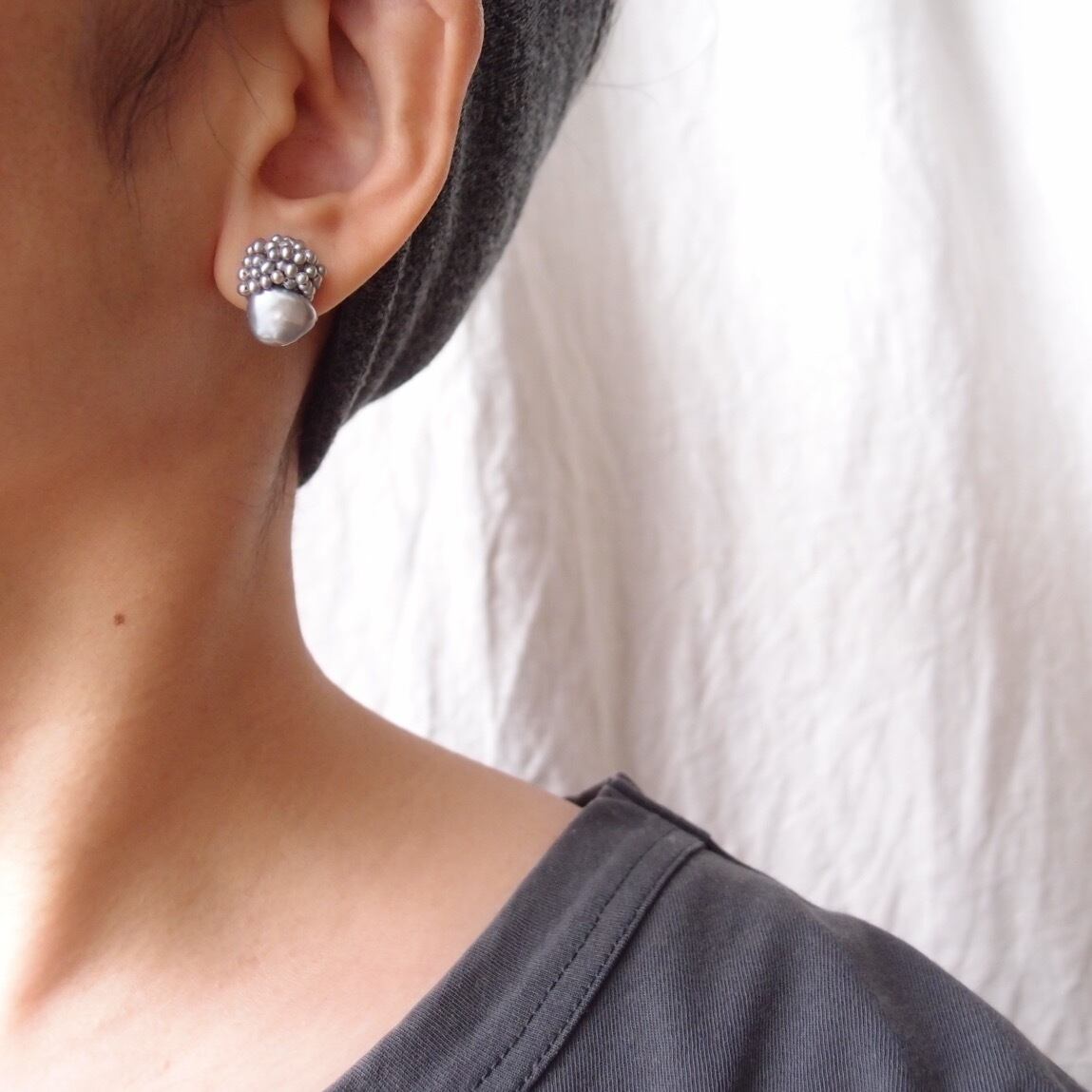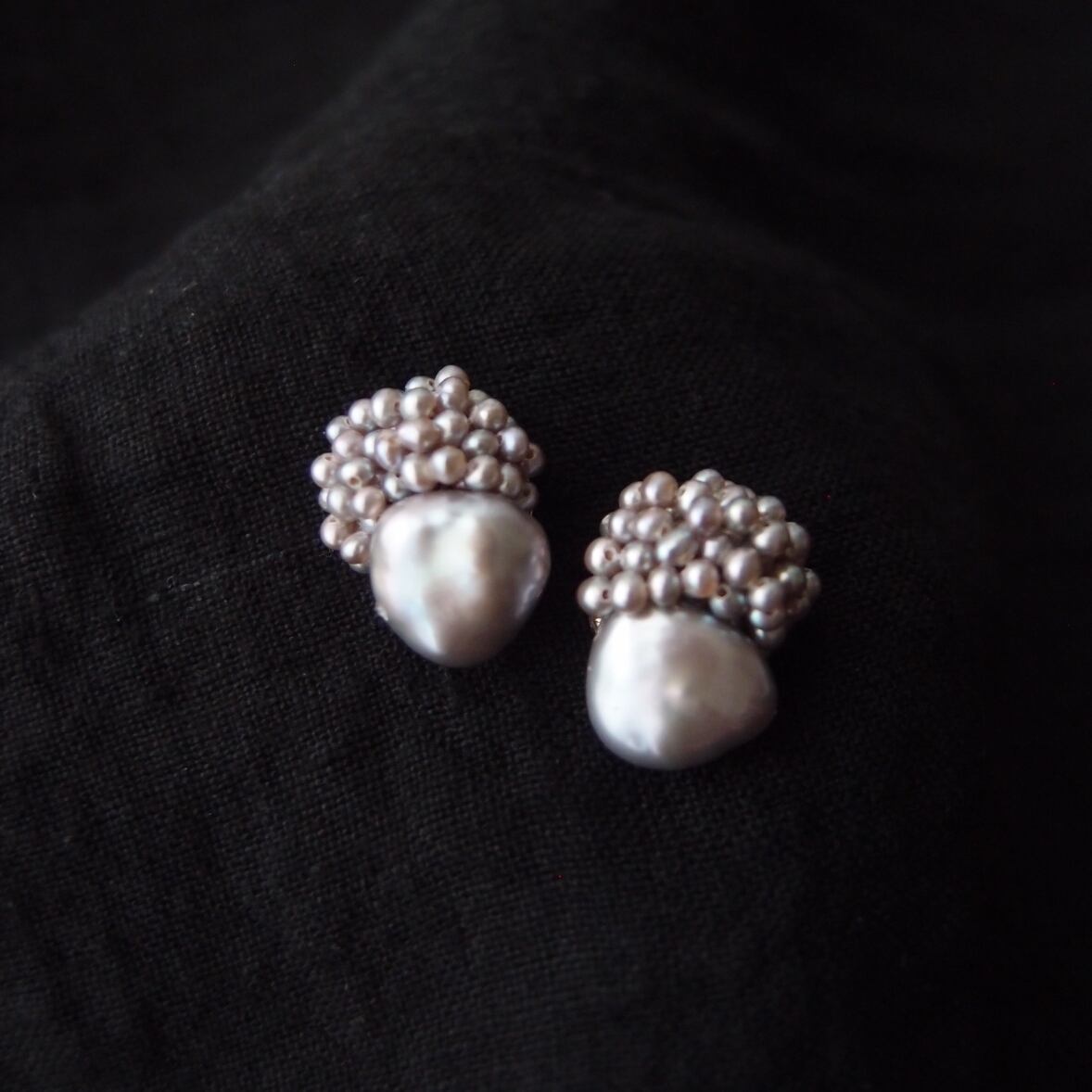 【真珠の刺繍ピアス】baroque pearl × seed pearl(gray)large